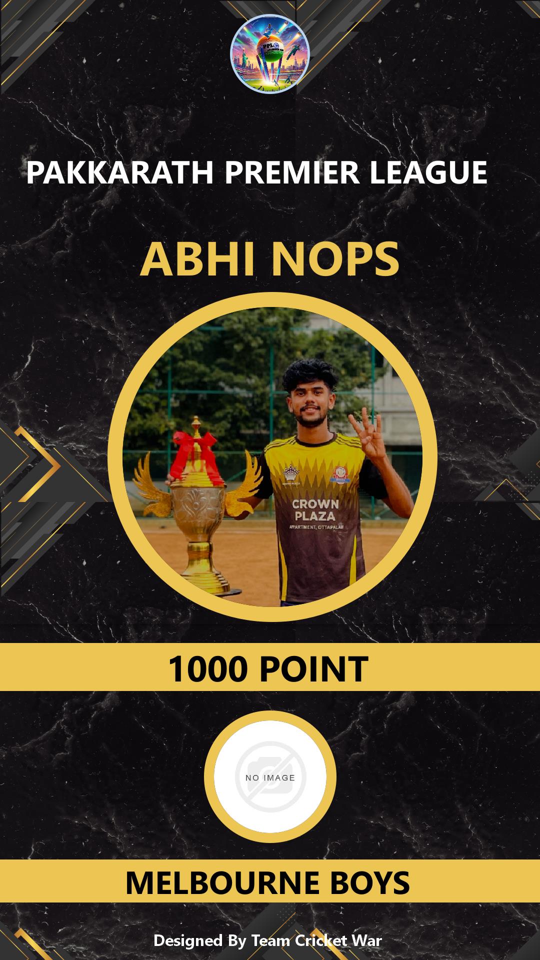 ALLROUNDER, AGE : 31 PATHAMKULAM Bid Amount : 3100 Team : MELBOURNE BOYS Download ID Card VIEW PROFILE |
