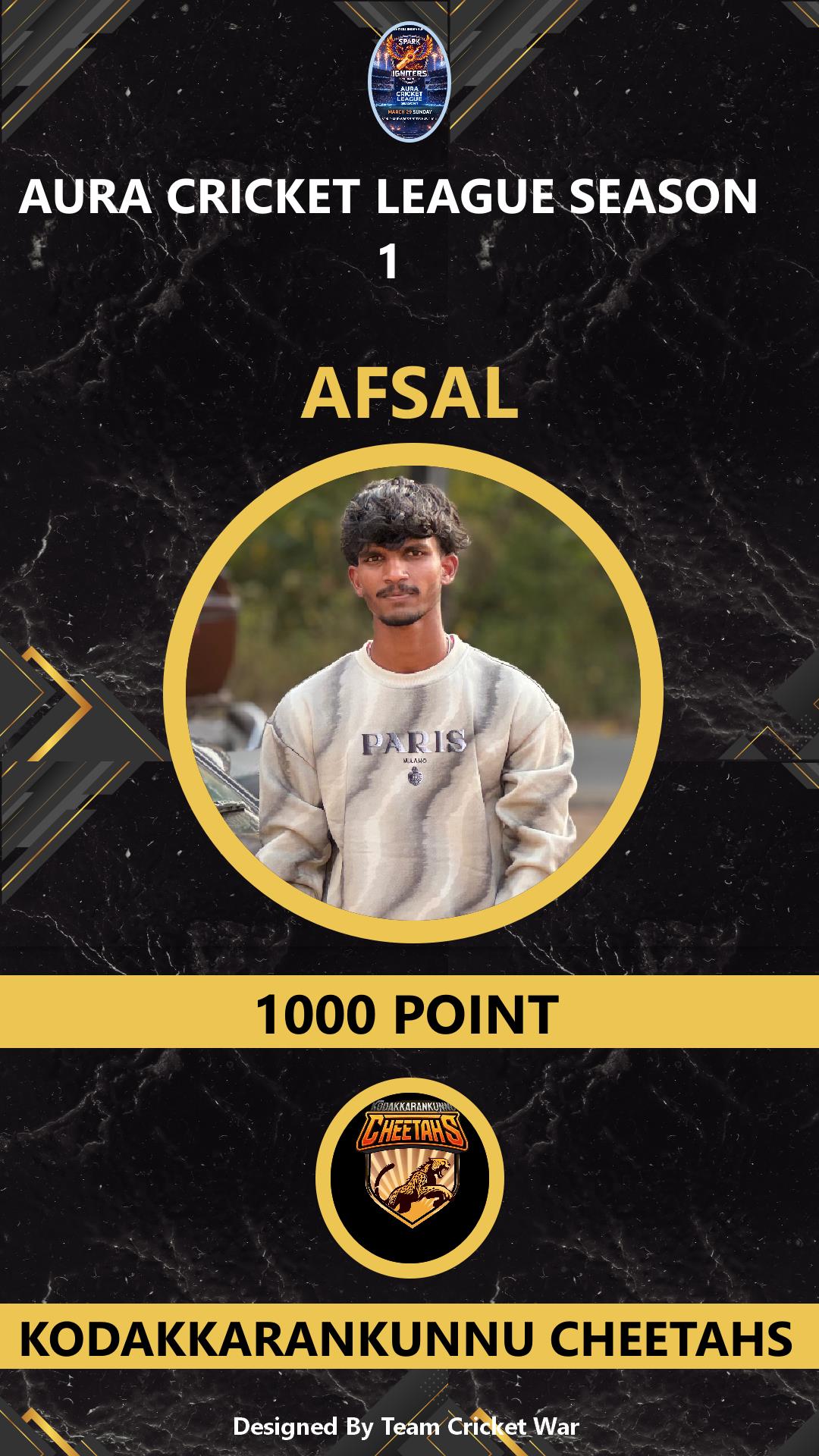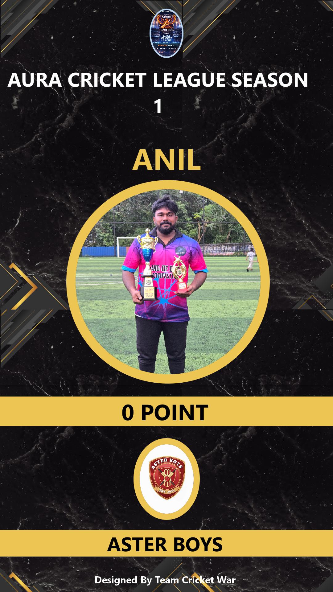 ALLROUNDER, AGE : 1 CHELAKKARA Bid Amount : 5000 Team : ASTER BOYS Download ID Card VIEW PROFILE |