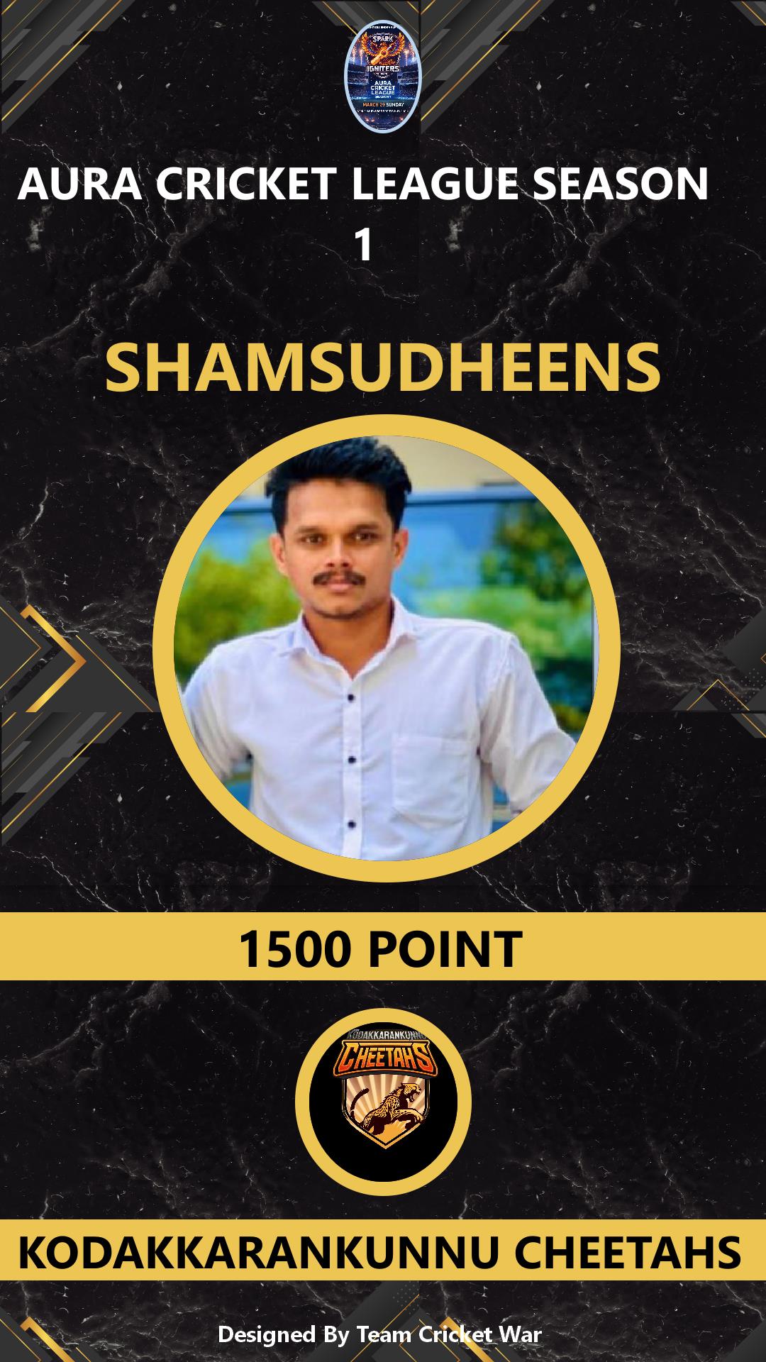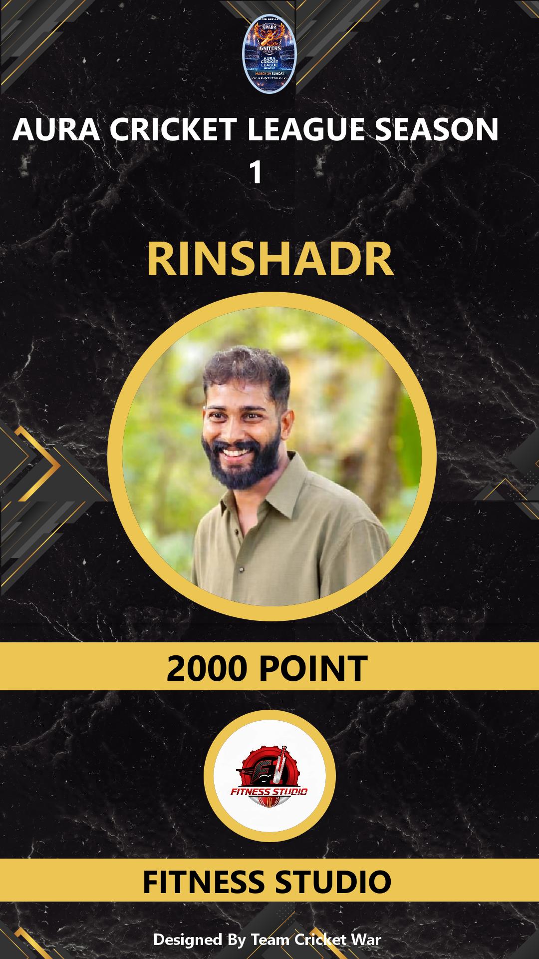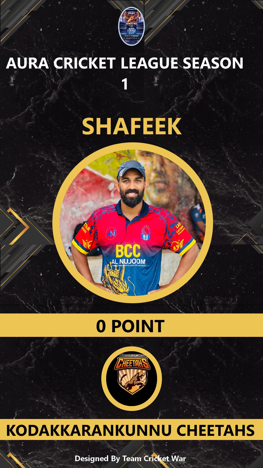 BATTING ALLROUNDER, AGE : 30 KONDAYOOR Bid Amount : 2000 Team : FITNESS STUDIO Download ID Card VIEW PROFILE |
