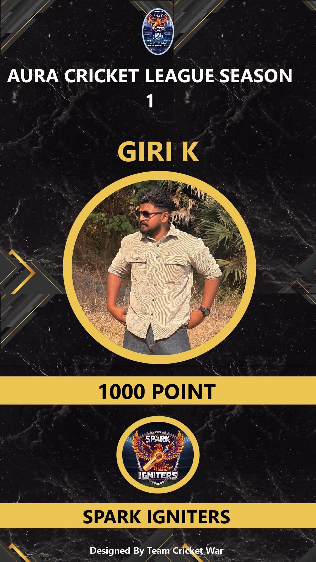 BOWLING ALLROUNDER, AGE : 26 ARANGOTTUKARA Bid Amount : 1000 Team : SPARK IGNITERS Download ID Card VIEW PROFILE |