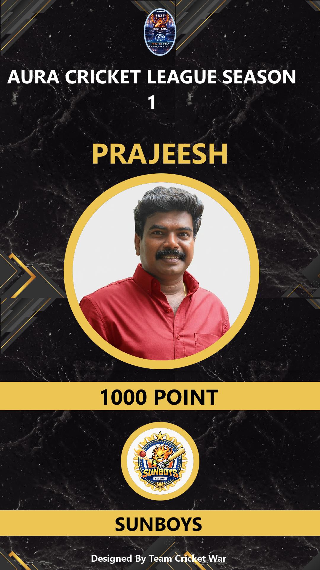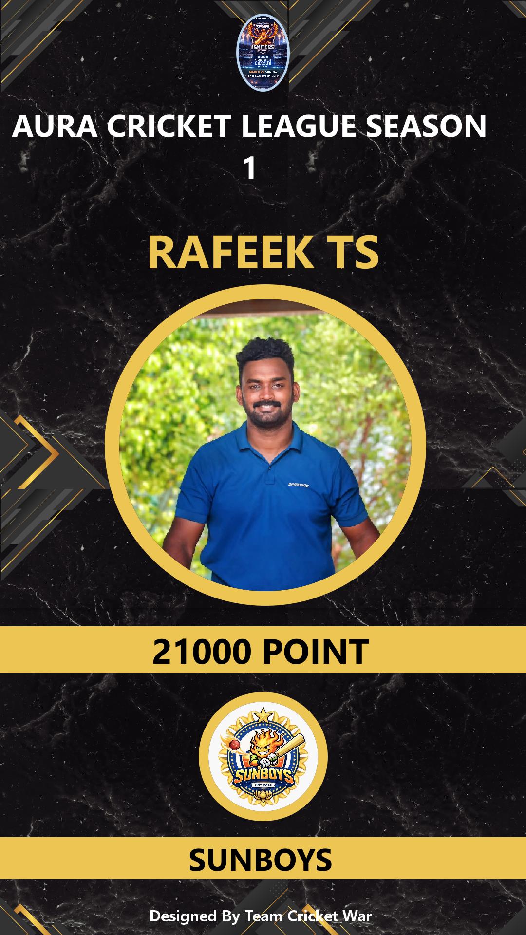 ALLROUNDER, AGE : 35 KONDAYOOR Bid Amount : 1000 Team : SUNBOYS Download ID Card VIEW PROFILE |