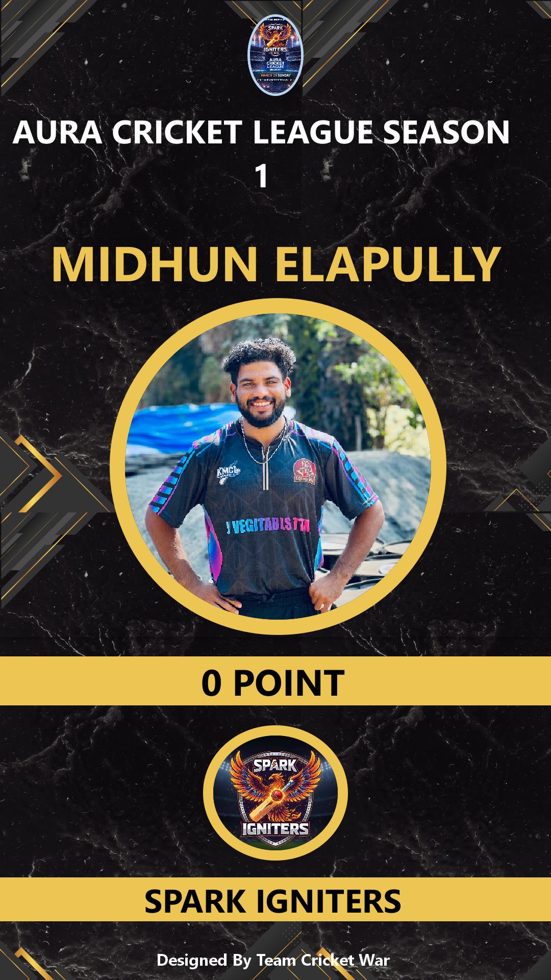 BATSMAN, AGE : 25 PALAKKAD Bid Amount : 0 Team : SPARK IGNITERS Download ID Card VIEW PROFILE |