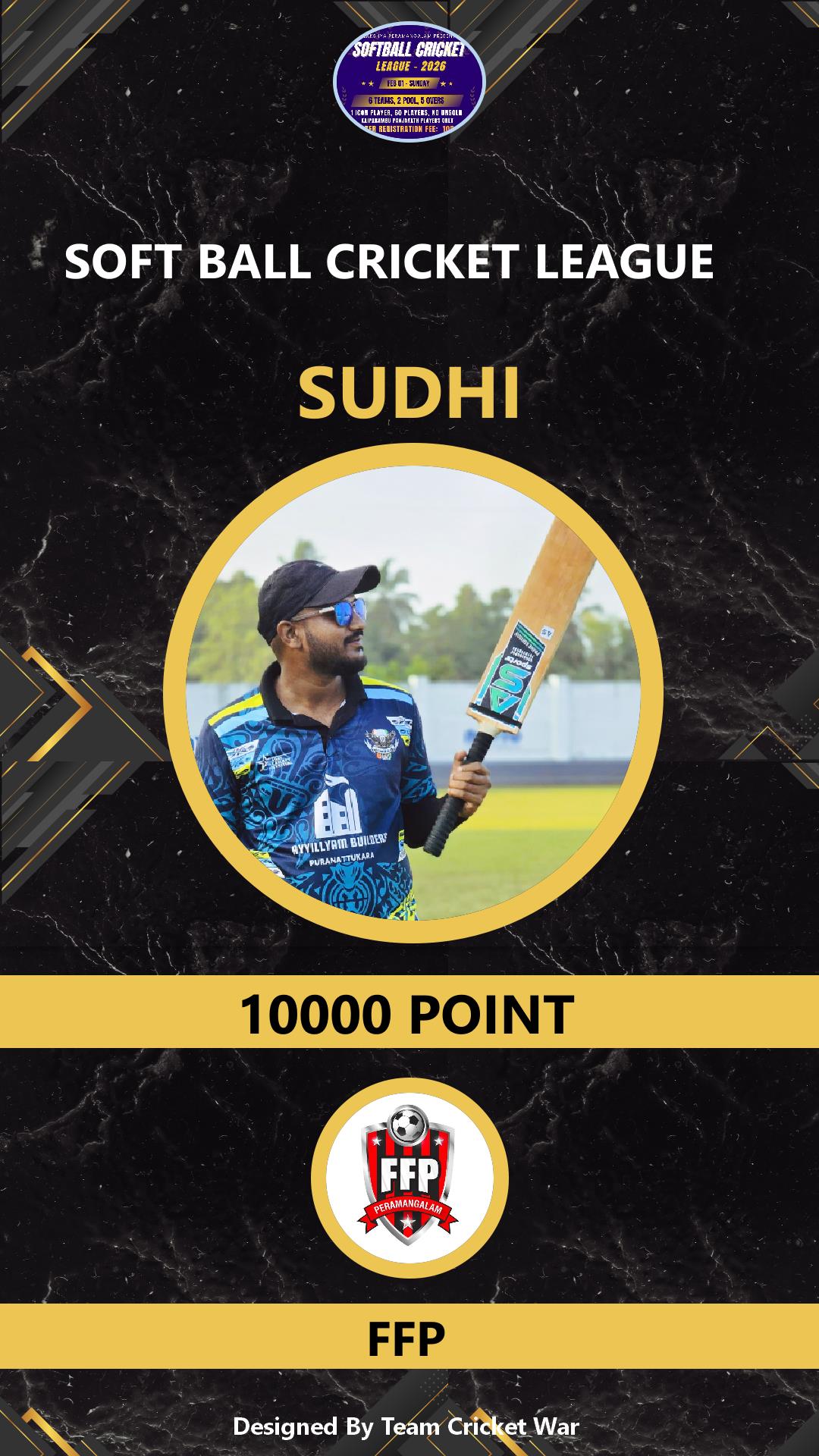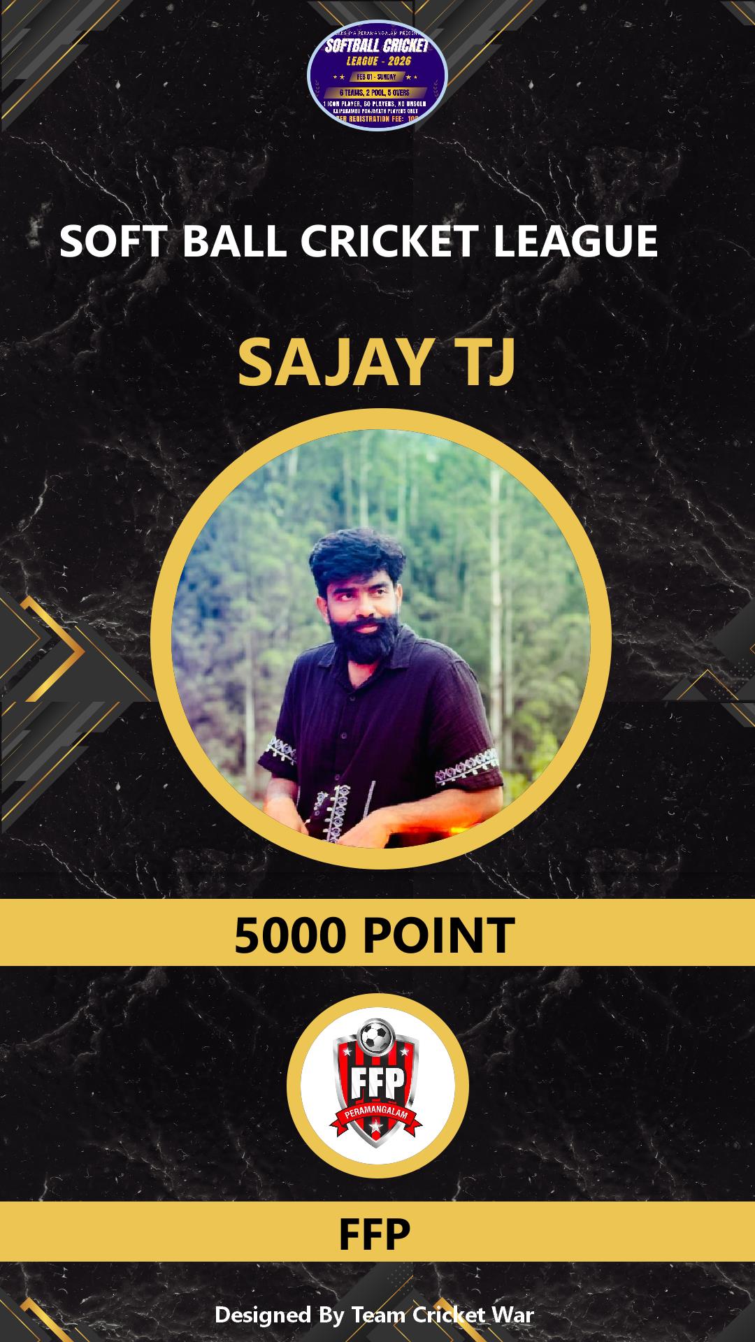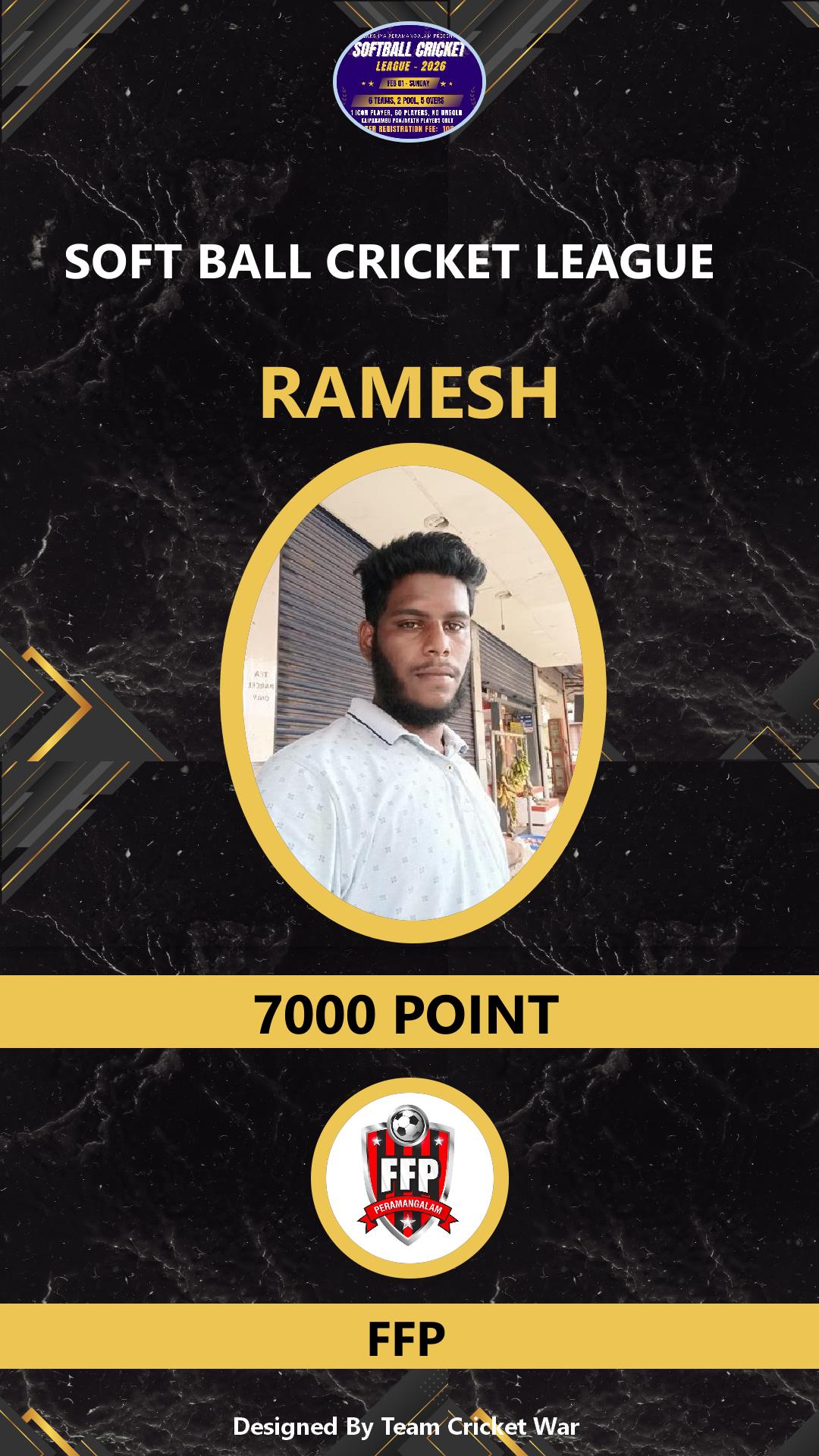 ALLROUNDER, AGE : 29 PERAMANGALAM Bid Amount : 7000 Team : FFP Download ID Card VIEW PROFILE |