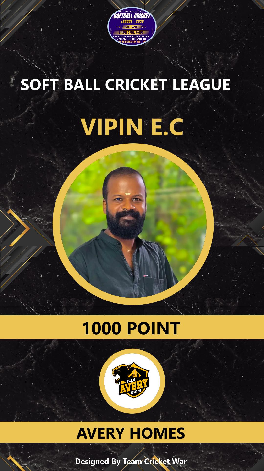 BOWLING ALLROUNDER, AGE : 48 PERAMANGALAM Bid Amount : 1000 Team : AVERY HOMES Download ID Card VIEW PROFILE |