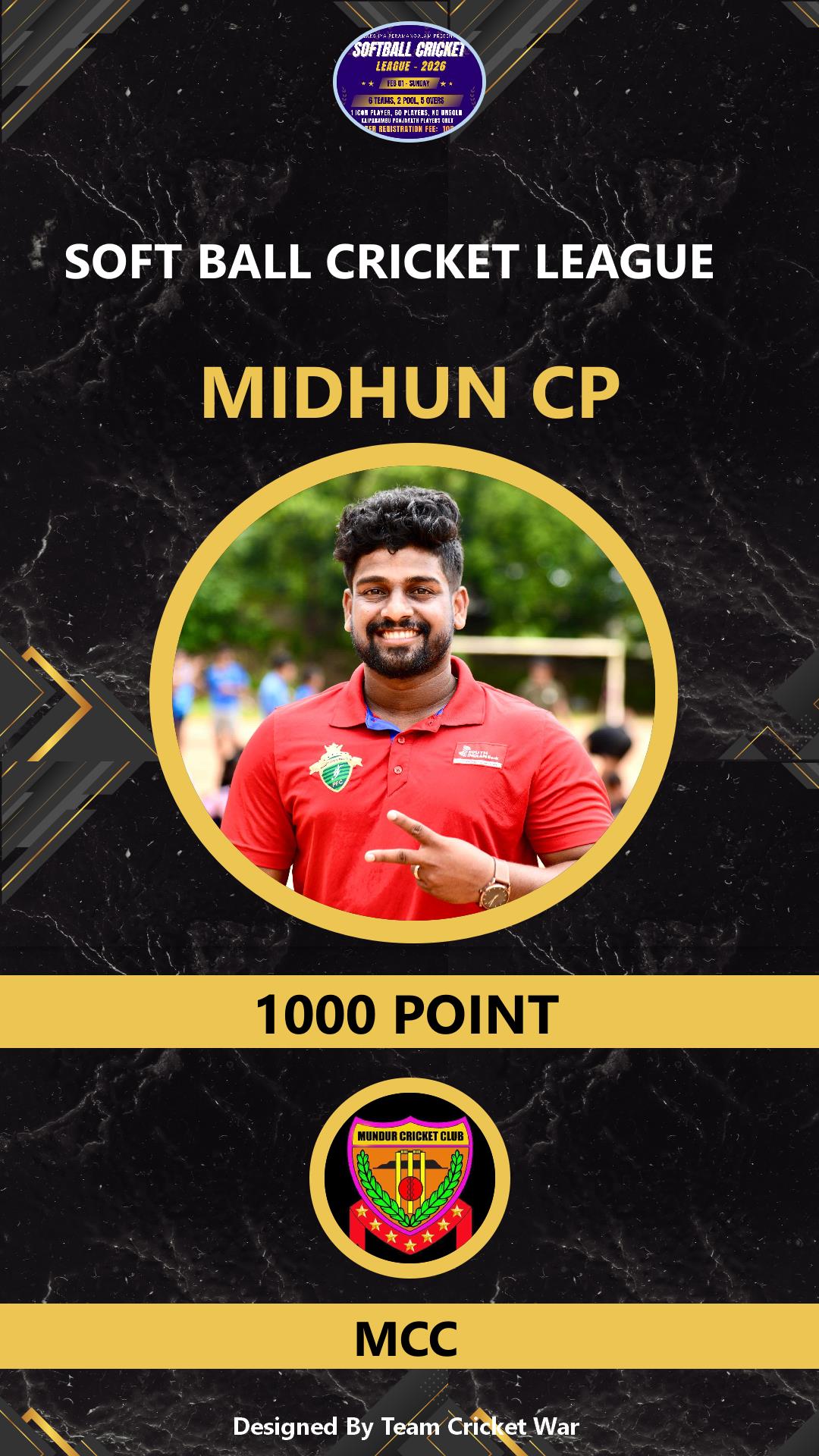ALLROUNDER, AGE : 36 MUNDUR Bid Amount : 5000 Team : MCC Download ID Card VIEW PROFILE |