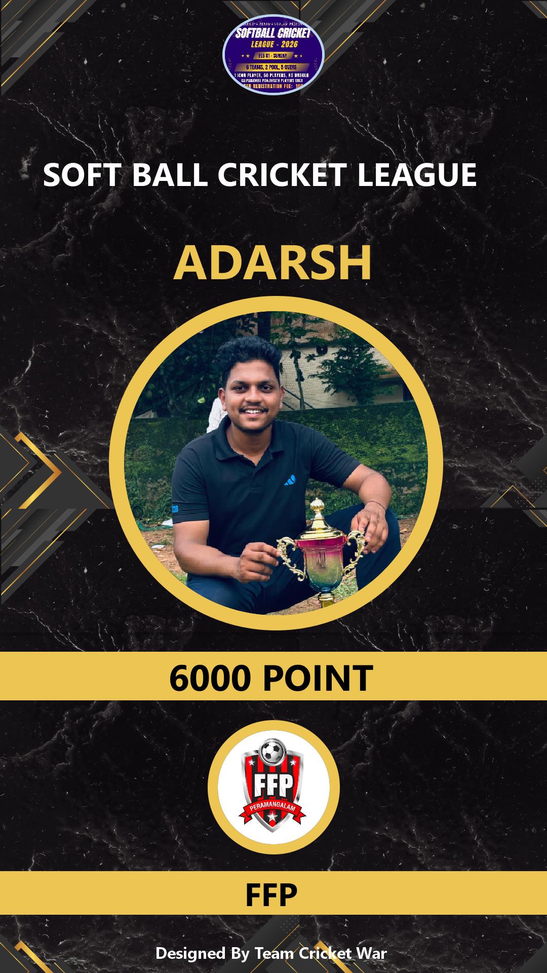 BATSMAN, AGE : 23 MUTHUVARA Bid Amount : 6000 Team : FFP Download ID Card VIEW PROFILE |