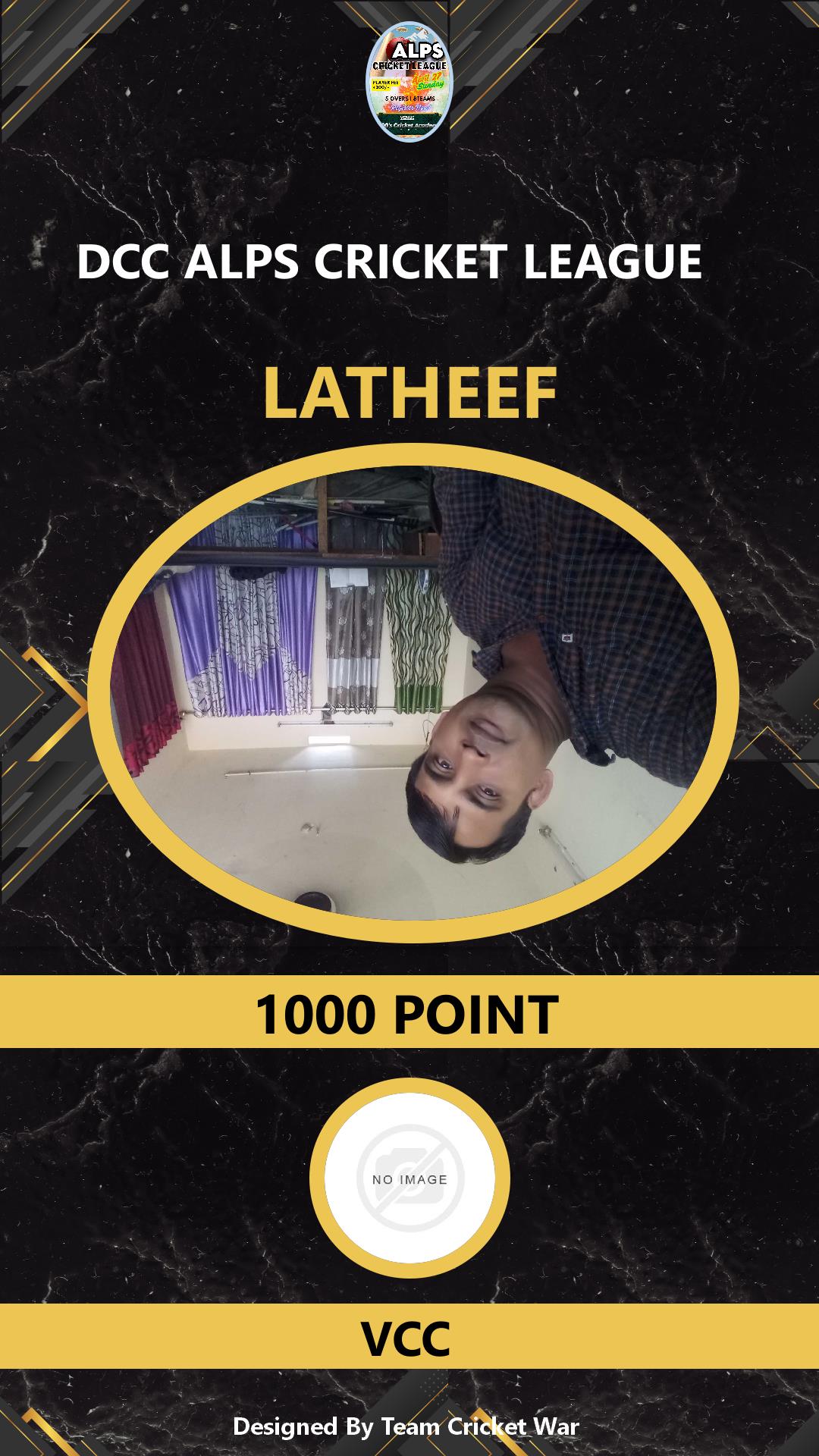 BATTING ALLROUNDER, AGE : 36 VETTIKKATTIRI Bid Amount : 1000 Team : VCC Download ID Card VIEW PROFILE |
