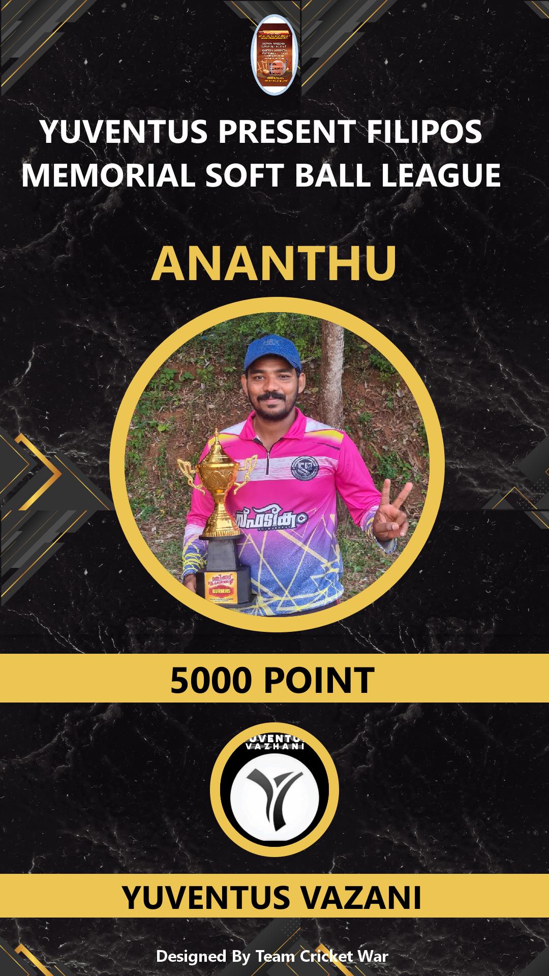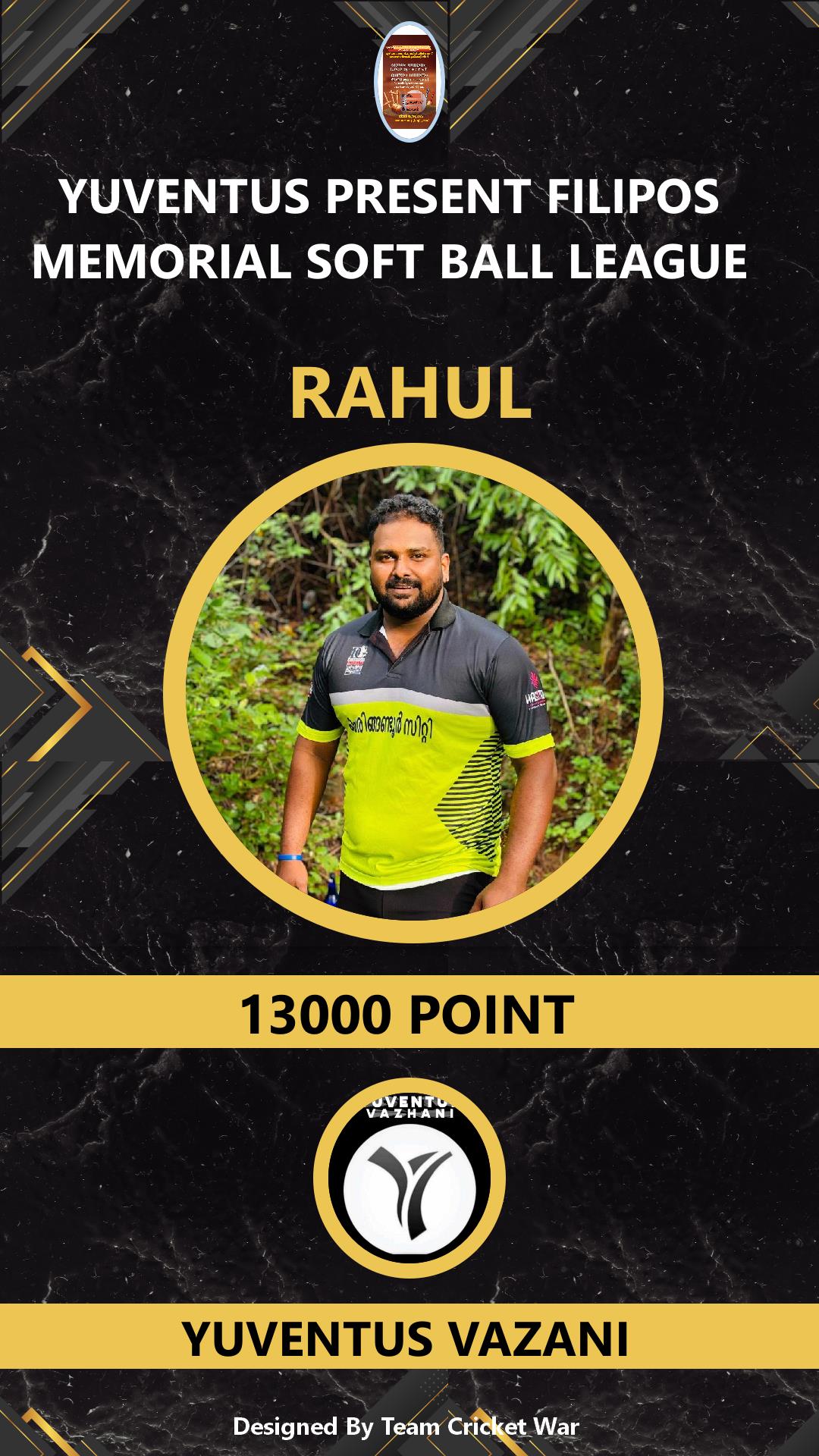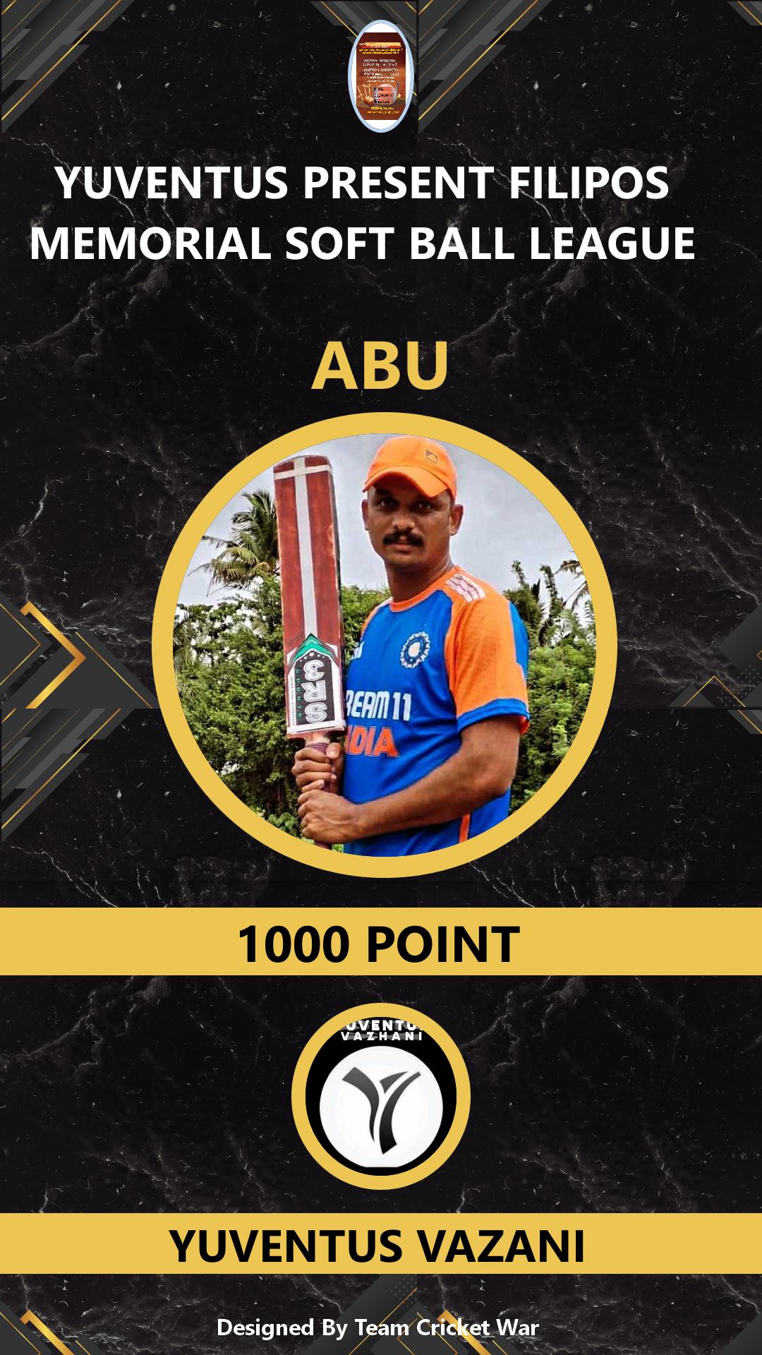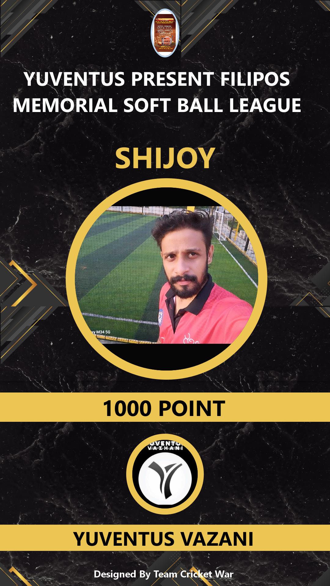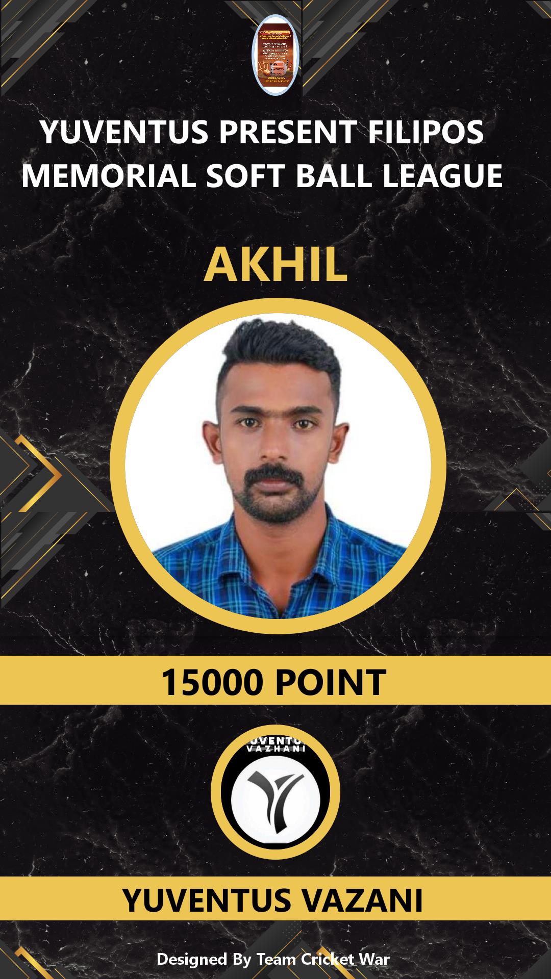 ALLROUNDER, AGE : 24 VAZHANI Bid Amount : 1000 Team : YUVENTUS VAZANI Download ID Card VIEW PROFILE |