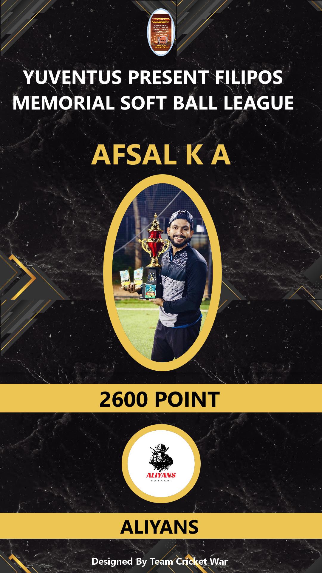 ALLROUNDER, AGE : 31 ATHANI Bid Amount : 1000 Team : YUVENTUS VAZANI Download ID Card VIEW PROFILE |