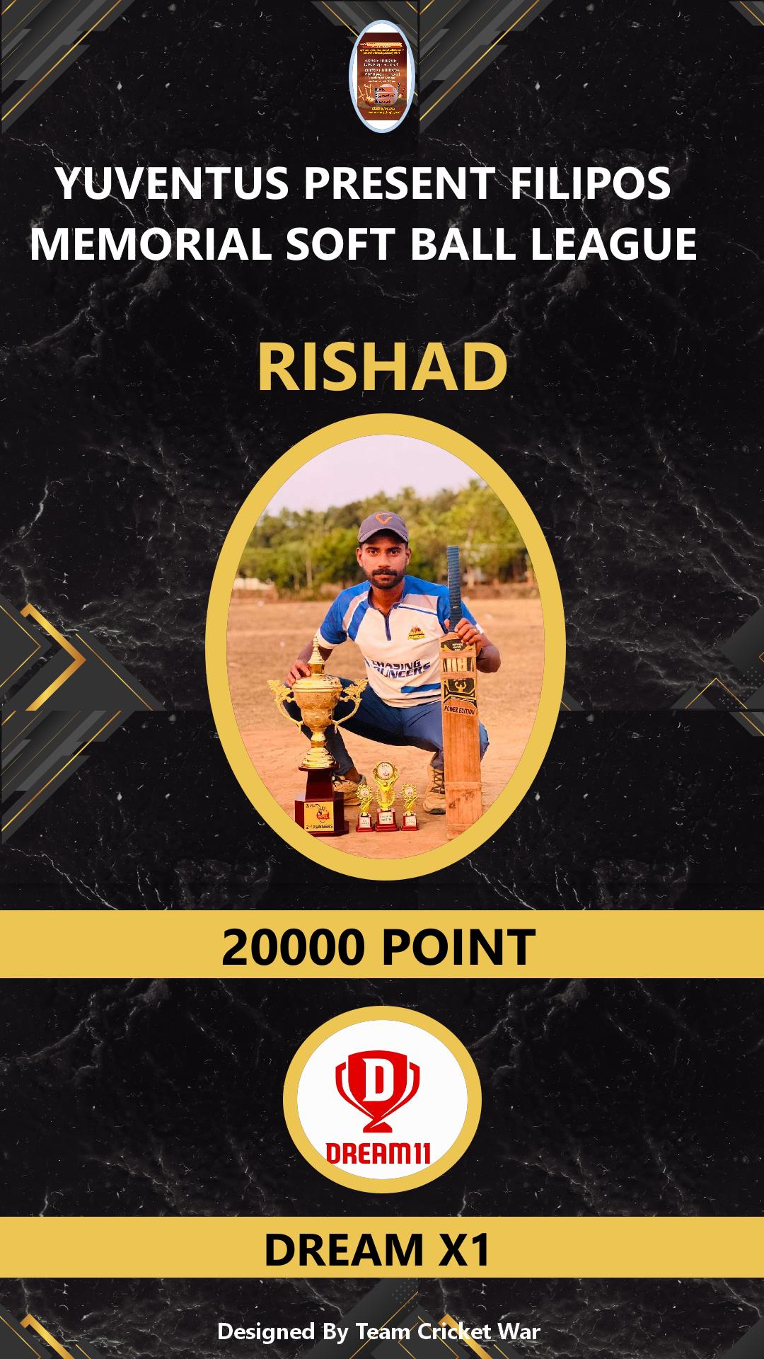 ALLROUNDER, AGE : 26 WADAKKANCHERY Bid Amount : 5000 Team : DREAM X1 Download ID Card VIEW PROFILE |