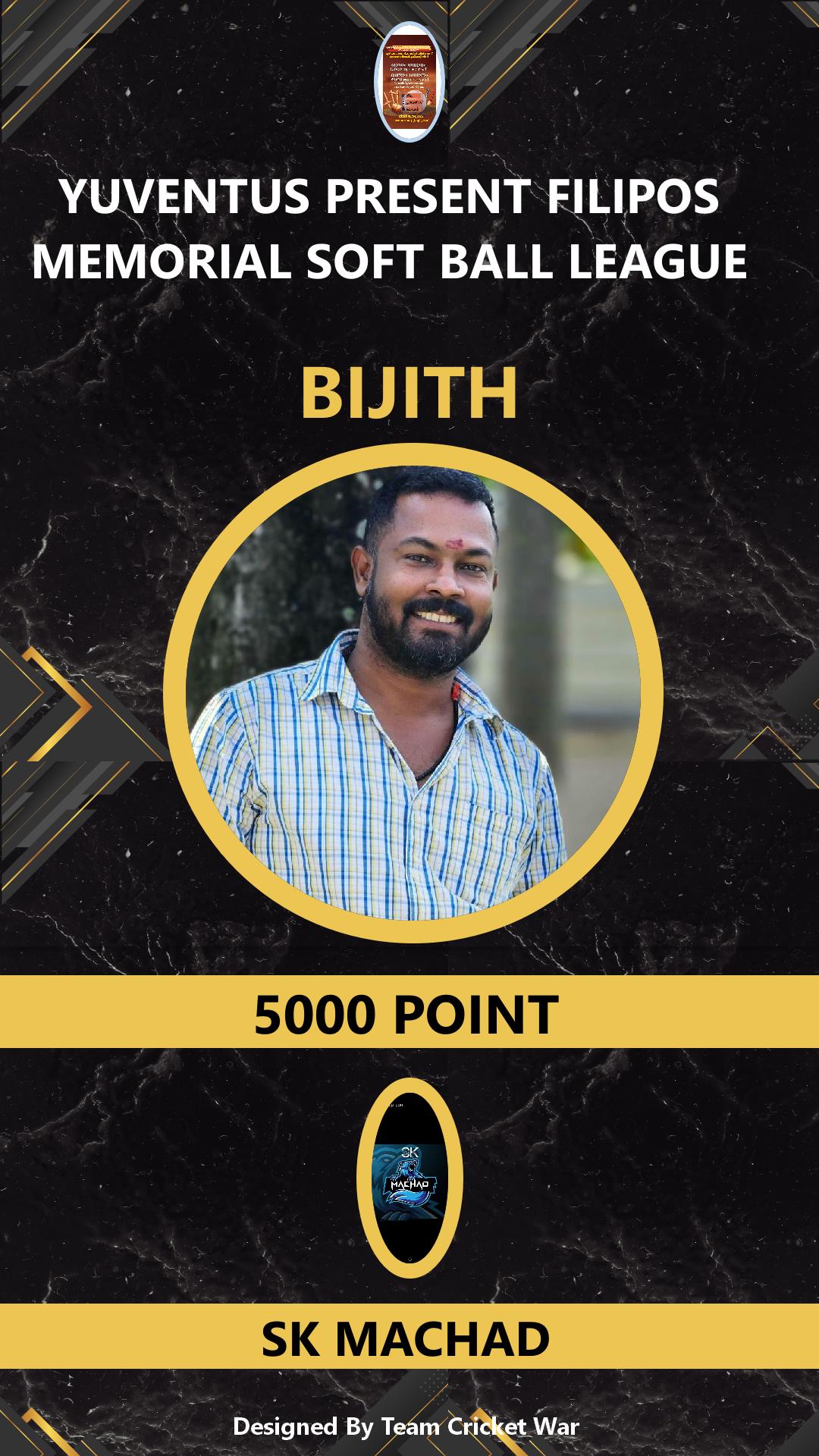 BATSMAN, AGE : 35 WADAKKANCHERY Bid Amount : 9500 Team : SK MACHAD Download ID Card VIEW PROFILE |