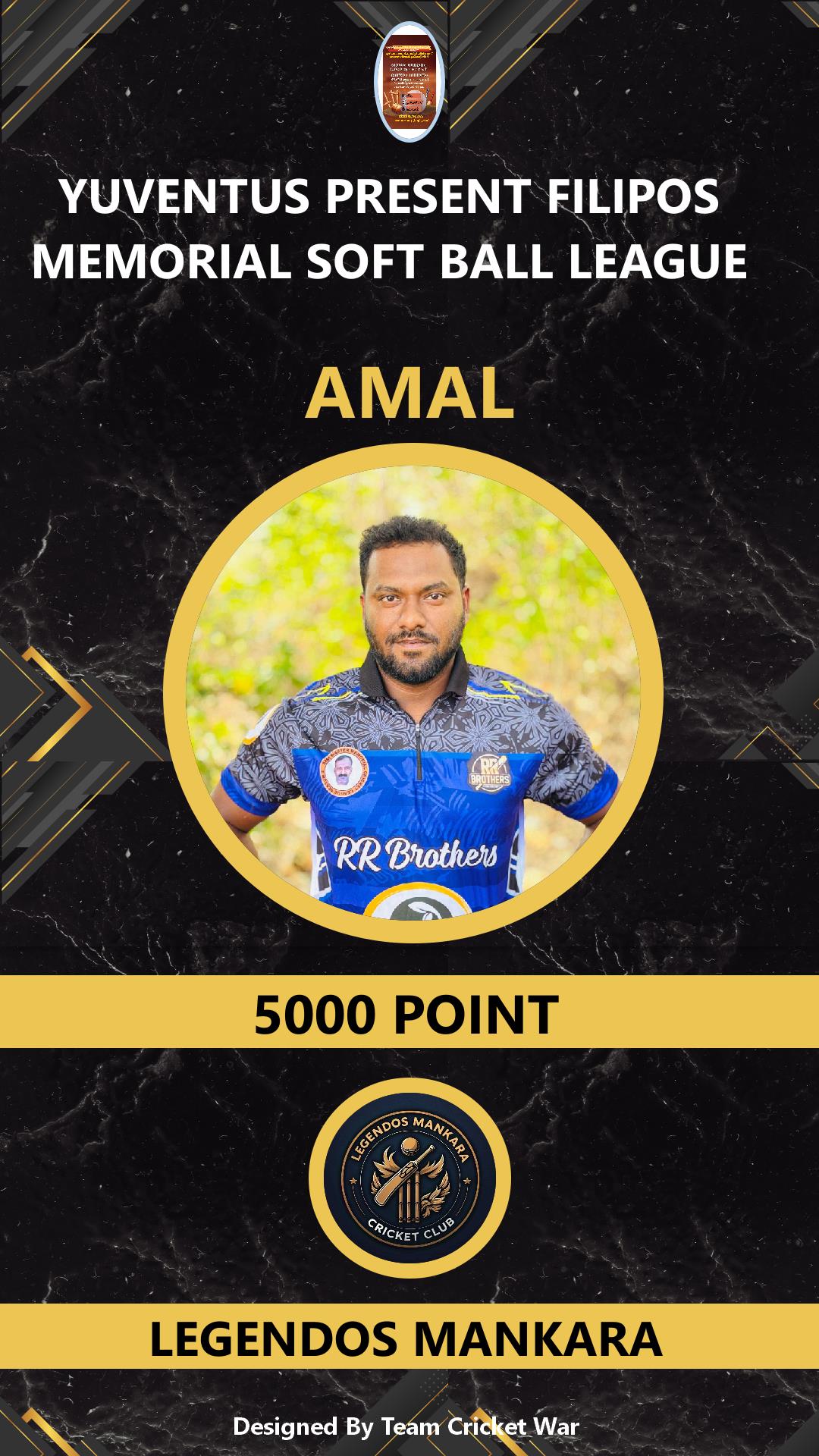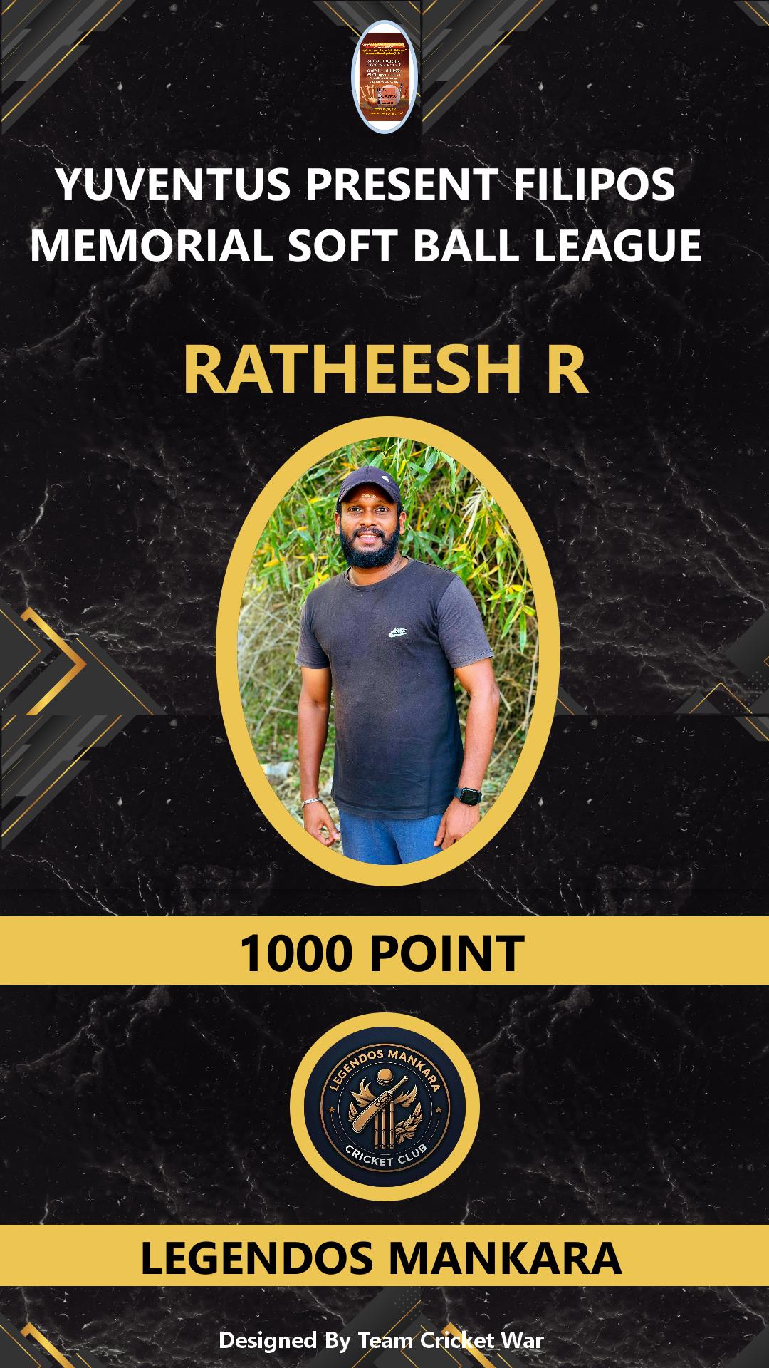 ALLROUNDER, AGE : 26 VAZHANI Bid Amount : 11000 Team : LEGENDOS MANKARA Download ID Card VIEW PROFILE |