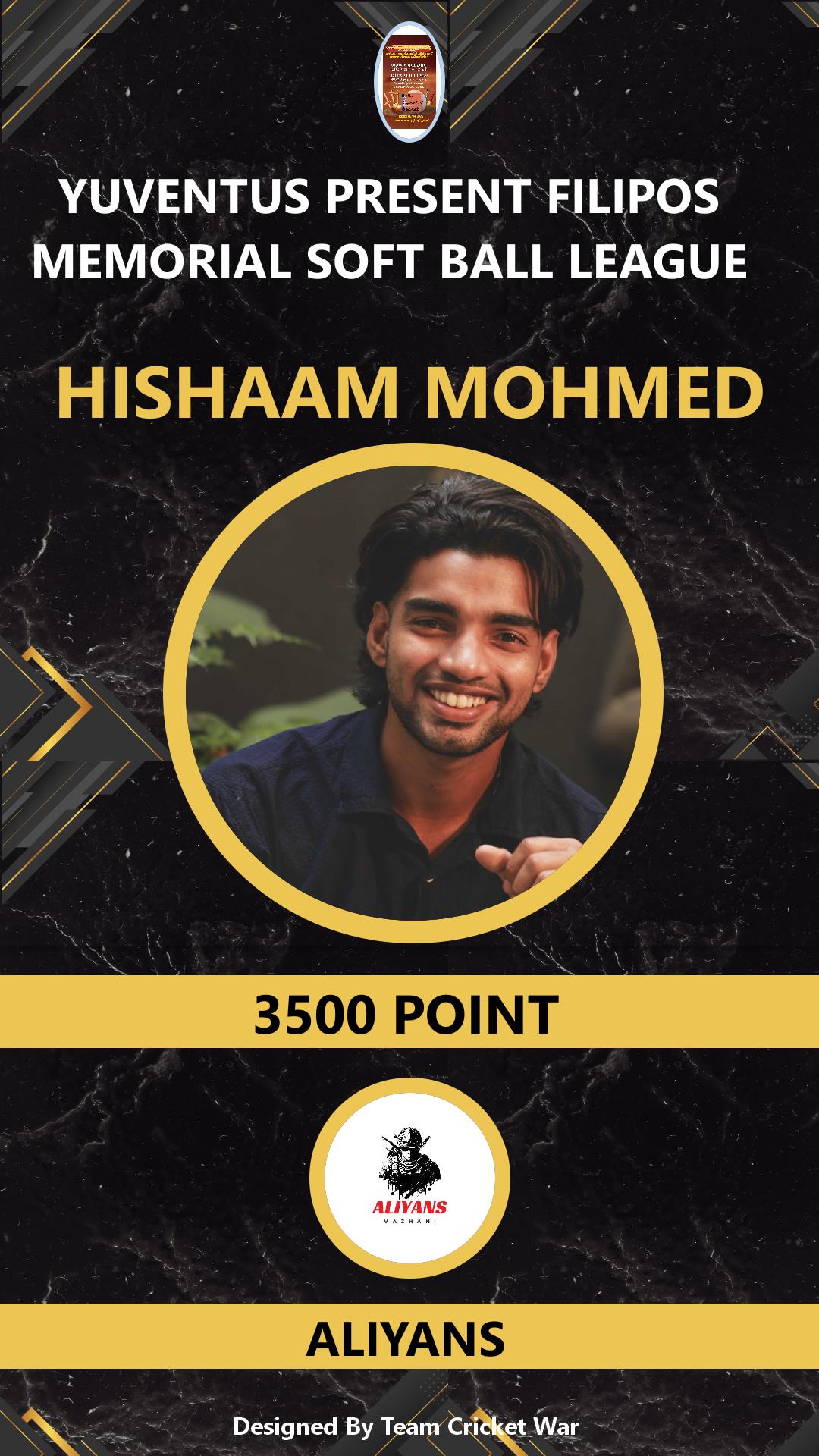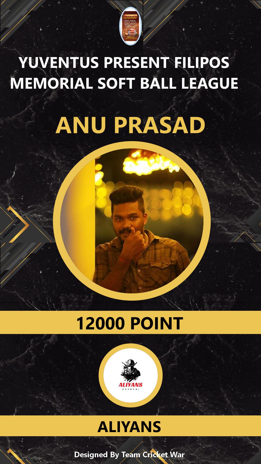 ALLROUNDER, AGE : 30 VARADIYAM Bid Amount : 5000 Team : ALIYANS Download ID Card VIEW PROFILE |