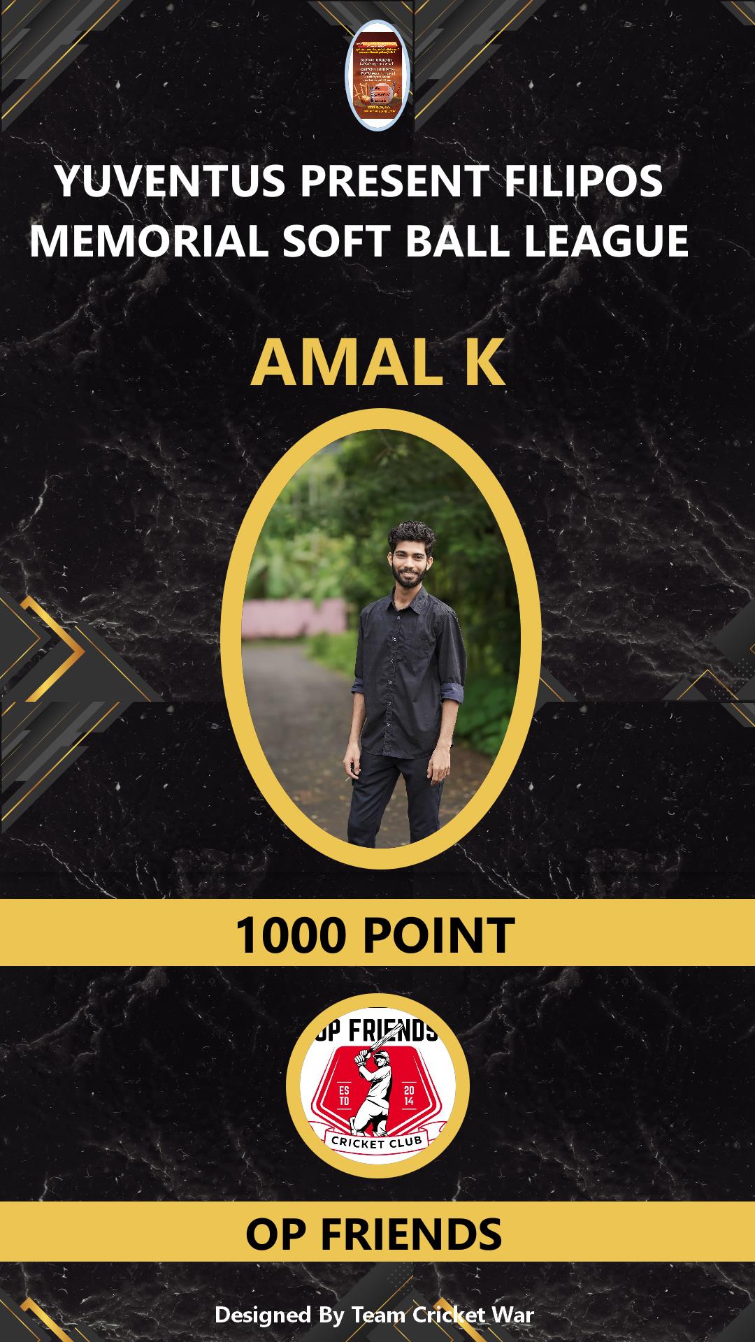 ALLROUNDER, AGE : 27 THIROOR Bid Amount : 1000 Team : OP FRIENDS Download ID Card VIEW PROFILE |