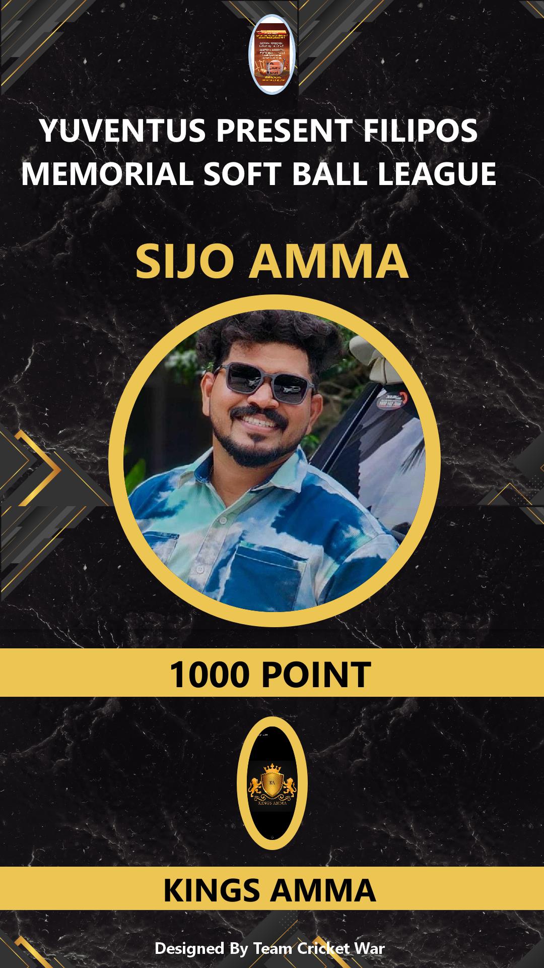 ALLROUNDER, AGE : 34 WADAKANCHERY Bid Amount : 1000 Team : KINGS AMMA Download ID Card VIEW PROFILE |