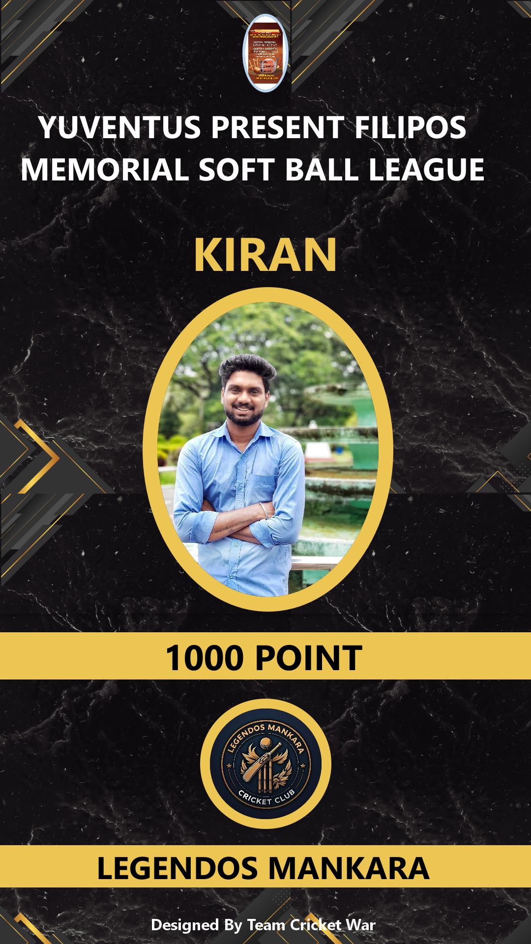ALLROUNDER, AGE : 38 WADAKKANCHERY Bid Amount : 1000 Team : LEGENDOS MANKARA Download ID Card VIEW PROFILE |