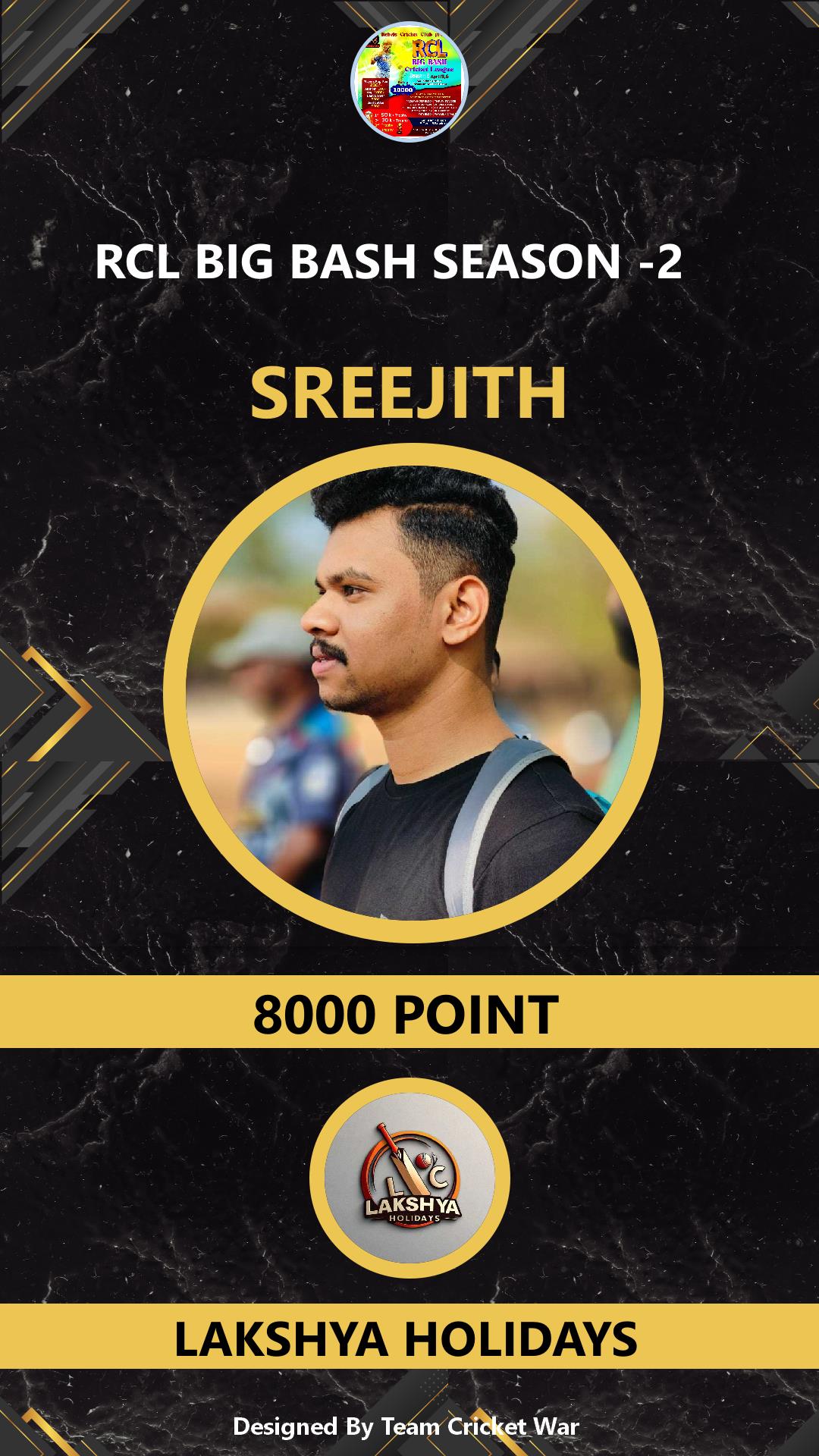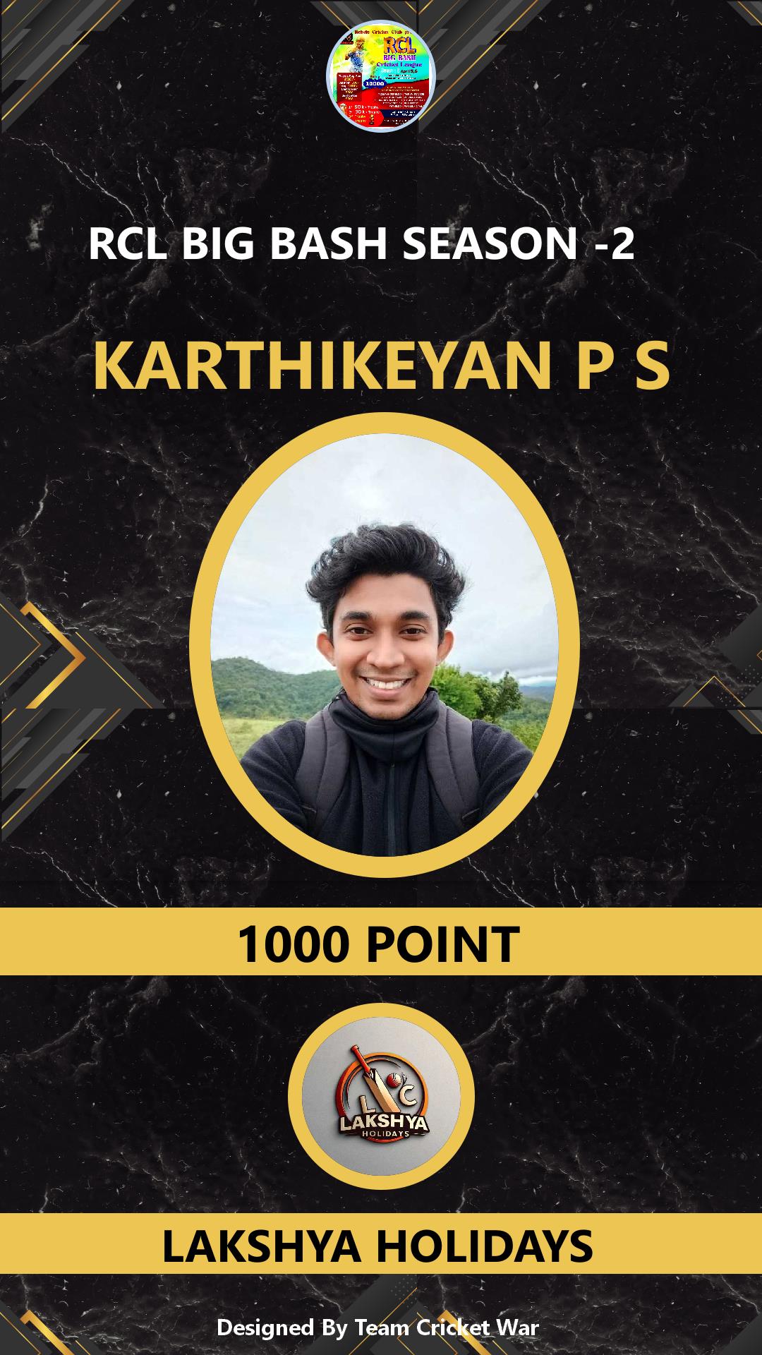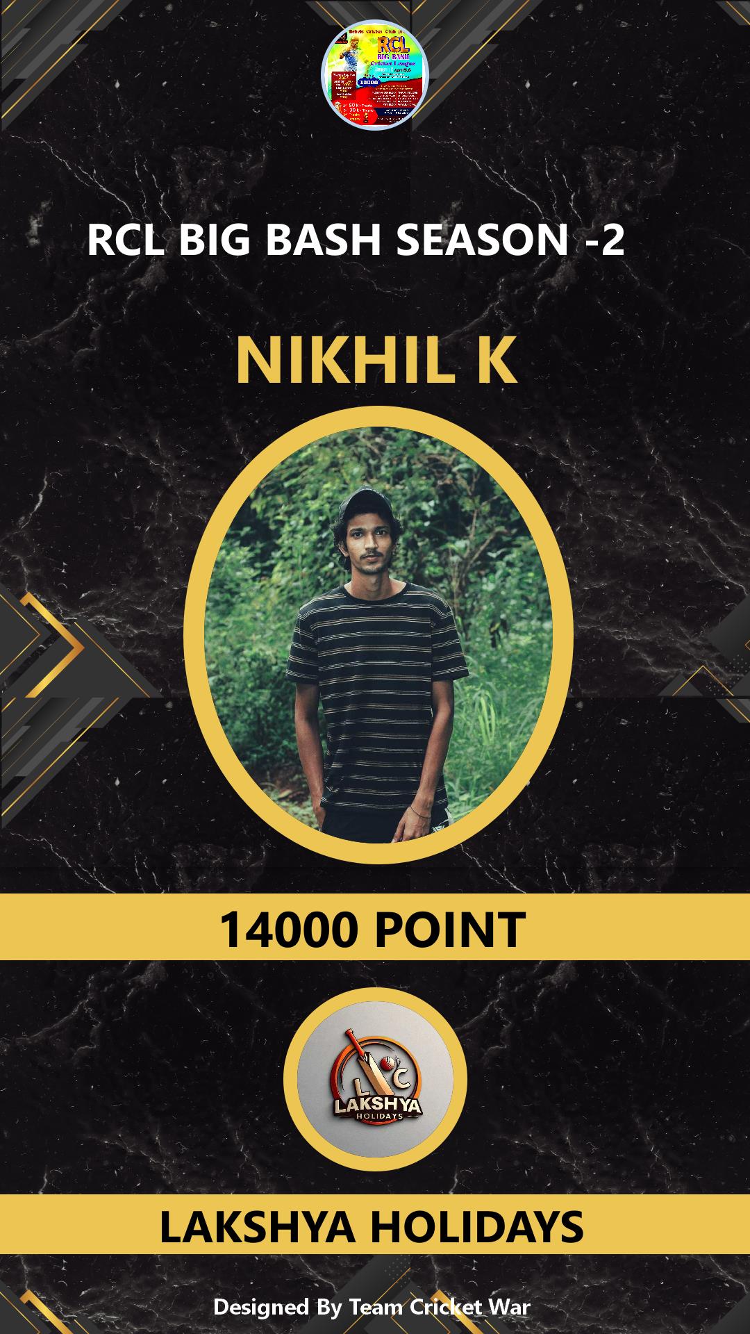 ALLROUNDER, AGE : 33 CHELAKKARA Bid Amount : 1000 Team : LAKSHYA HOLIDAYS Download ID Card VIEW PROFILE |