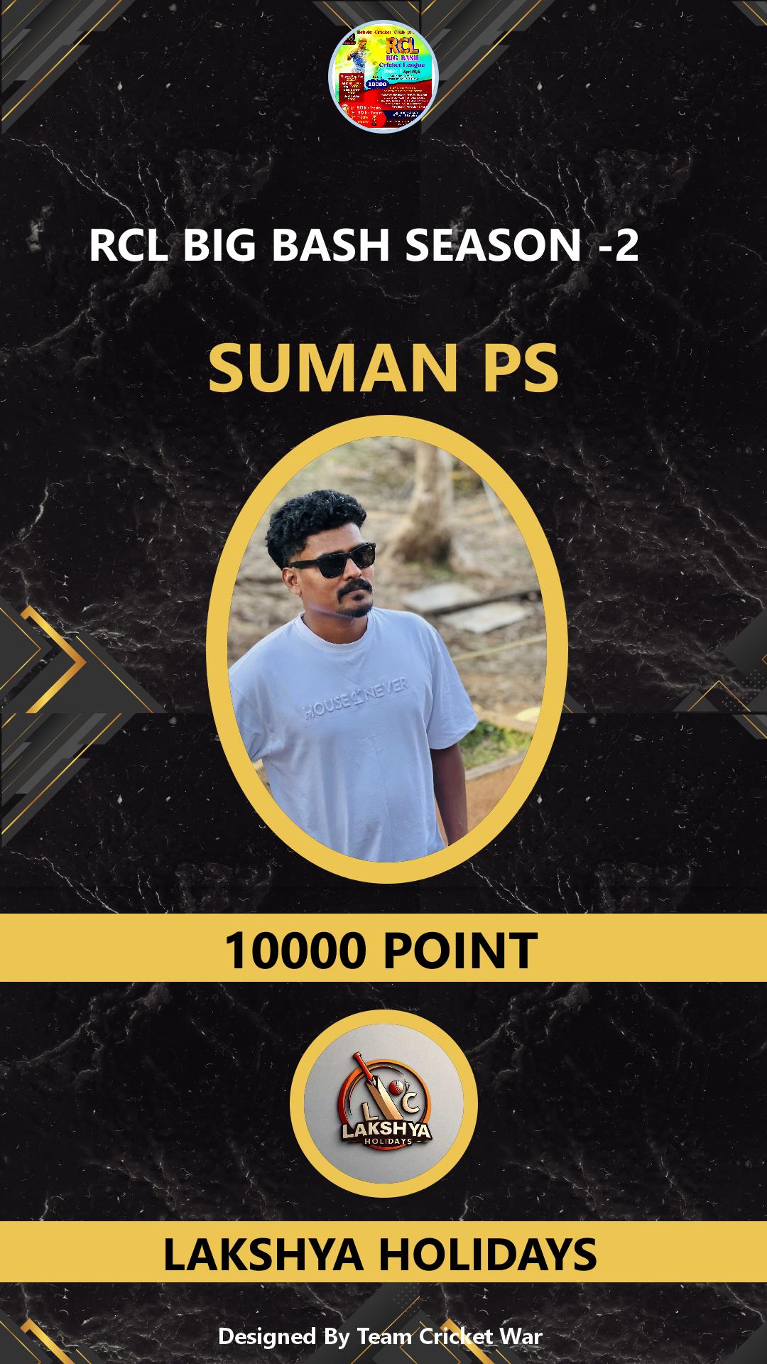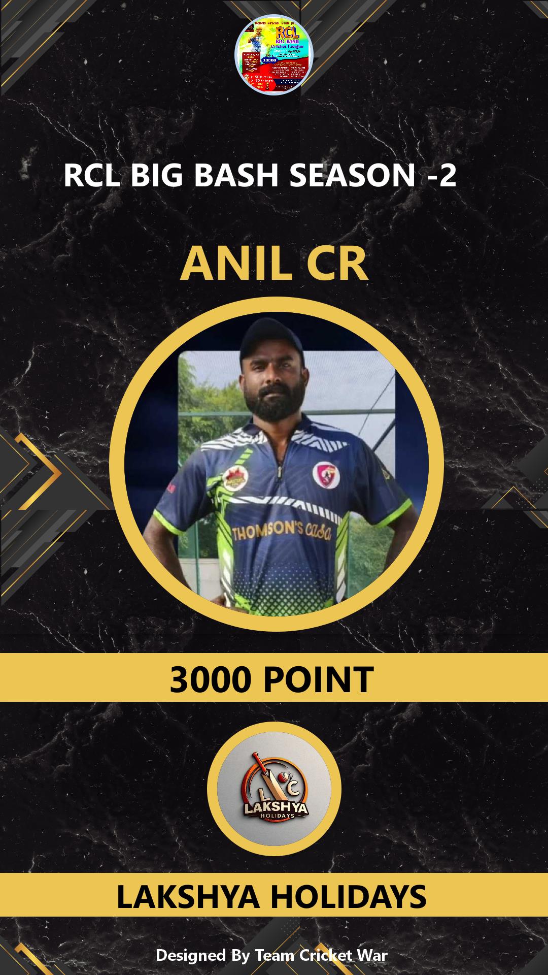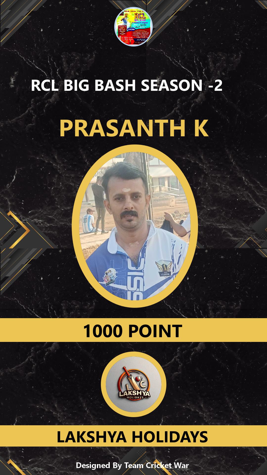 ALLROUNDER, AGE : 33 CHELAKKARA Bid Amount : 1000 Team : LAKSHYA HOLIDAYS Download ID Card VIEW PROFILE |