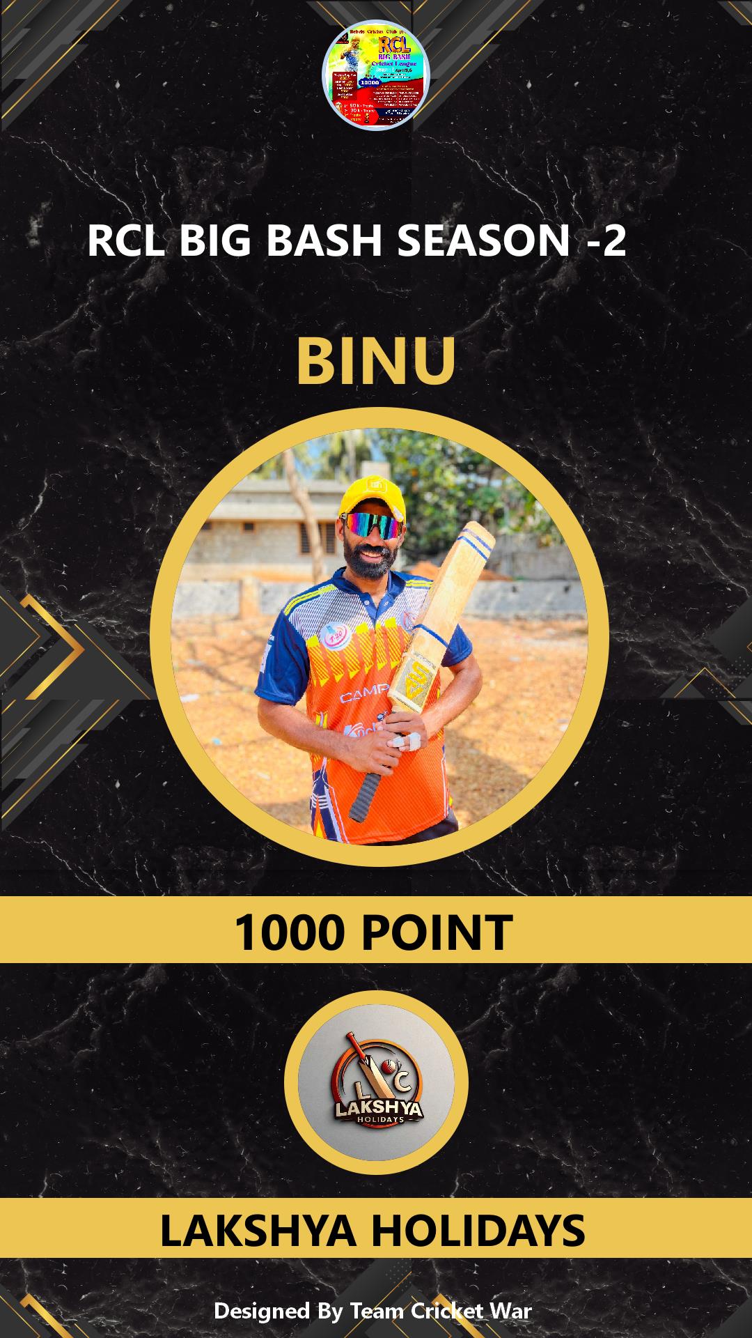 BATSMAN, AGE : 35 THONOORKARA Bid Amount : 1000 Team : LAKSHYA HOLIDAYS Download ID Card VIEW PROFILE |