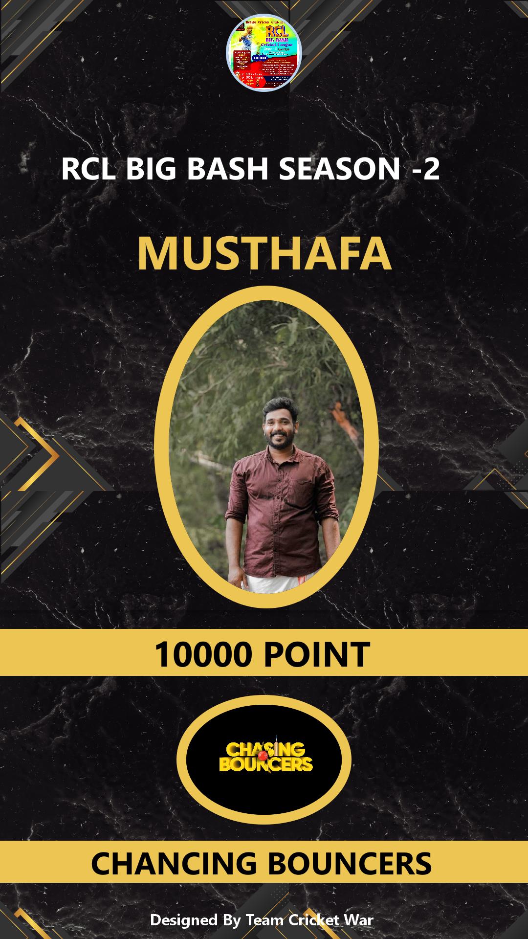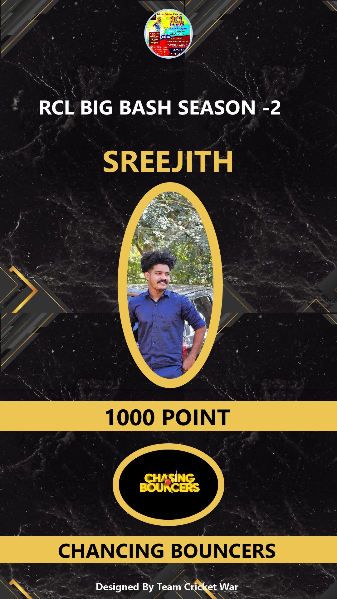 ALLROUNDER, AGE : 1 CHELAKKARA Bid Amount : 1000 Team : CHANCING BOUNCERS Download ID Card |