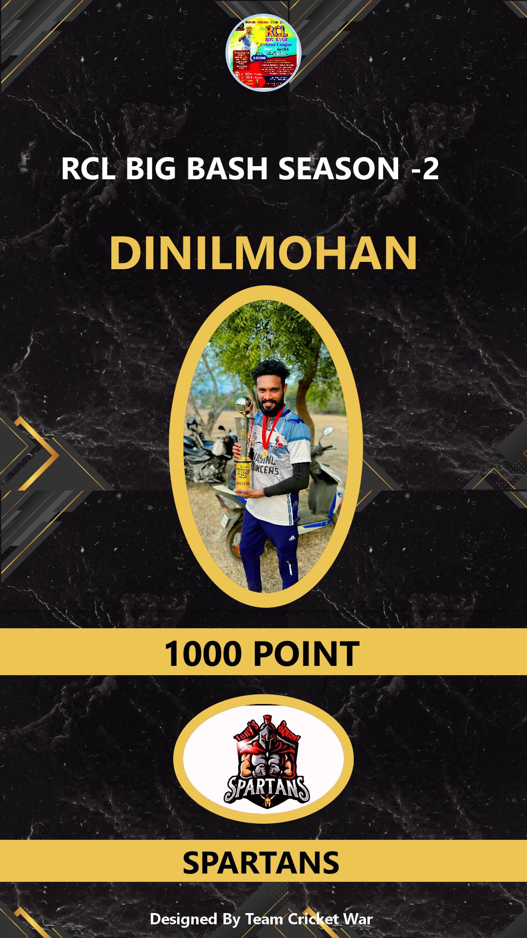 BATTING ALLROUNDER, AGE : 1 PANGARAPPILLY Bid Amount : 1000 Team : SPARTANS Download ID Card VIEW PROFILE |