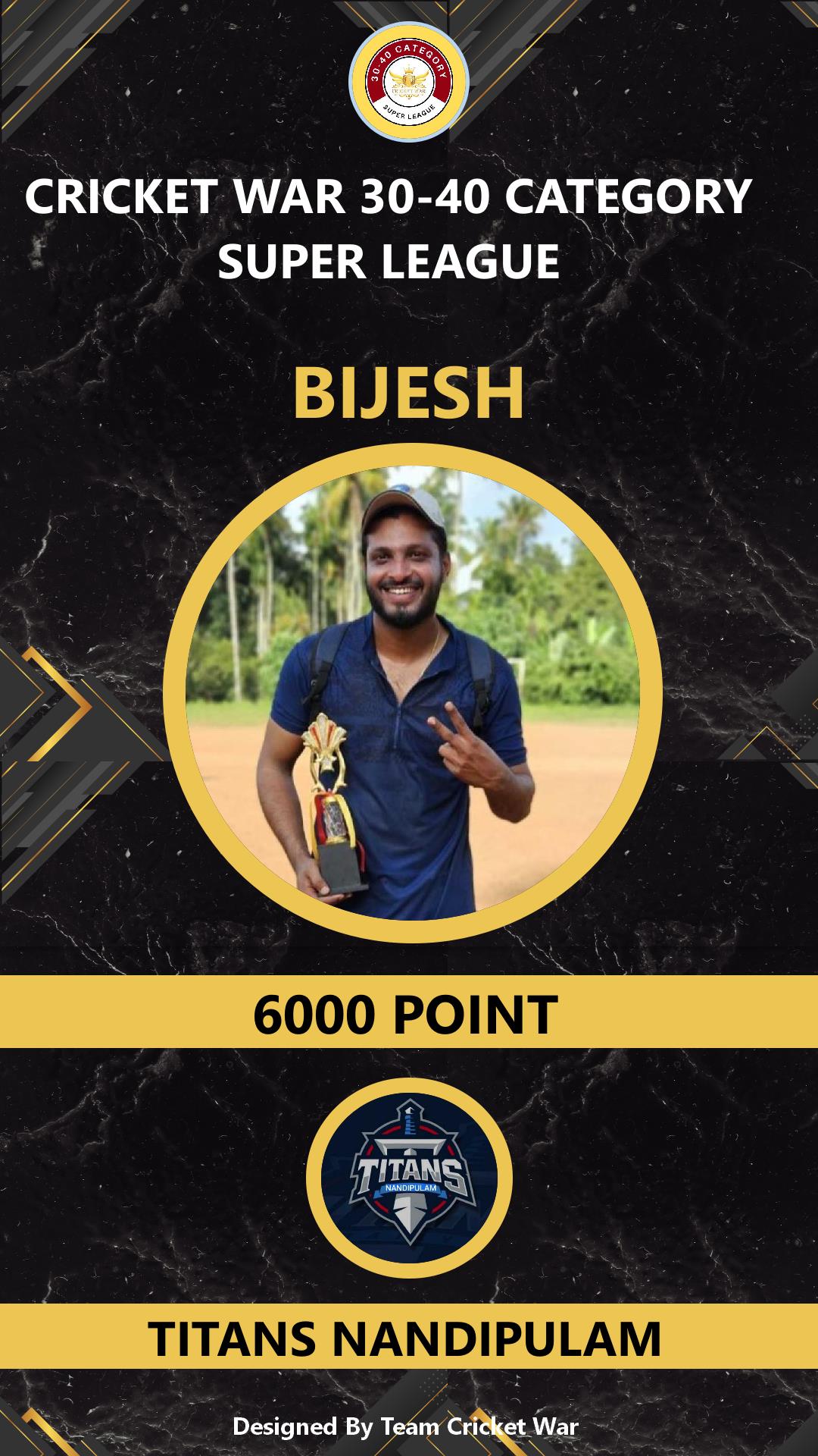ALLROUNDER, AGE : 38 MUPLIYAM Bid Amount : 4000 Team : TITANS NANDIPULAM Download ID Card VIEW PROFILE |