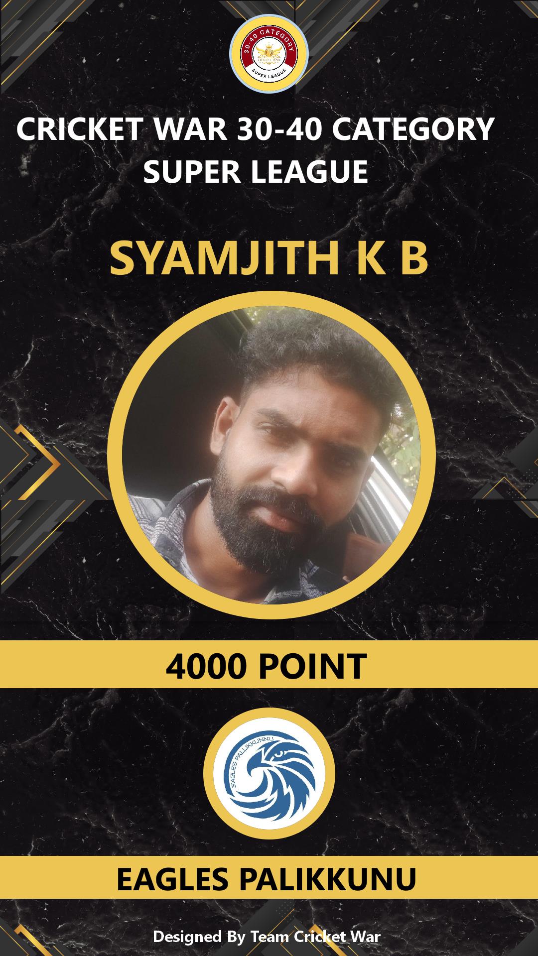 BATSMAN, AGE : 35 KARUVAPPADY Bid Amount : 4000 Team : EAGLES PALIKKUNU Download ID Card VIEW PROFILE |