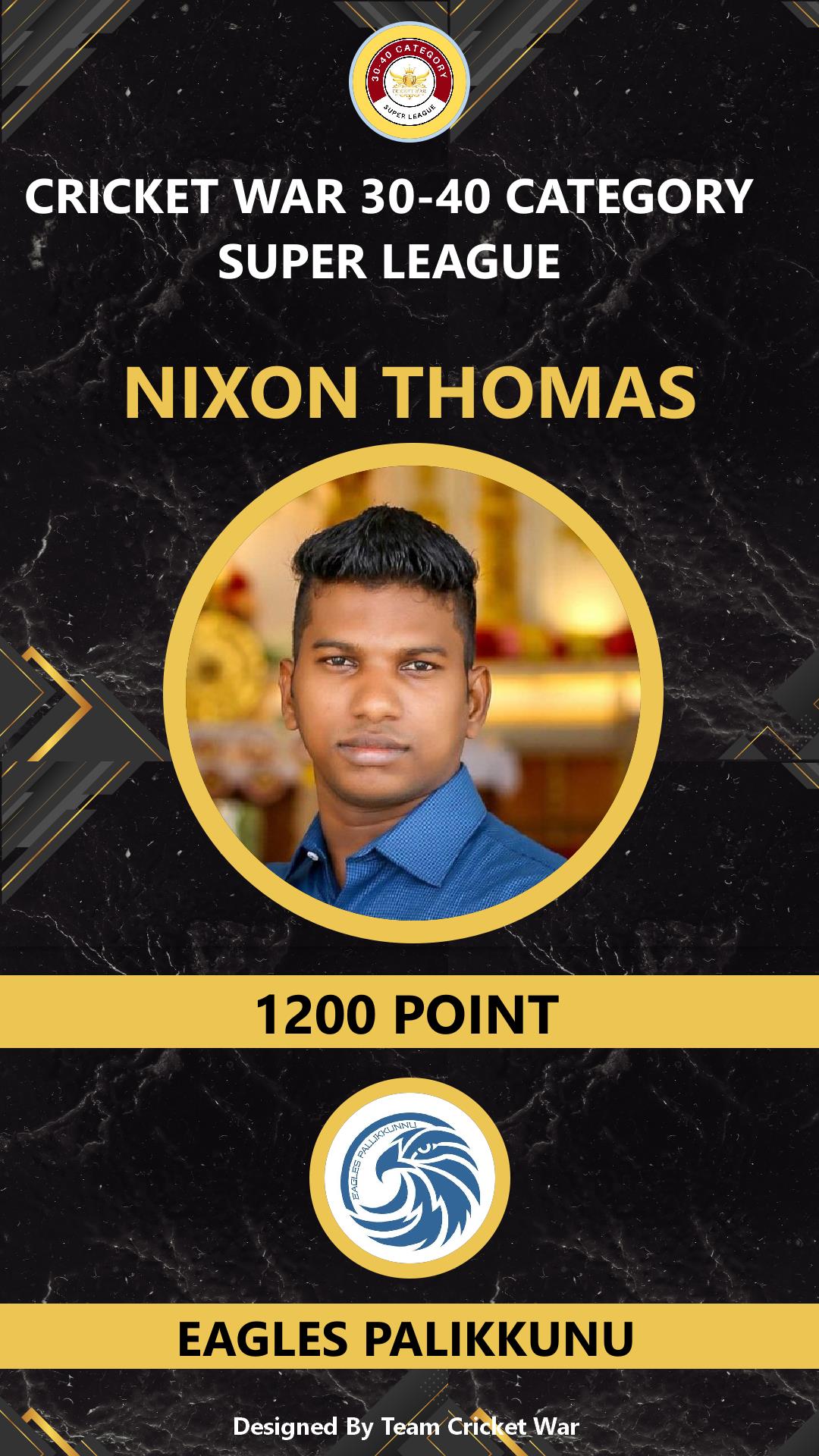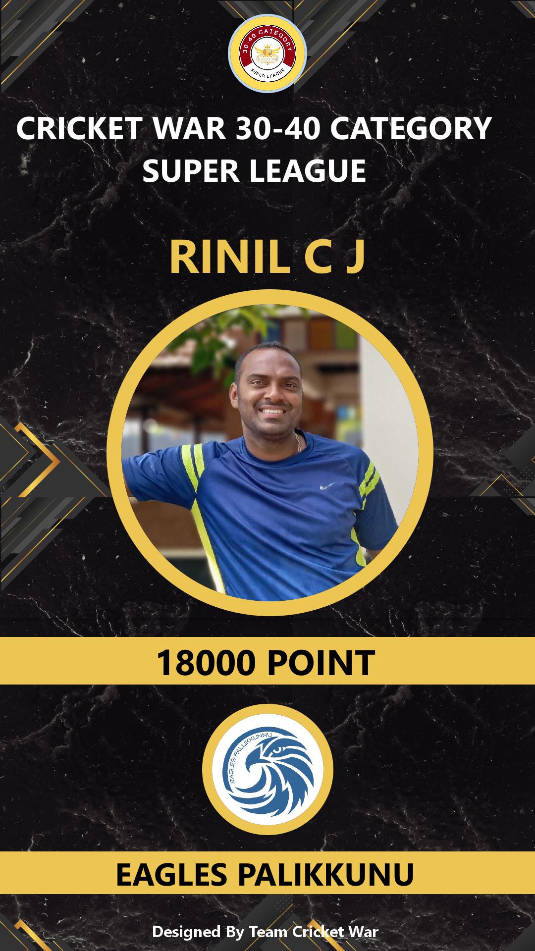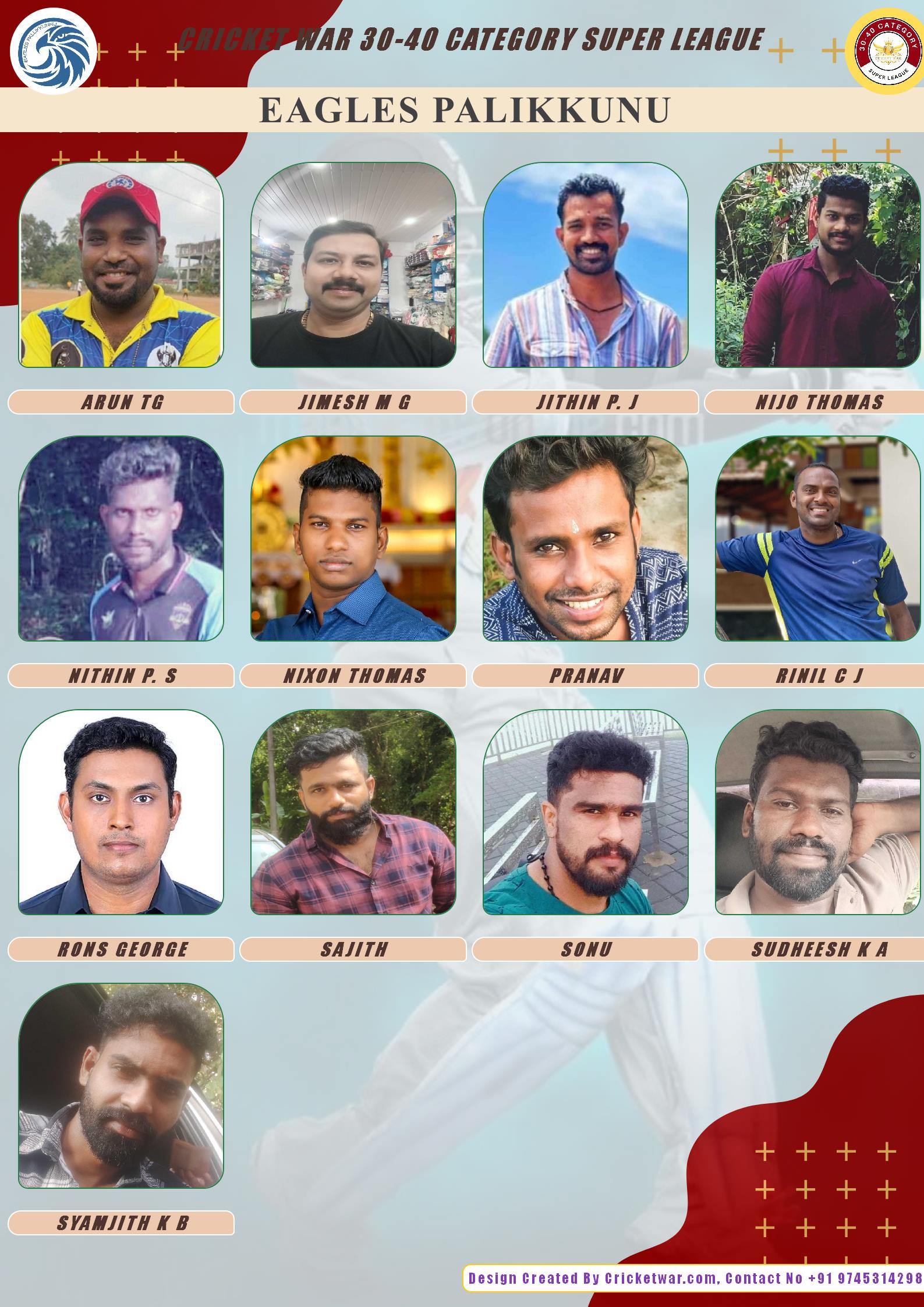 ALLROUNDER, AGE : 37 TRIKKUR Bid Amount : 1600 Team : EAGLES PALIKKUNU Download ID Card VIEW PROFILE |