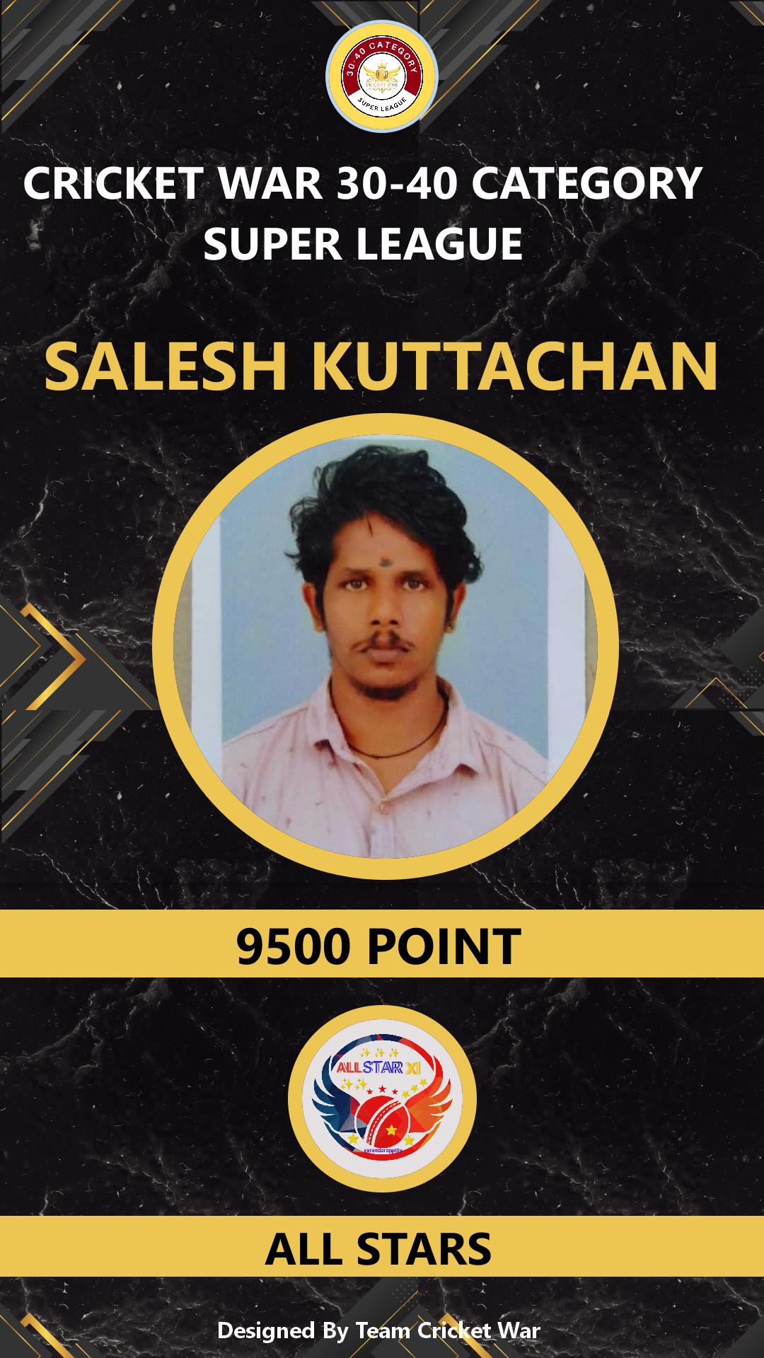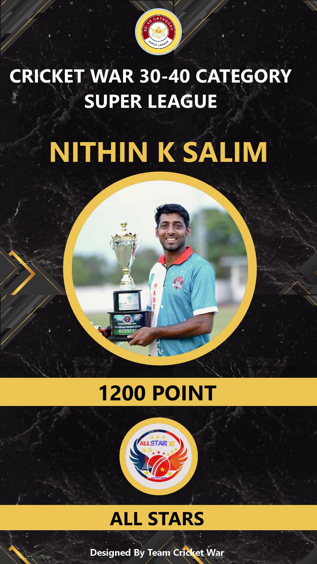 ALLROUNDER, AGE : 36 CHENGALOOR Bid Amount : 1400 Team : ALL STARS Download ID Card VIEW PROFILE |