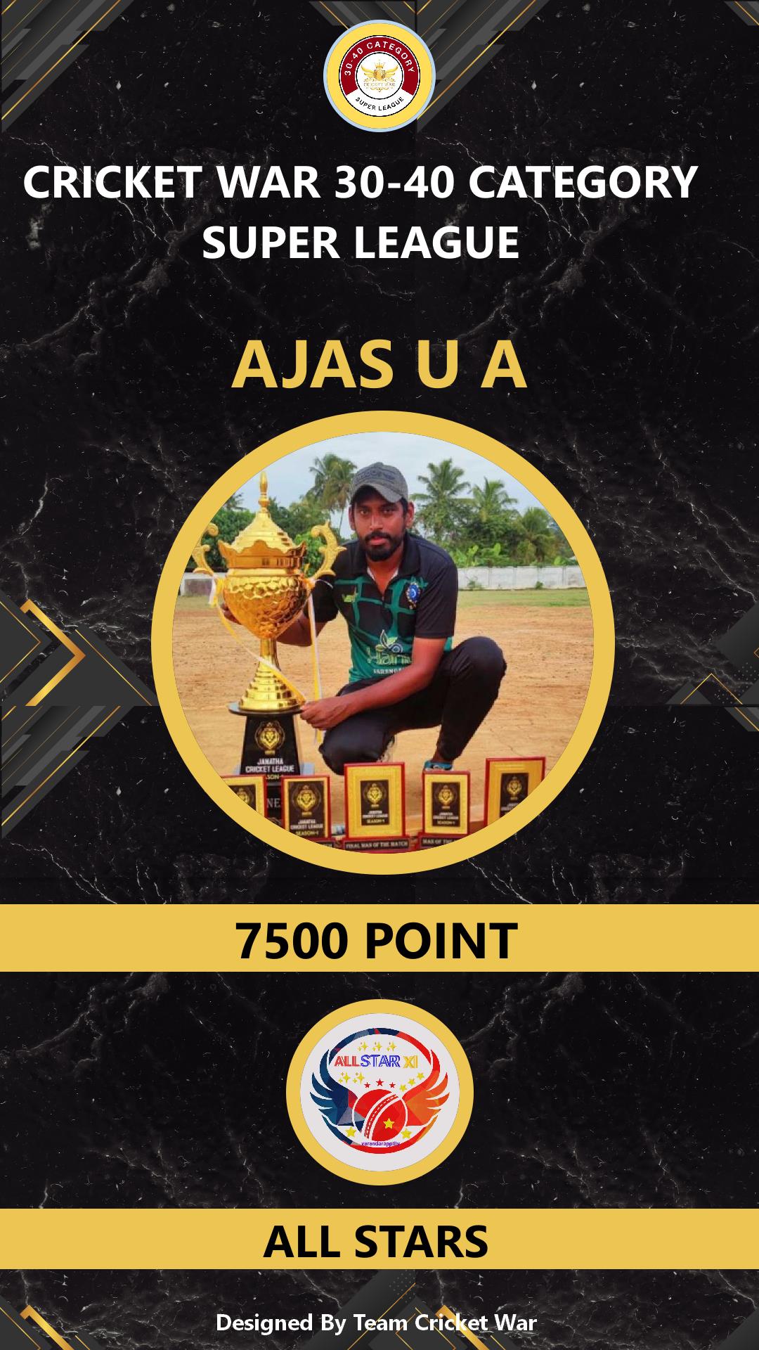 ALLROUNDER, AGE : 38 ARIMBUR Bid Amount : 8500 Team : ALL STARS Download ID Card VIEW PROFILE |