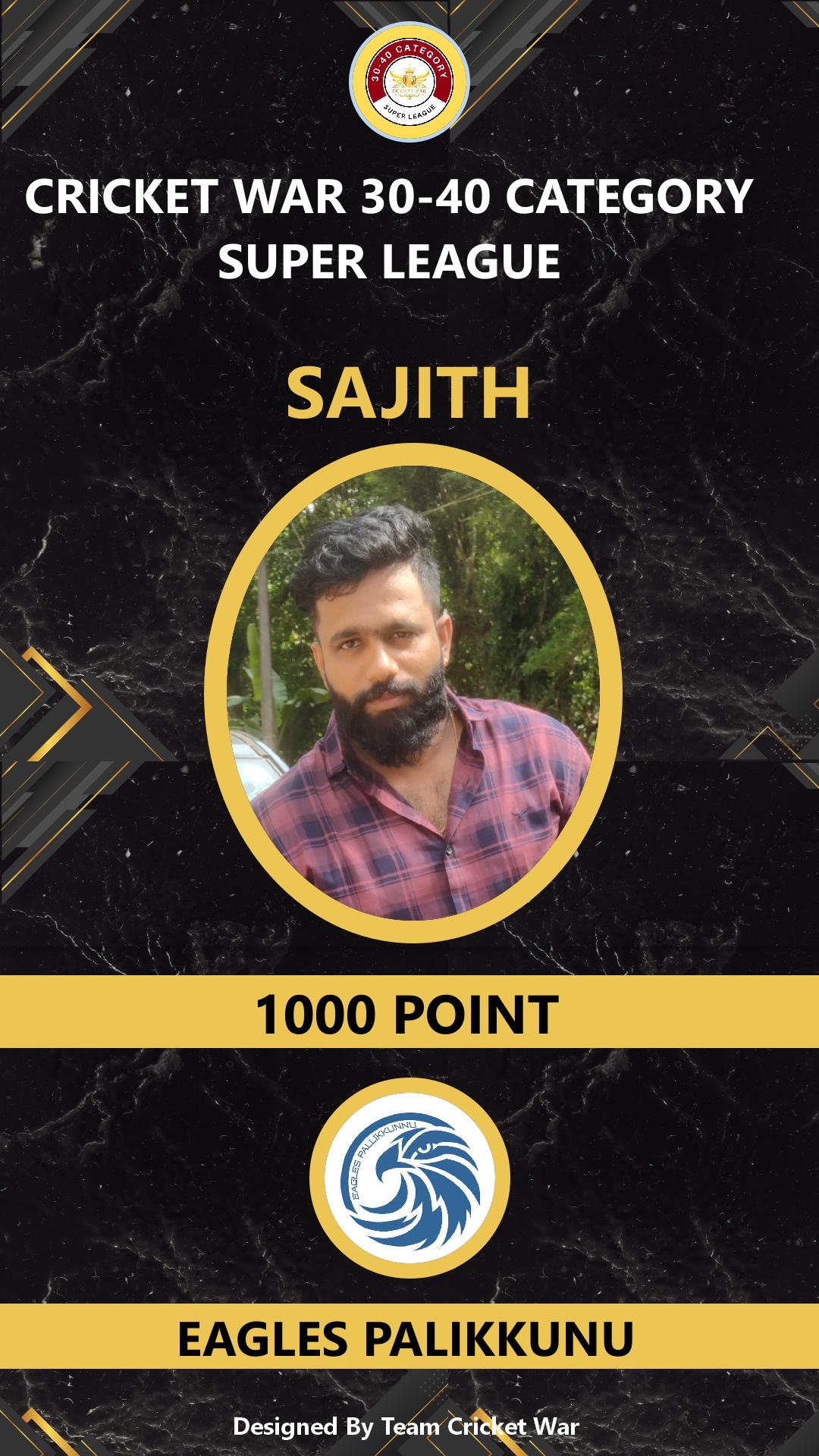 ALLROUNDER, AGE : 34 PALLIKUNNU Bid Amount : 1000 Team : EAGLES PALIKKUNU Download ID Card VIEW PROFILE |