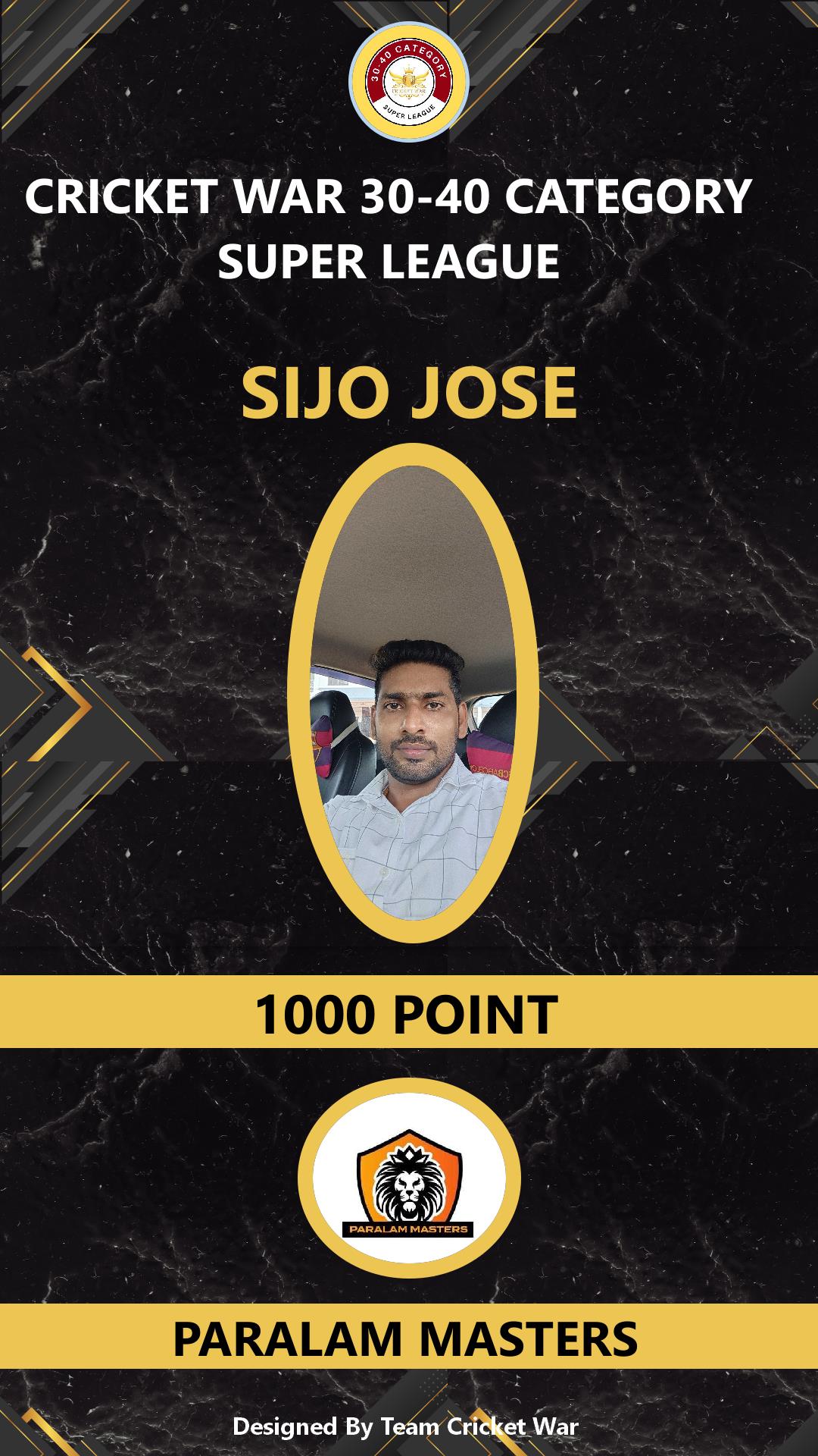 ALLROUNDER, AGE : 35 VENGINISSERY Bid Amount : 1000 Team : PARALAM MASTERS Download ID Card VIEW PROFILE |