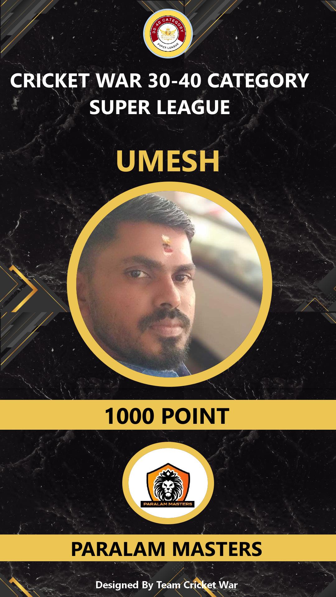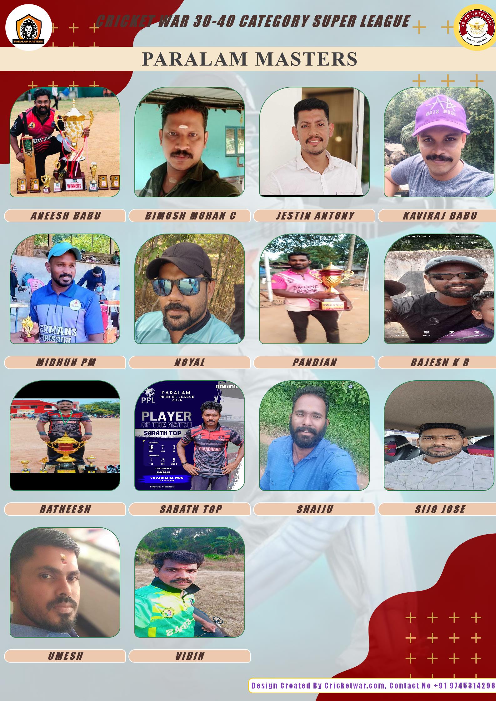 ALLROUNDER, AGE : 41 PARALAM Bid Amount : 2400 Team : PARALAM MASTERS Download ID Card VIEW PROFILE |