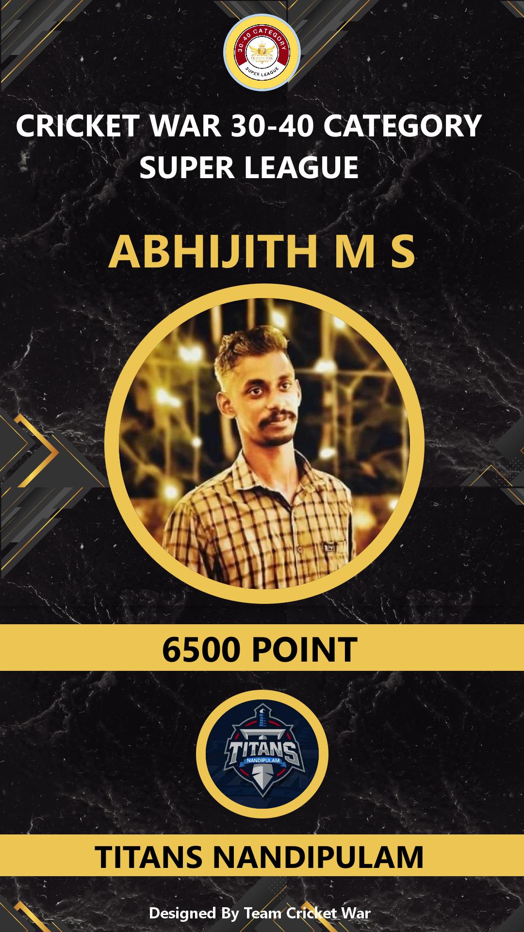 BATSMAN, AGE : 35 CHENGALOOR Bid Amount : 2200 Team : TITANS NANDIPULAM Download ID Card VIEW PROFILE |