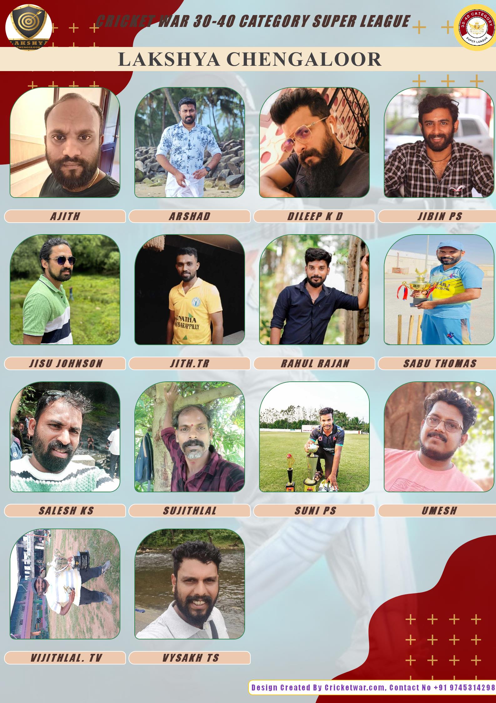 ALLROUNDER, AGE : 33 CHENGALOOR Bid Amount : 3500 Team : LAKSHYA CHENGALOOR Download ID Card VIEW PROFILE |