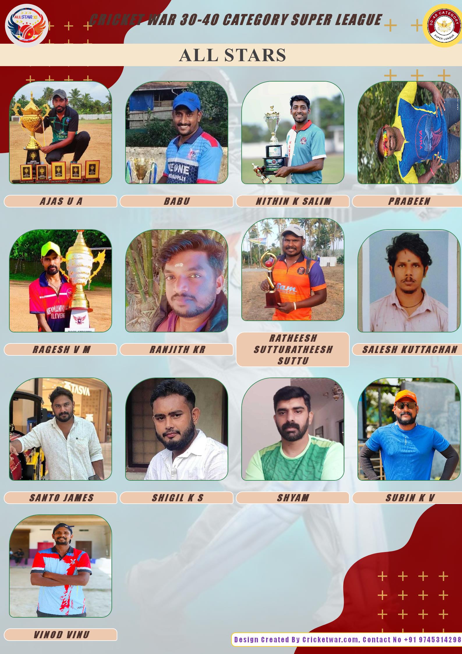 BATTING ALLROUNDER, AGE : 38 VARANDARAPILLY Bid Amount : 3000 Team : ALL STARS Download ID Card VIEW PROFILE |