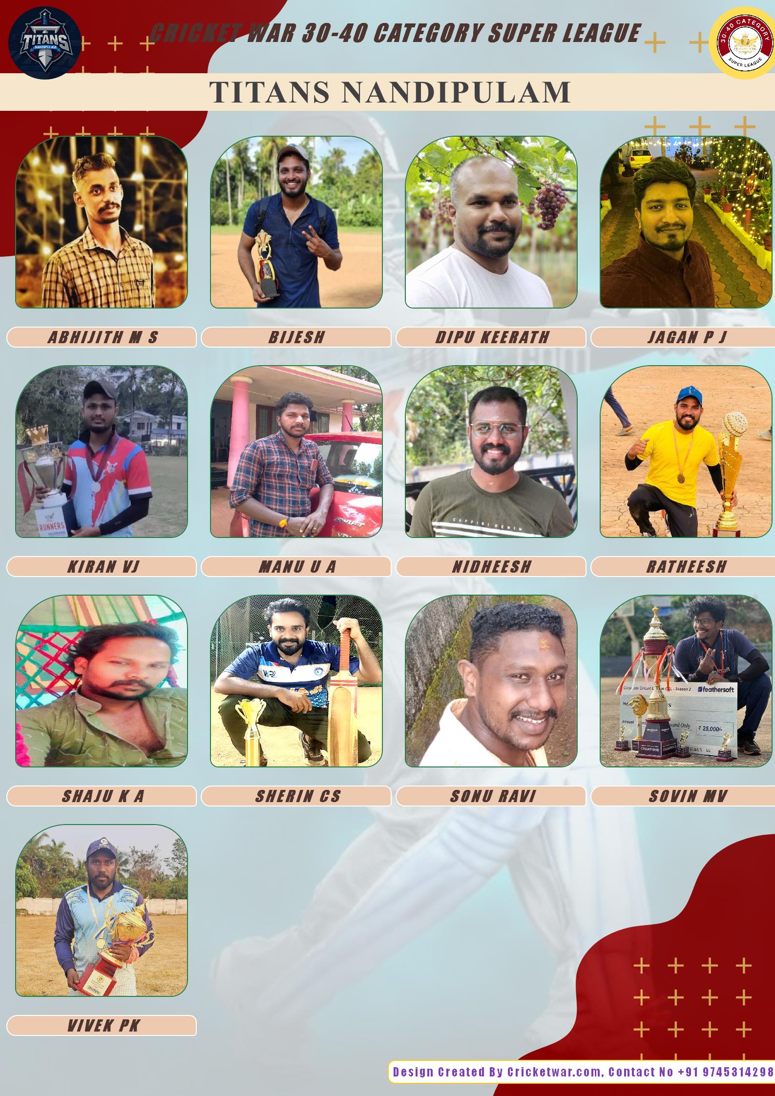 ALLROUNDER, AGE : 35 VARANDARAPPILLY Bid Amount : 20000 Team : TITANS NANDIPULAM Download ID Card VIEW PROFILE |