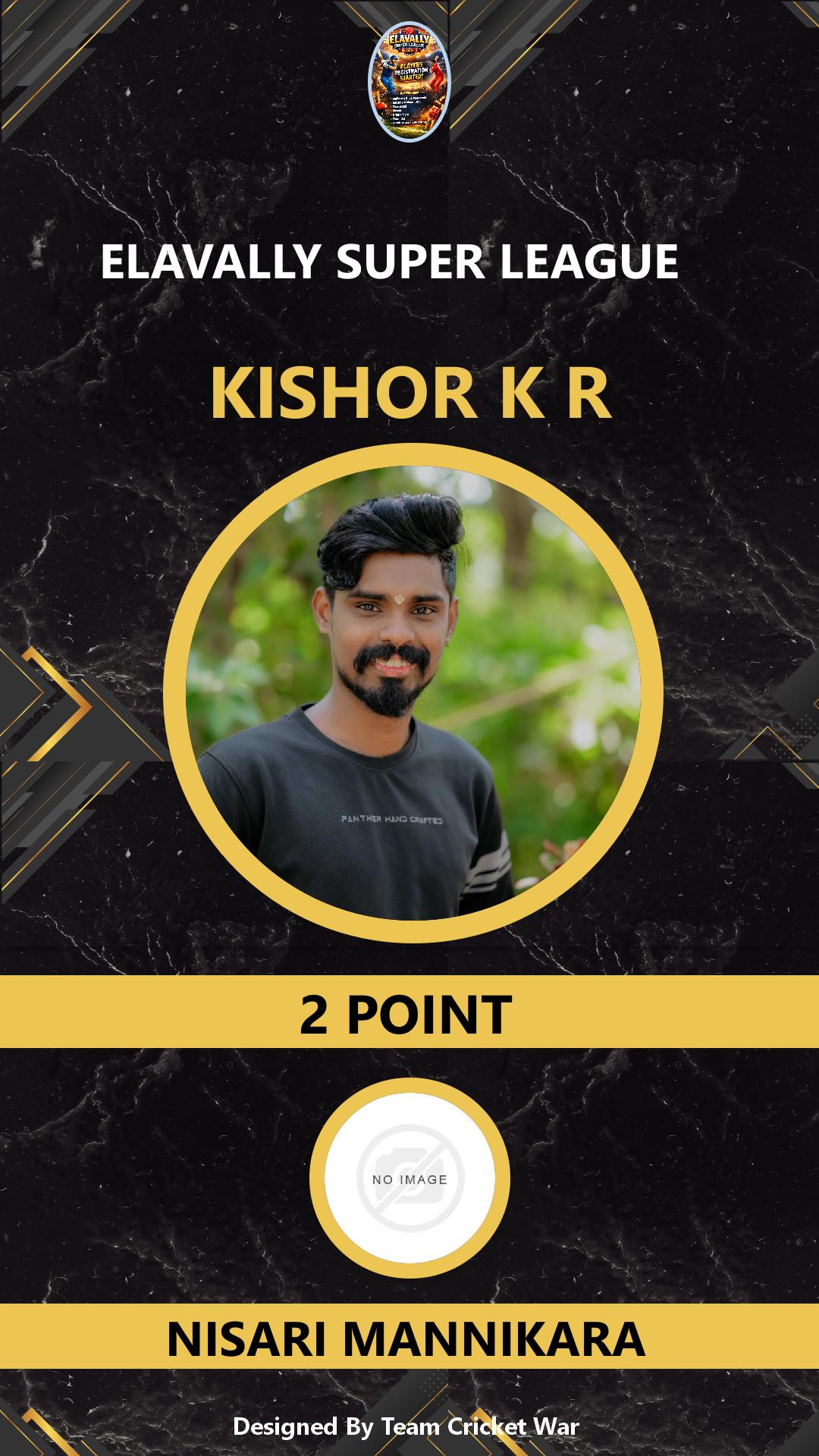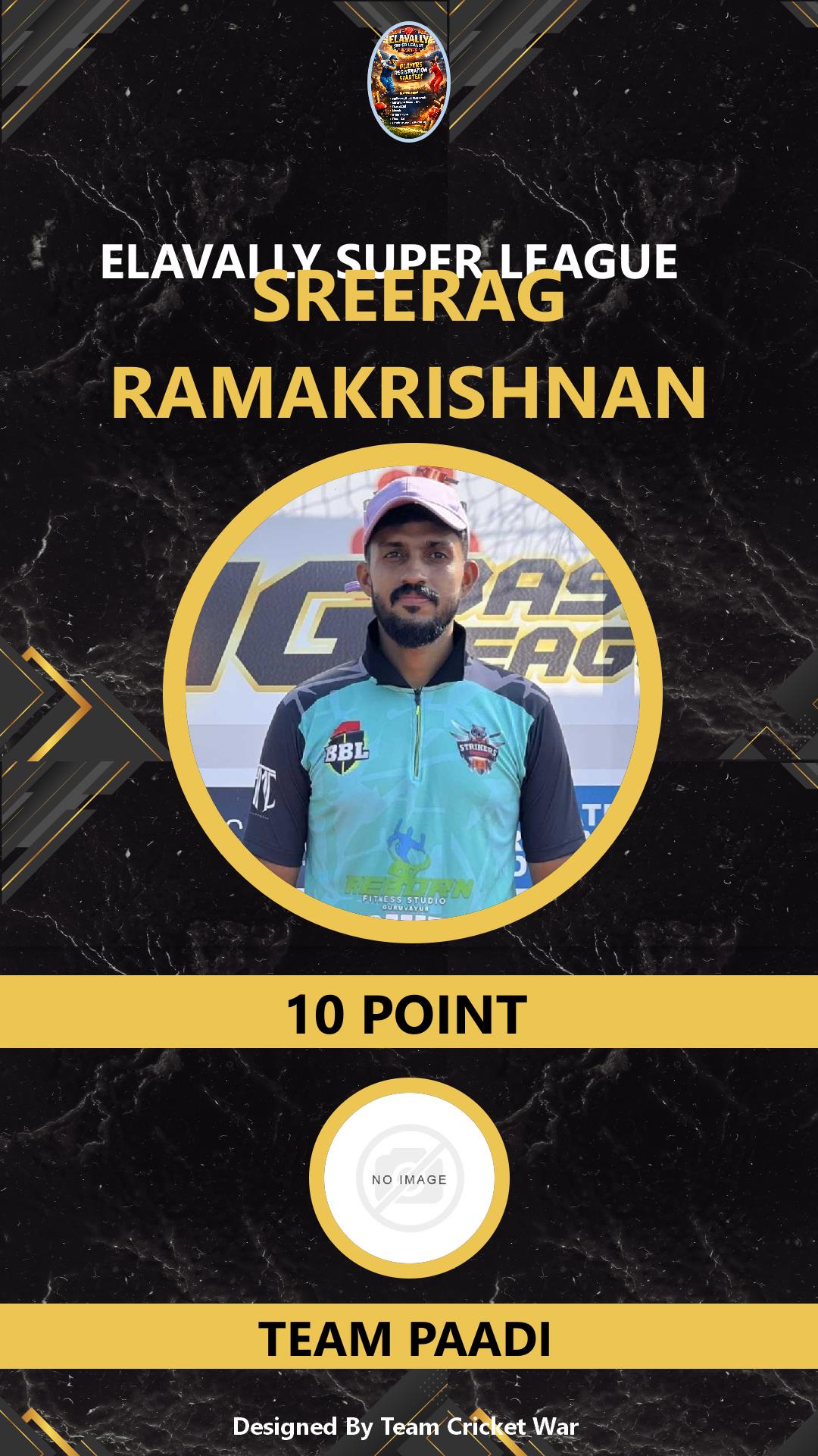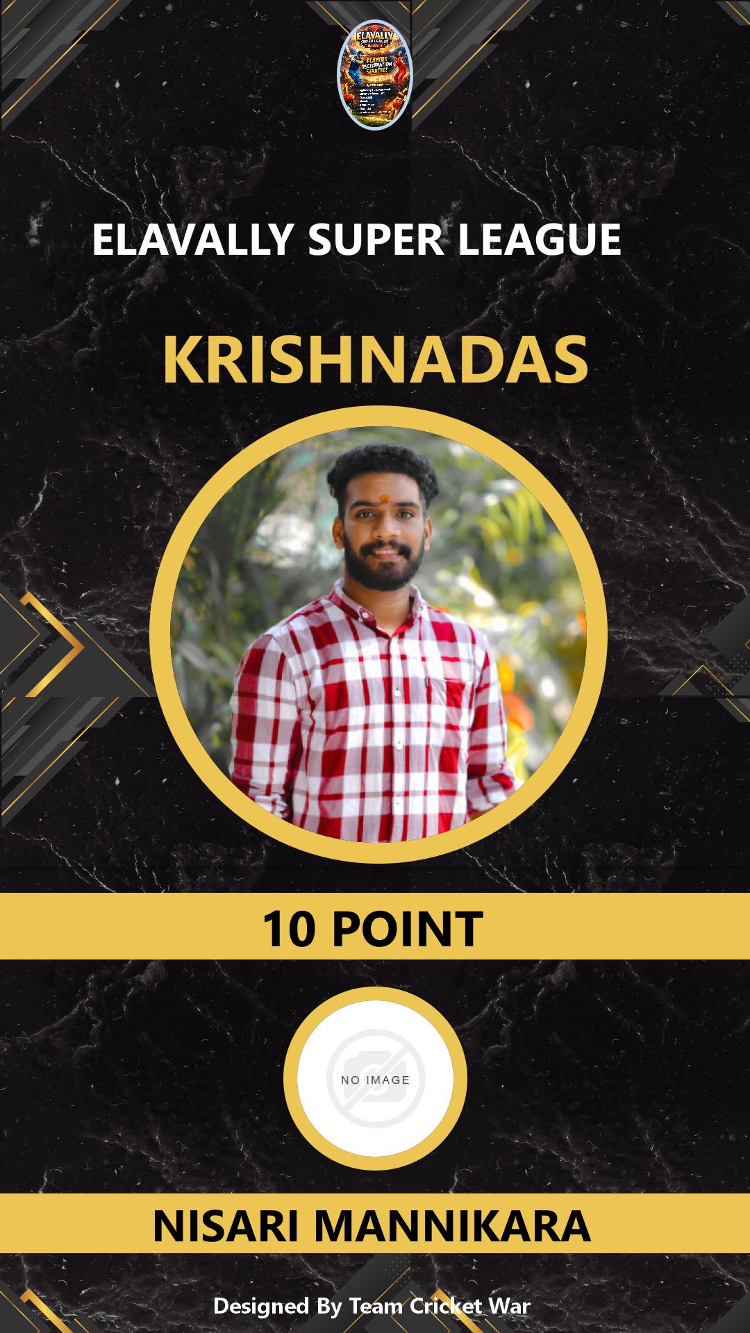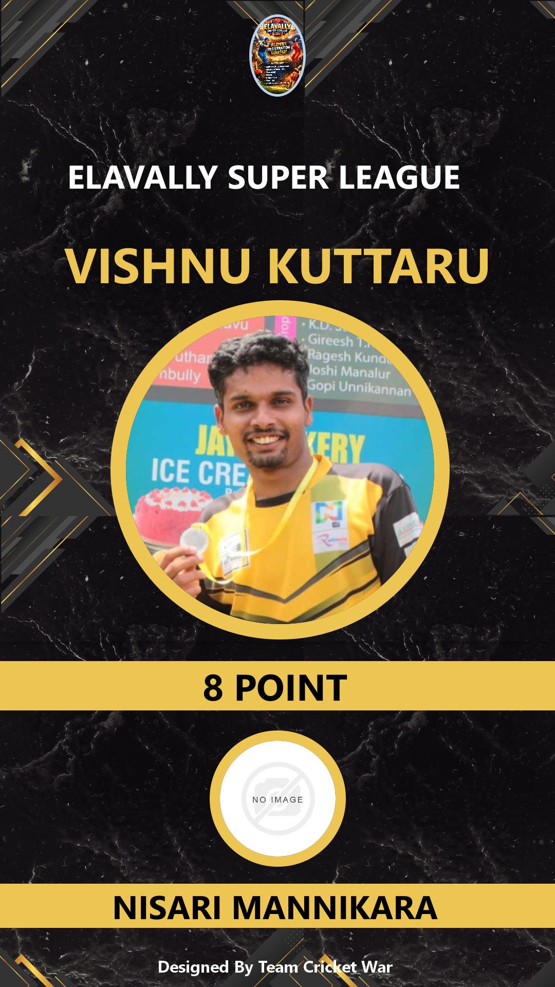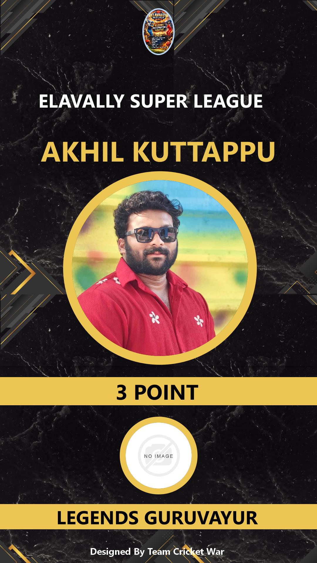 ALLROUNDER, AGE : 31 GURUVAYOOR Bid Amount : 10 Team : NISARI MANNIKARA Download ID Card VIEW PROFILE |