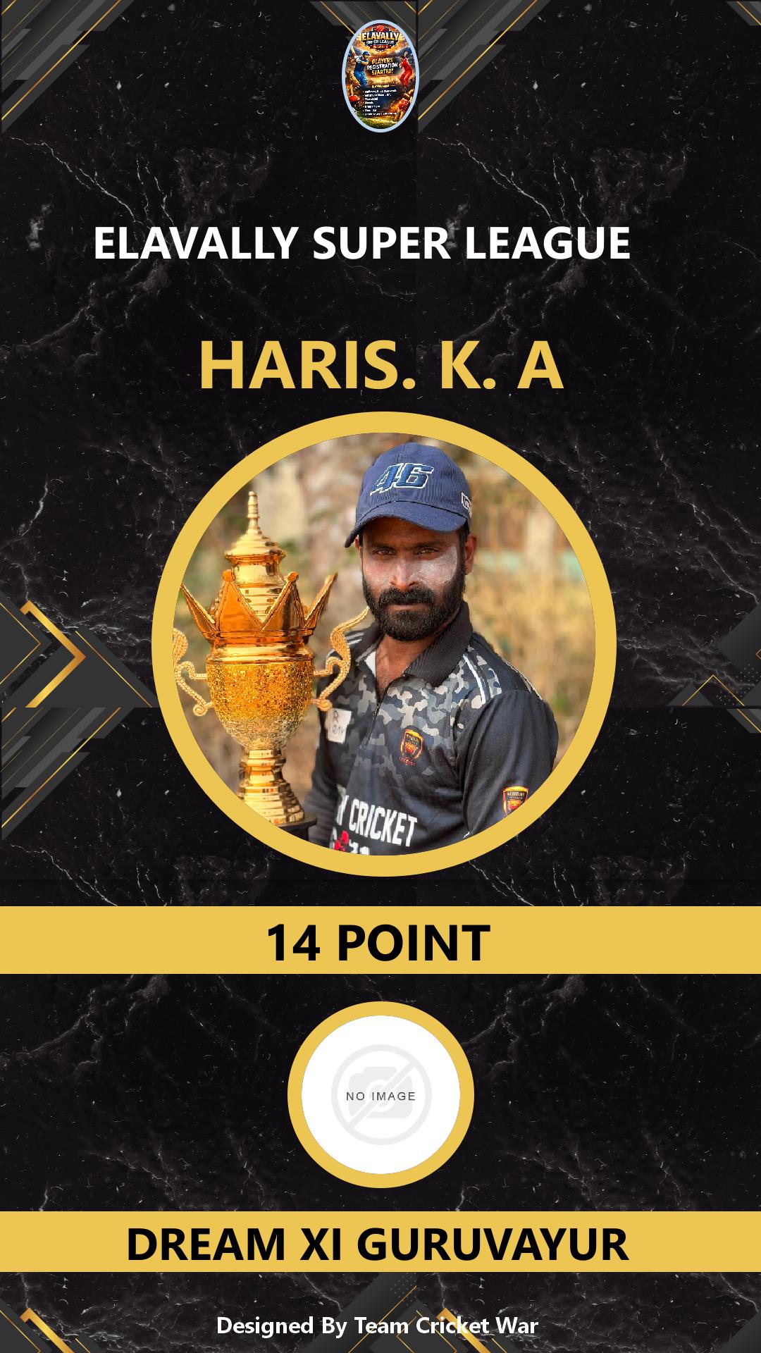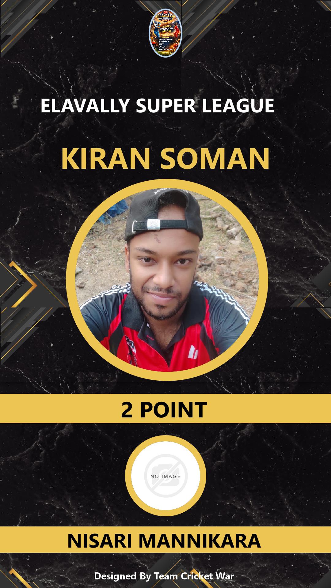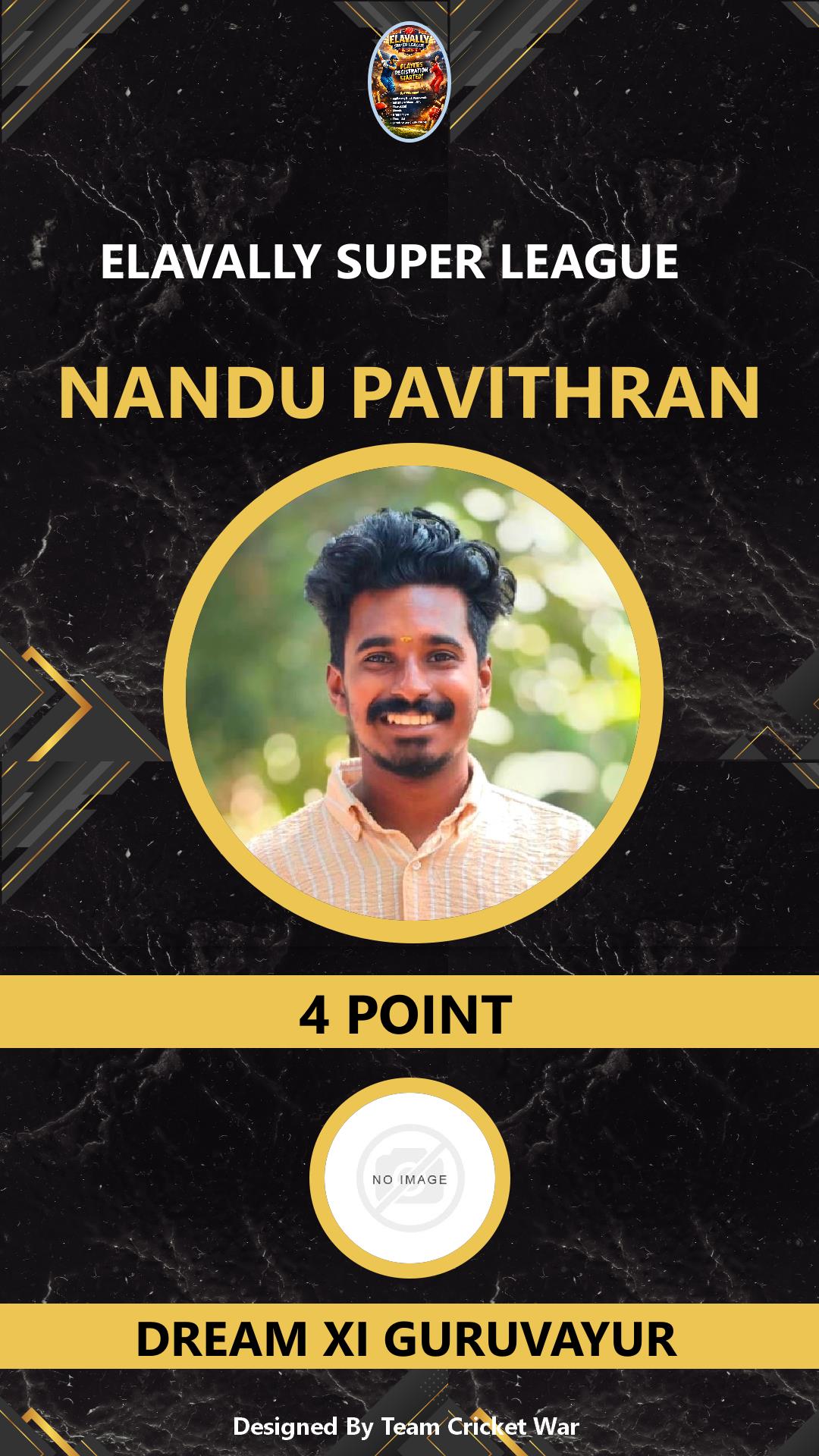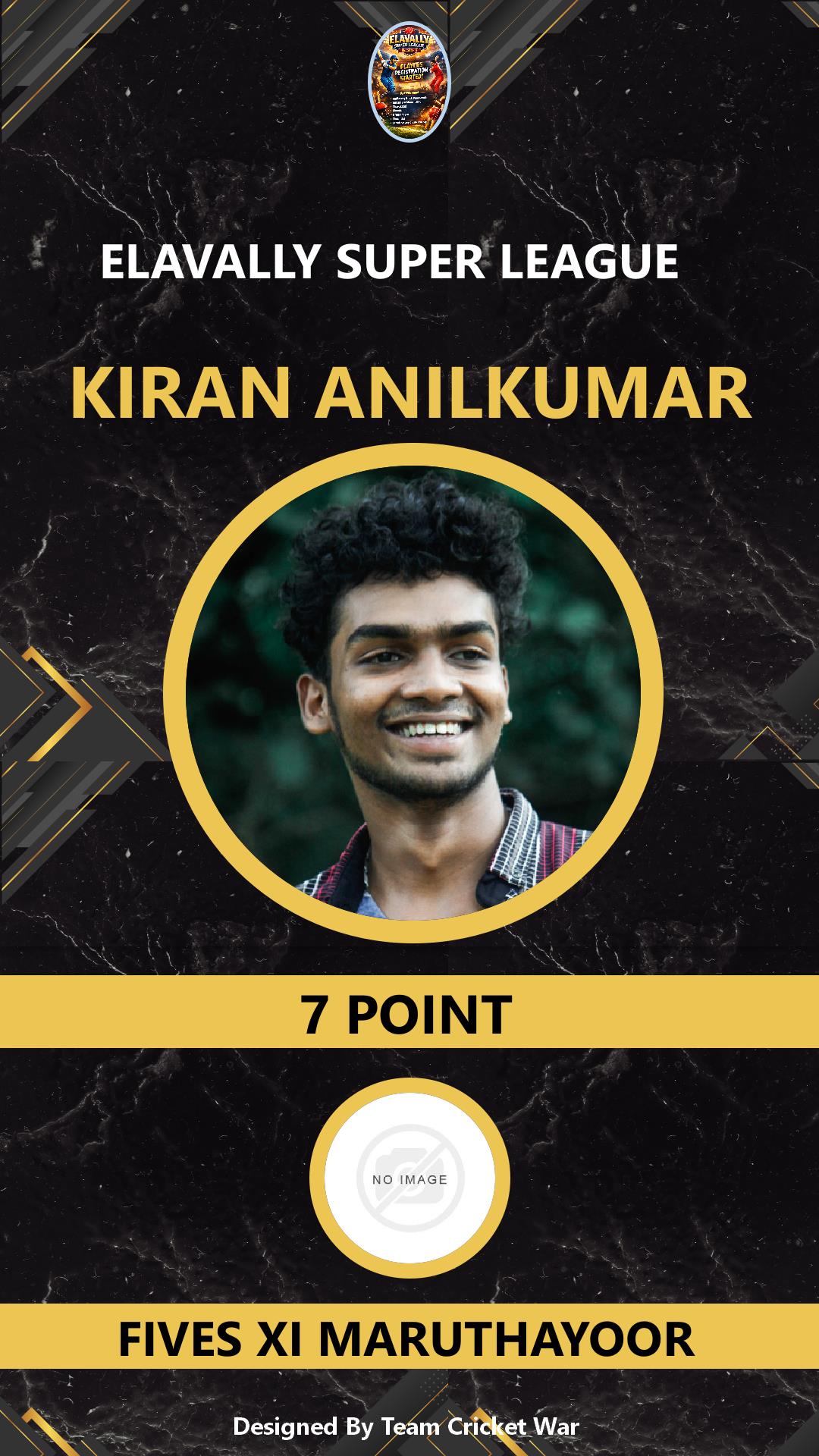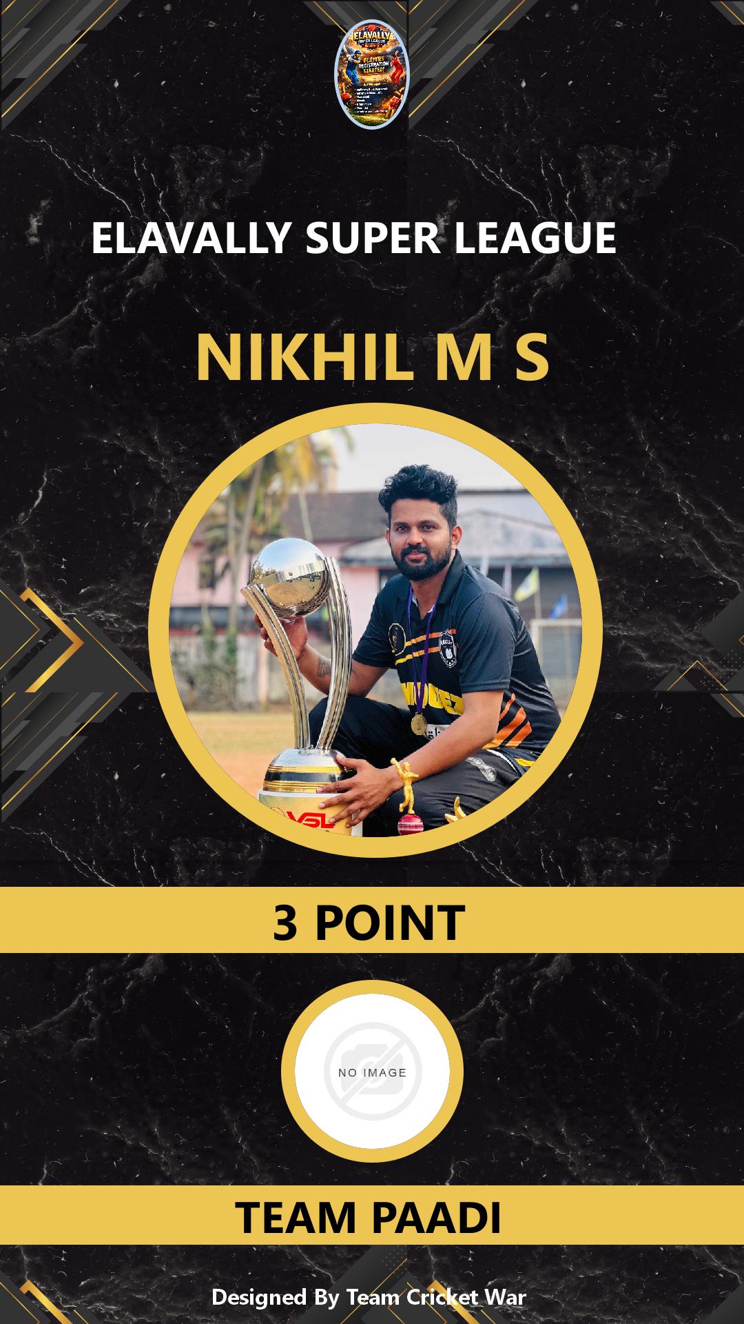 ALLROUNDER, AGE : 31 GURUVAYOOR Bid Amount : 10 Team : NISARI MANNIKARA Download ID Card VIEW PROFILE |
