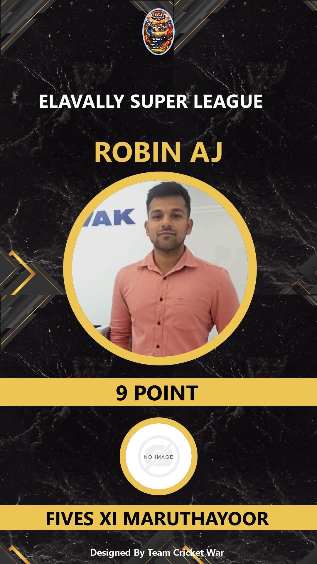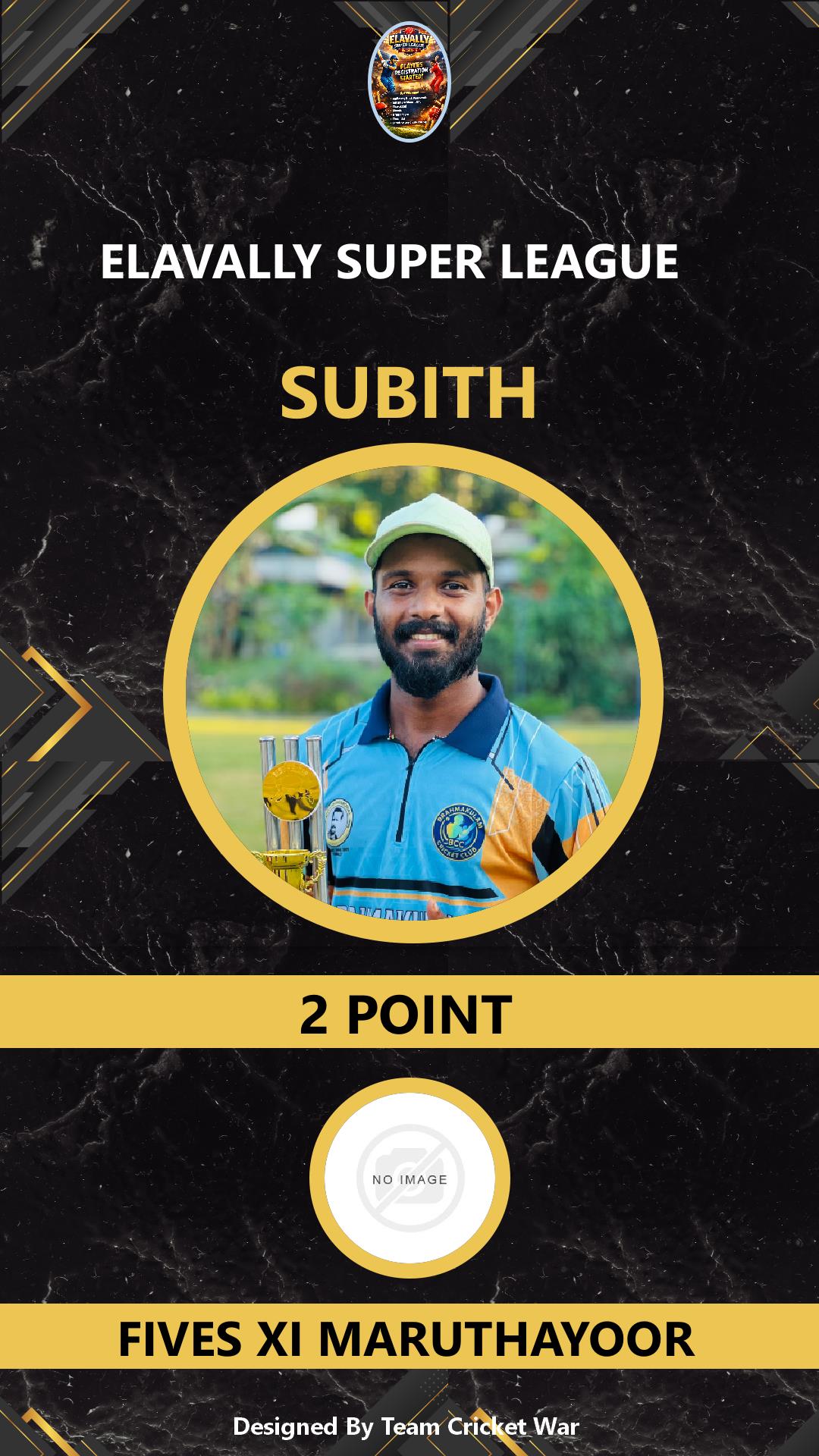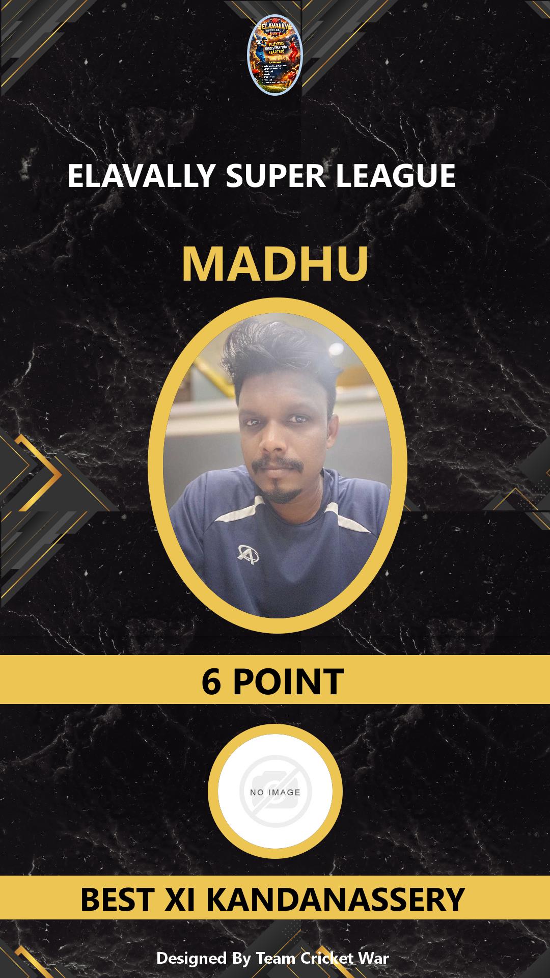 ALLROUNDER, AGE : 33 MAMABAZAR Bid Amount : 7 Team : FIVES XI MARUTHAYOOR Download ID Card VIEW PROFILE |