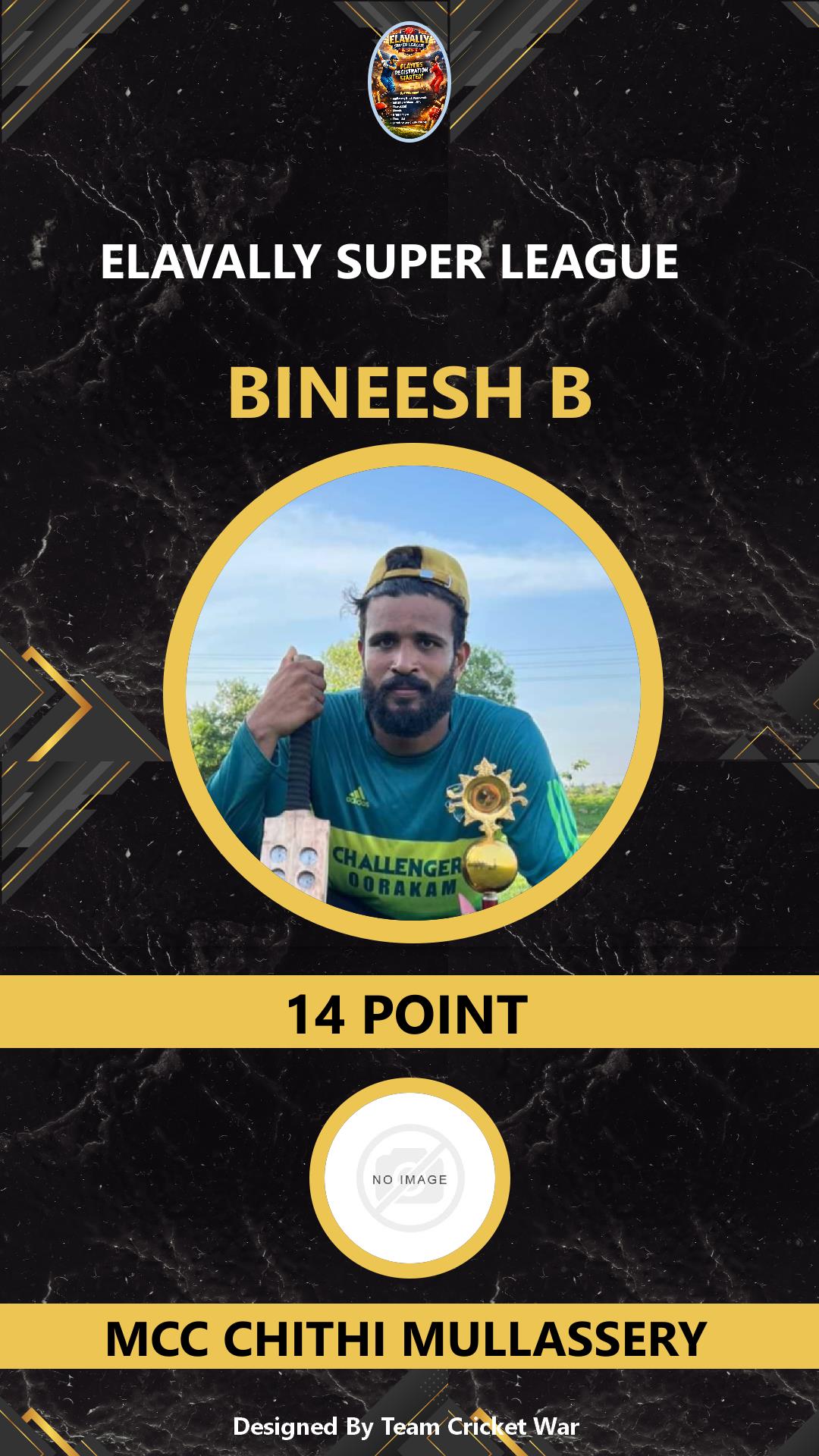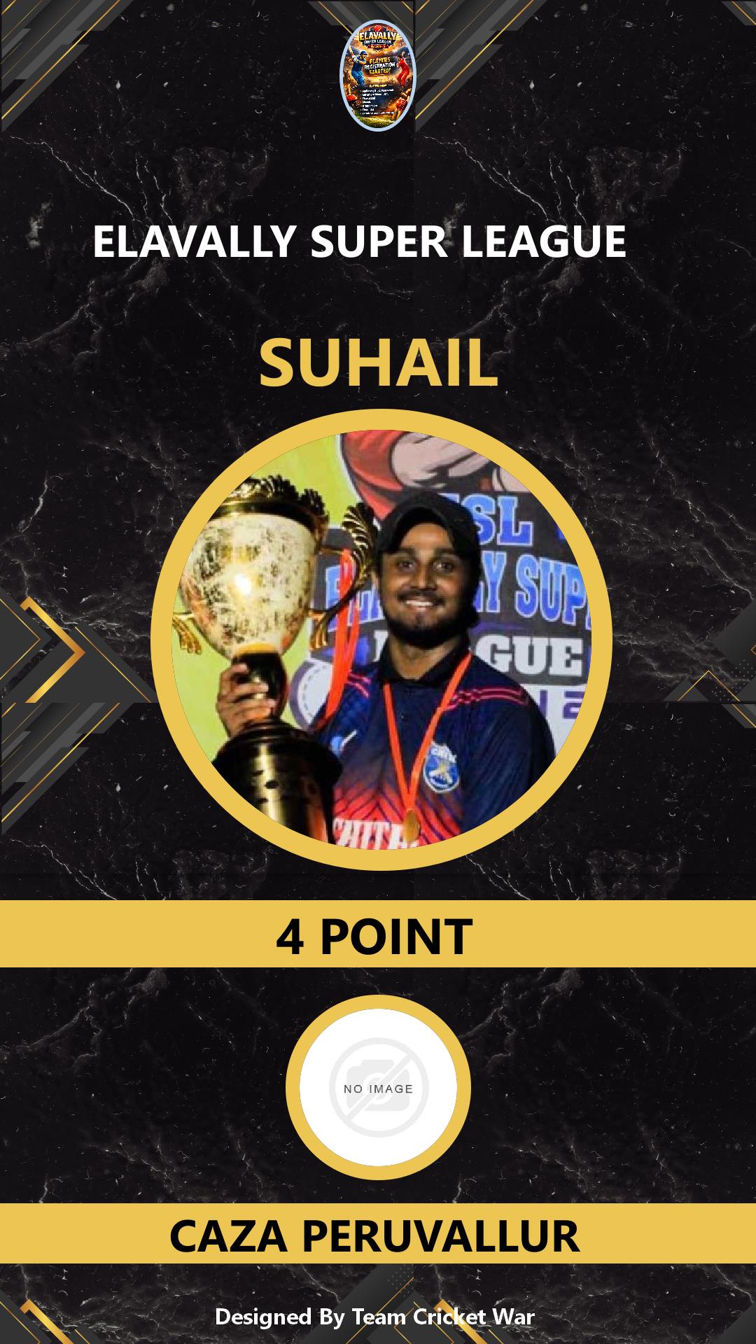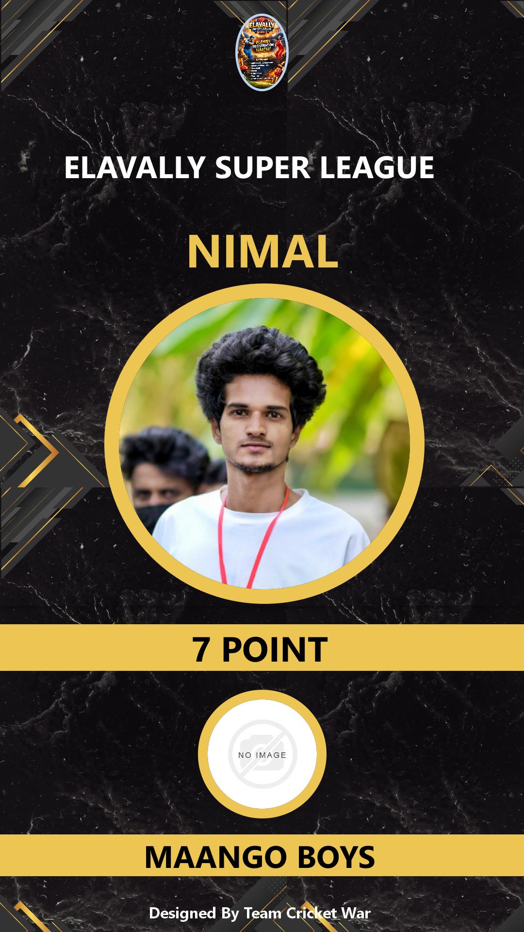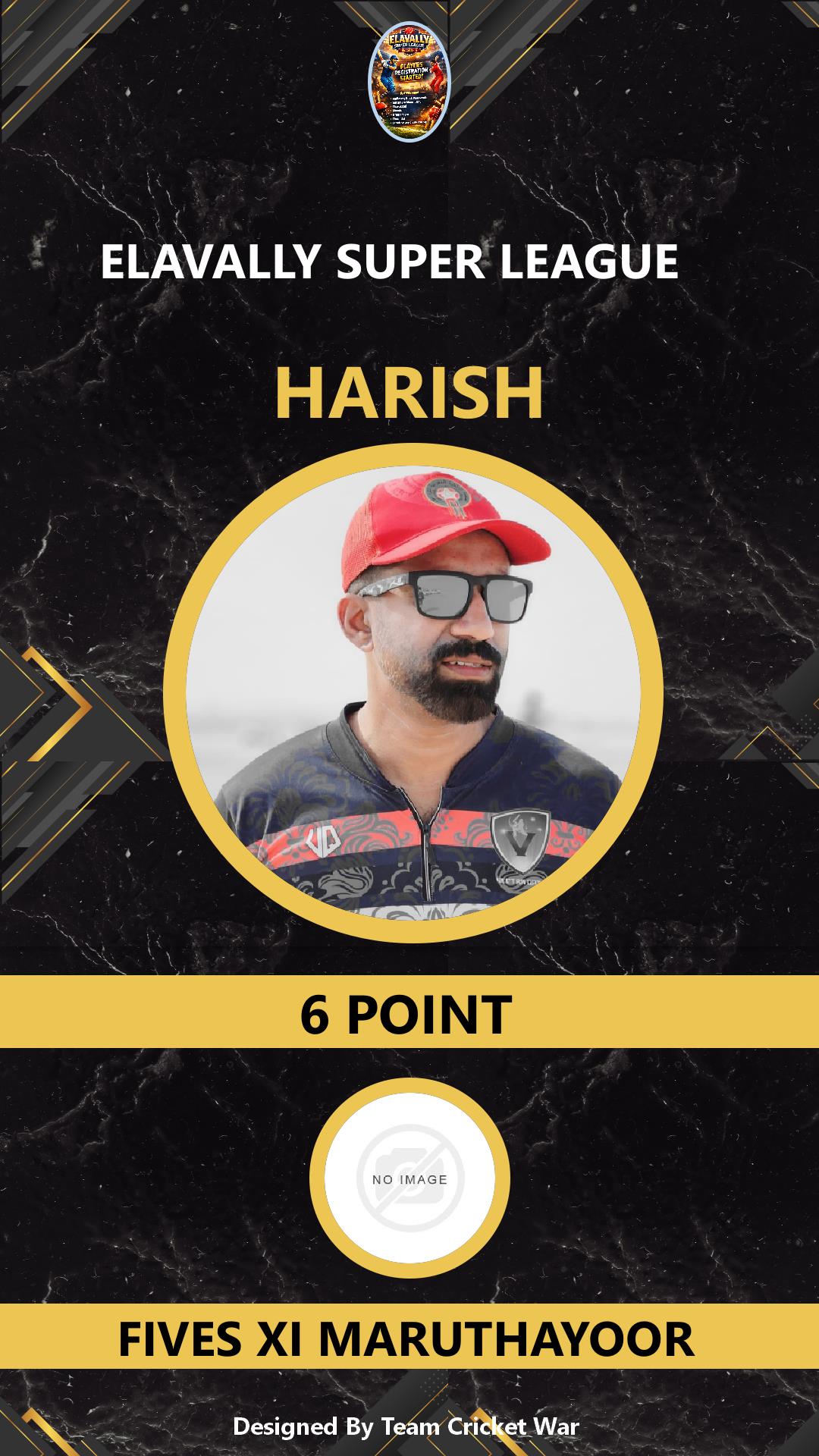 ALLROUNDER, AGE : 33 MAMABAZAR Bid Amount : 7 Team : FIVES XI MARUTHAYOOR Download ID Card VIEW PROFILE |