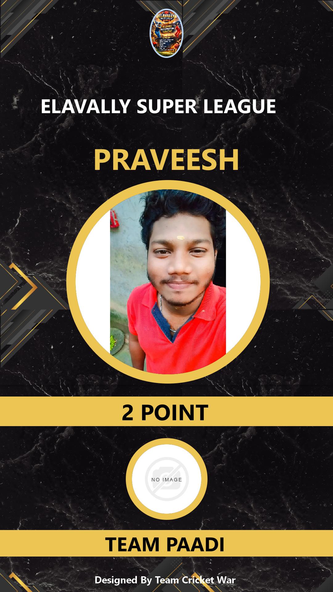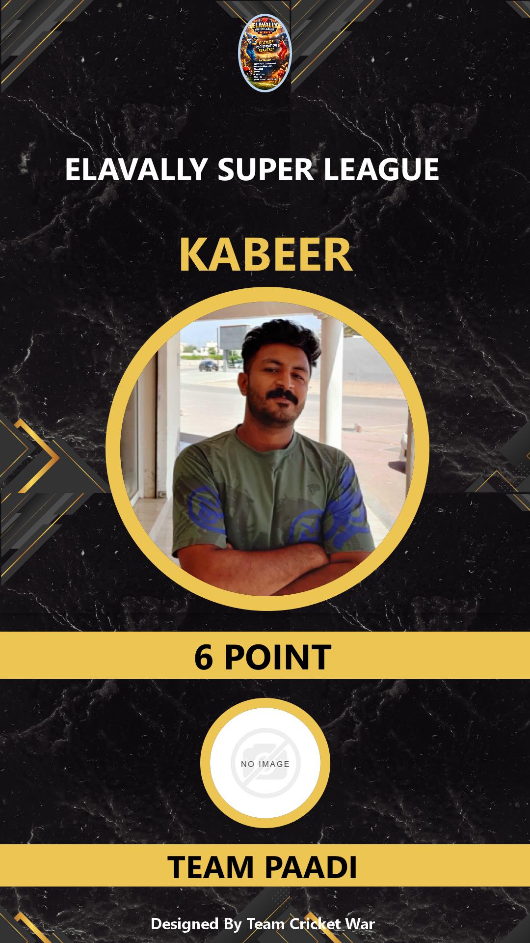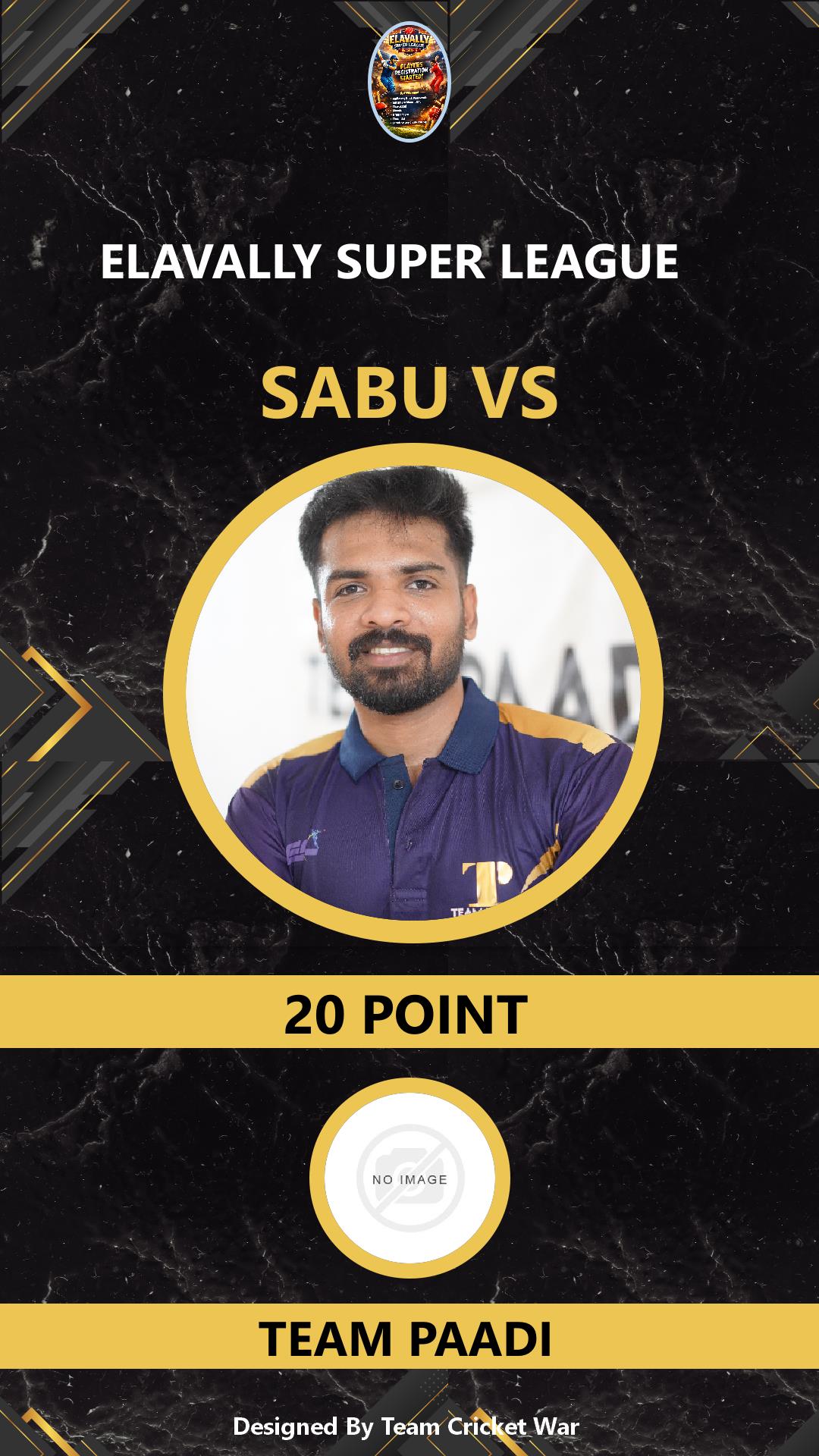 ALLROUNDER, AGE : 34 ELAVALLY Bid Amount : 3 Team : TEAM PAADI Download ID Card VIEW PROFILE |