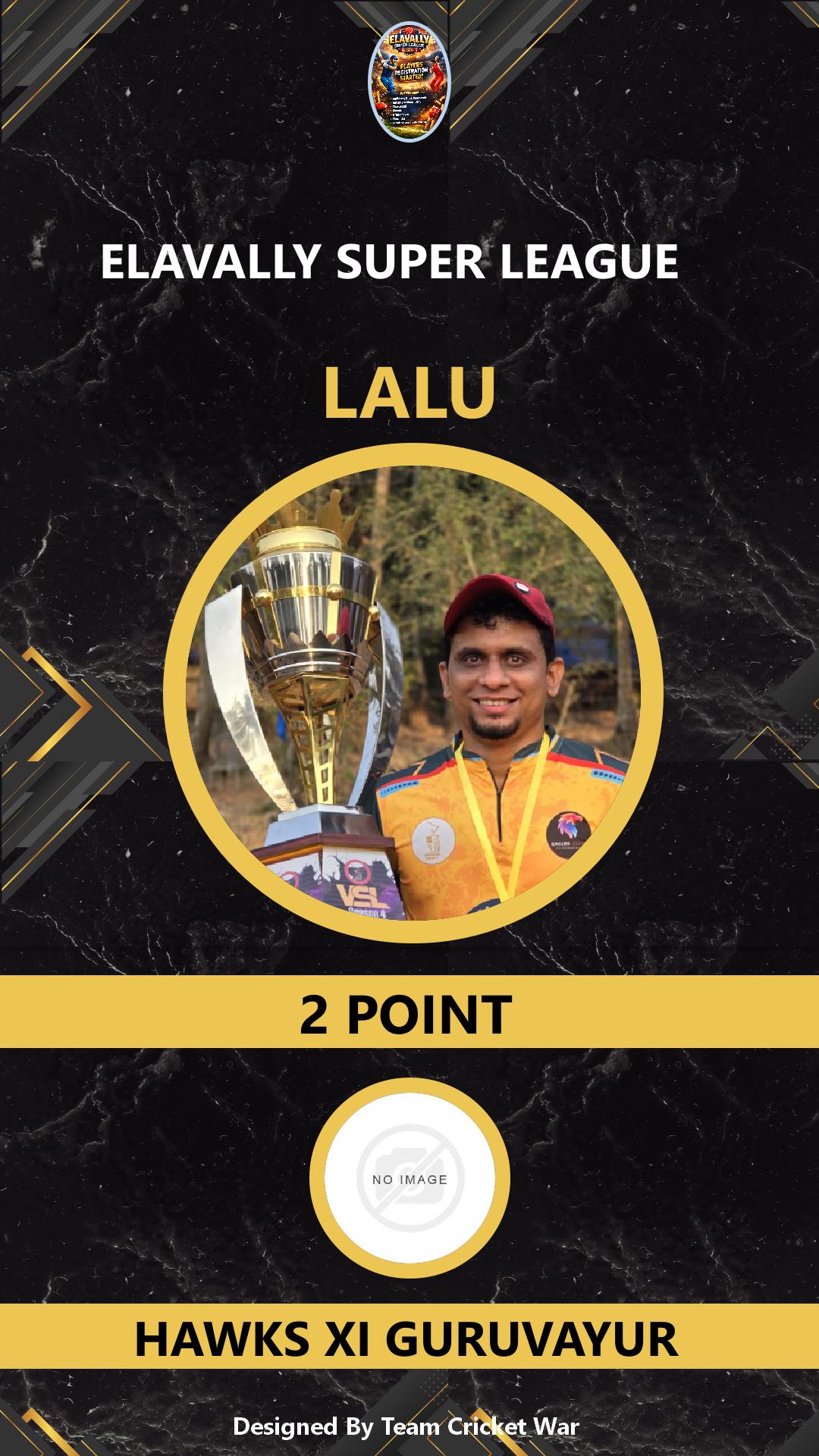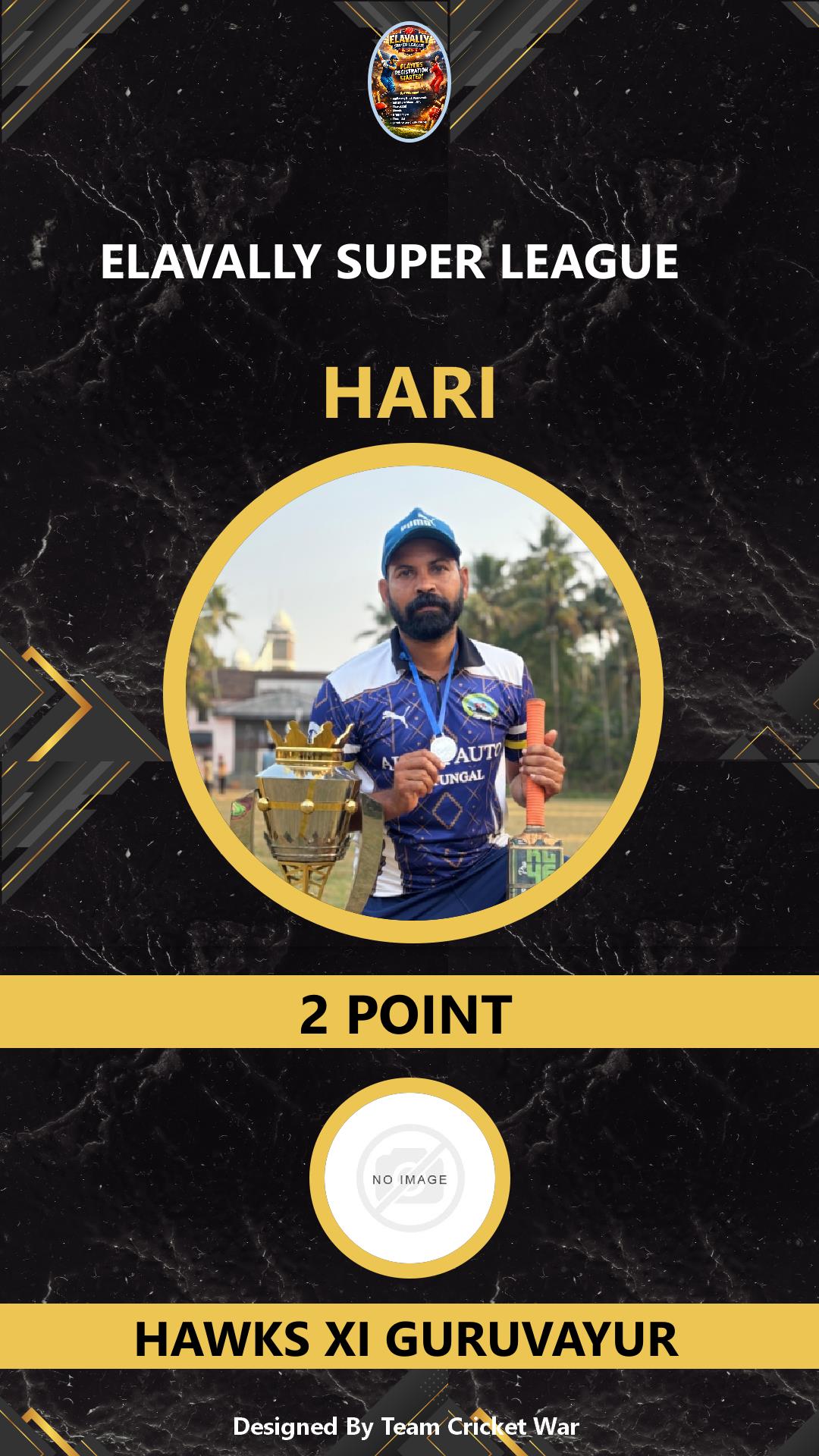 ALLROUNDER, AGE : 35 GURUVAYOOR Bid Amount : 2 Team : HAWKS XI GURUVAYUR Download ID Card VIEW PROFILE |