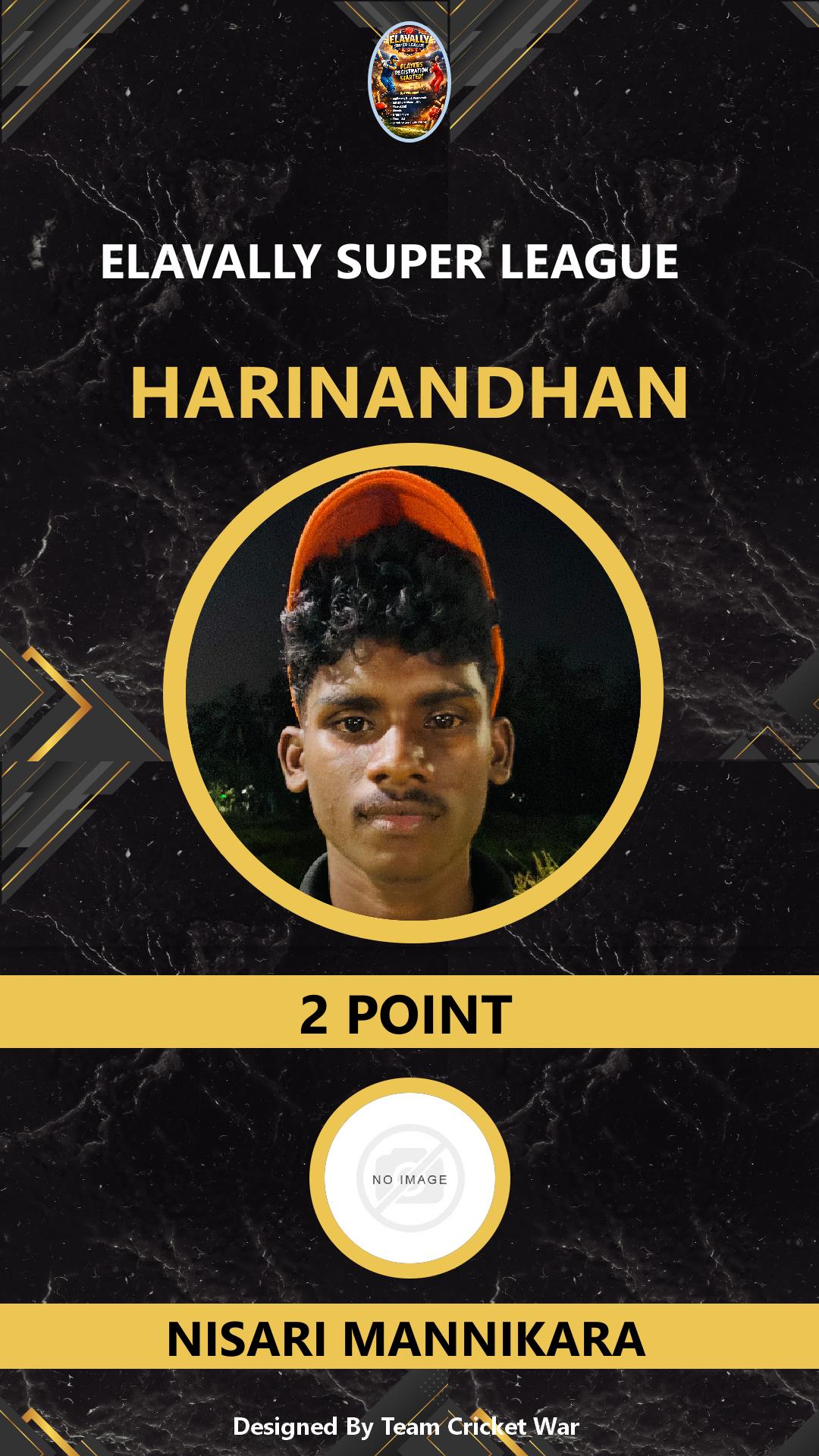 BATTING ALLROUNDER, AGE : 18 BRAHMAKULAM Bid Amount : 2 Team : NISARI MANNIKARA Download ID Card VIEW PROFILE |