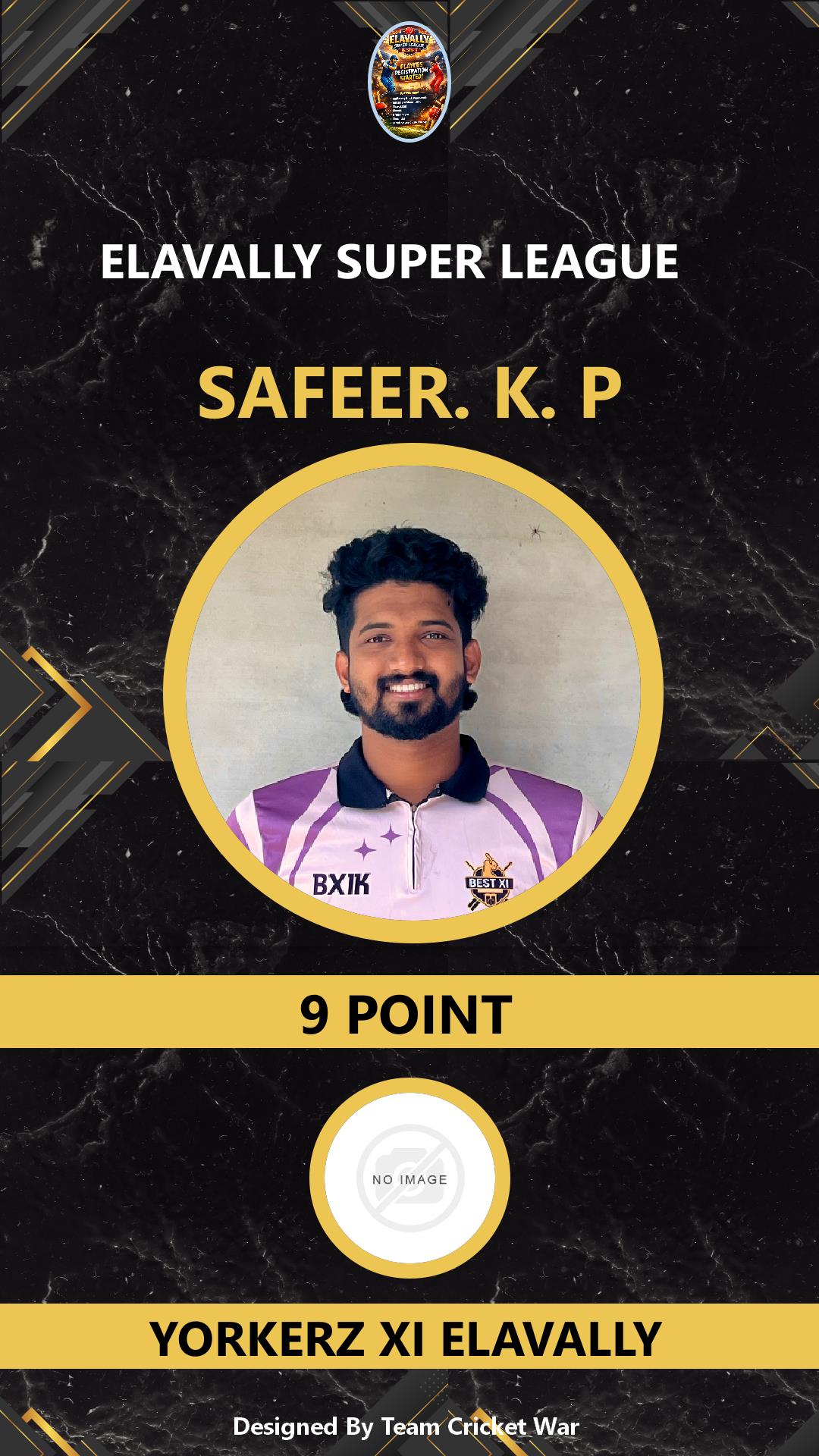 BOWLING ALLROUNDER, AGE : 30 KAKKASSERY Bid Amount : 9 Team : CAZA PERUVALLUR Download ID Card VIEW PROFILE |