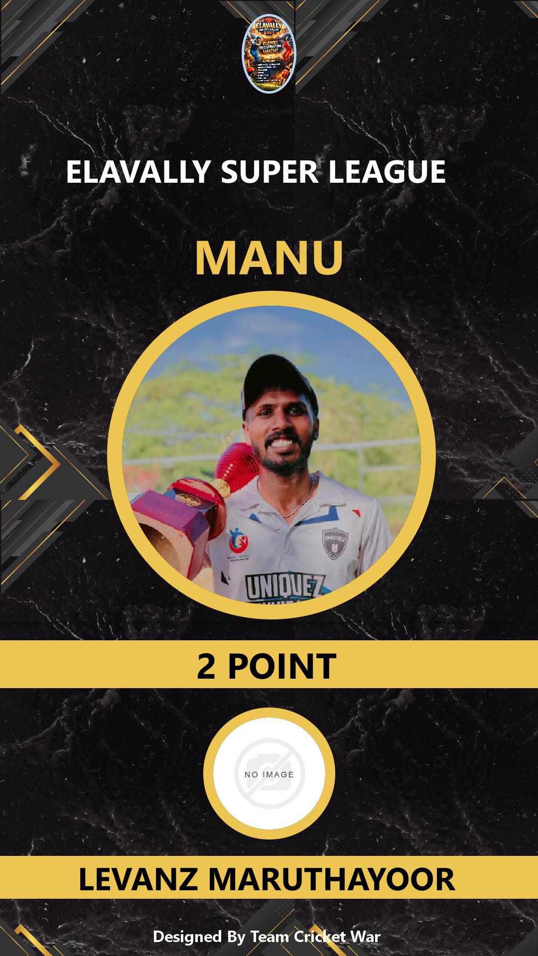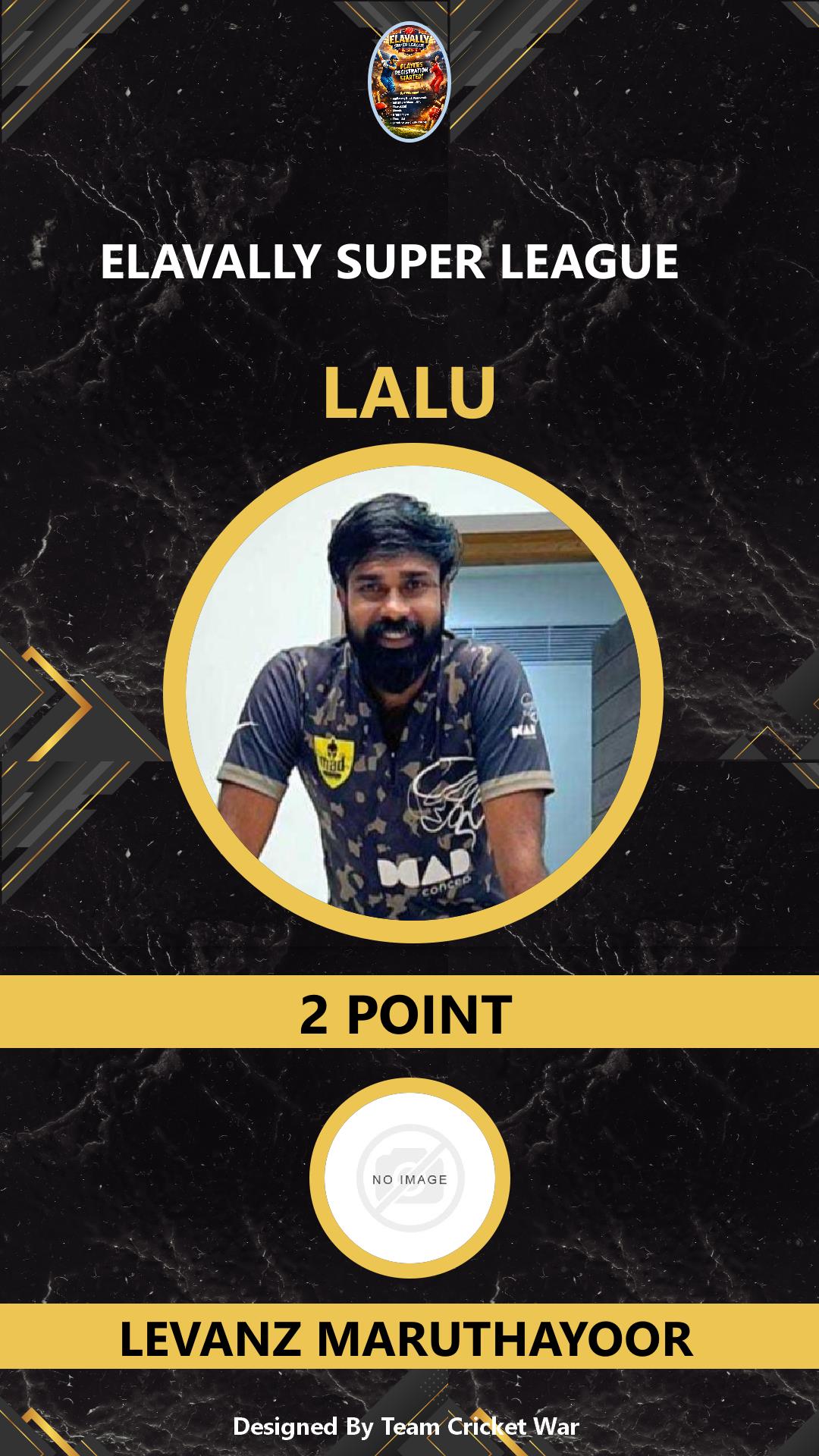 ALLROUNDER, AGE : 35 MARUTHAYOOR Bid Amount : 2 Team : LEVANZ MARUTHAYOOR Download ID Card VIEW PROFILE |