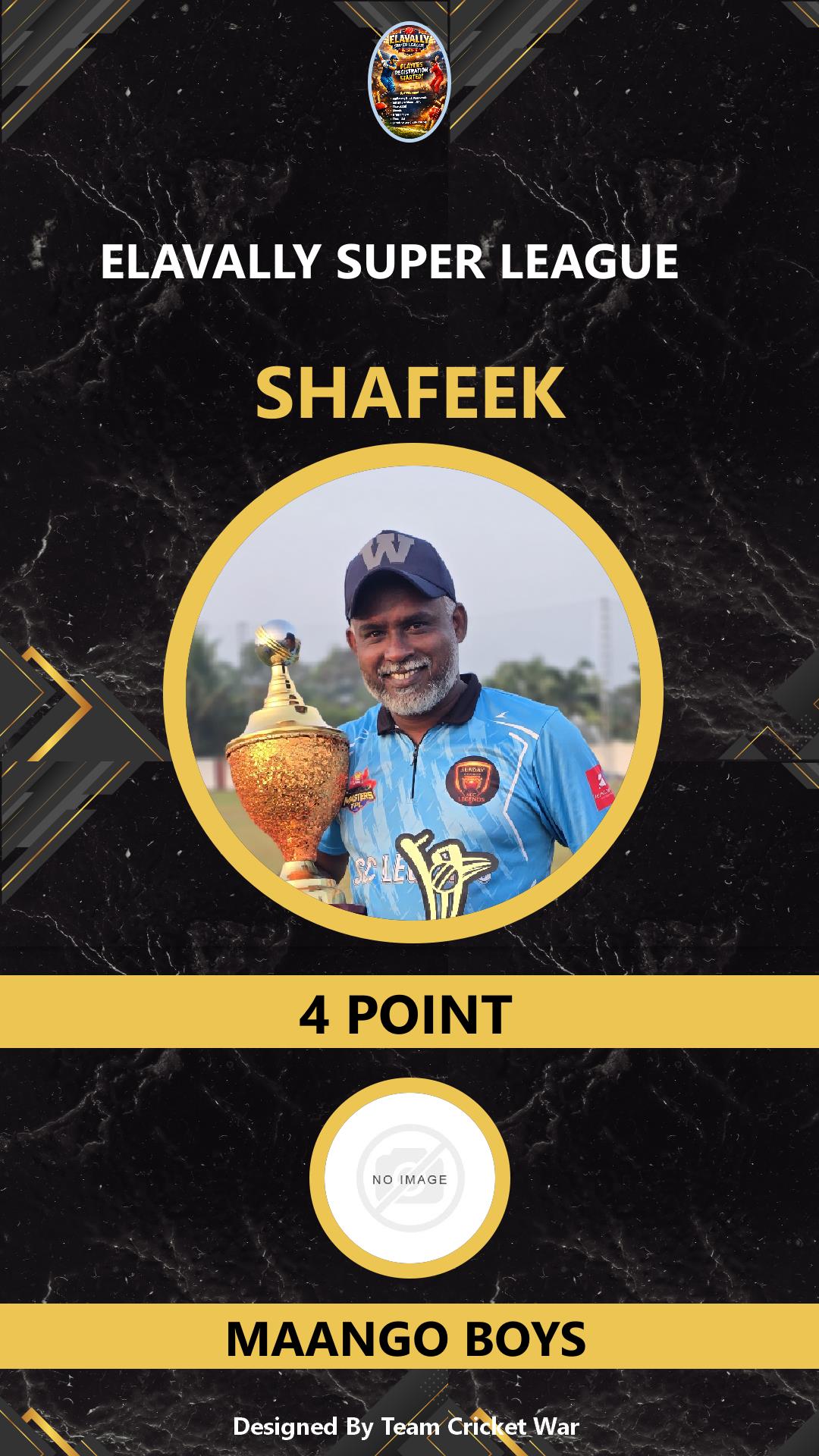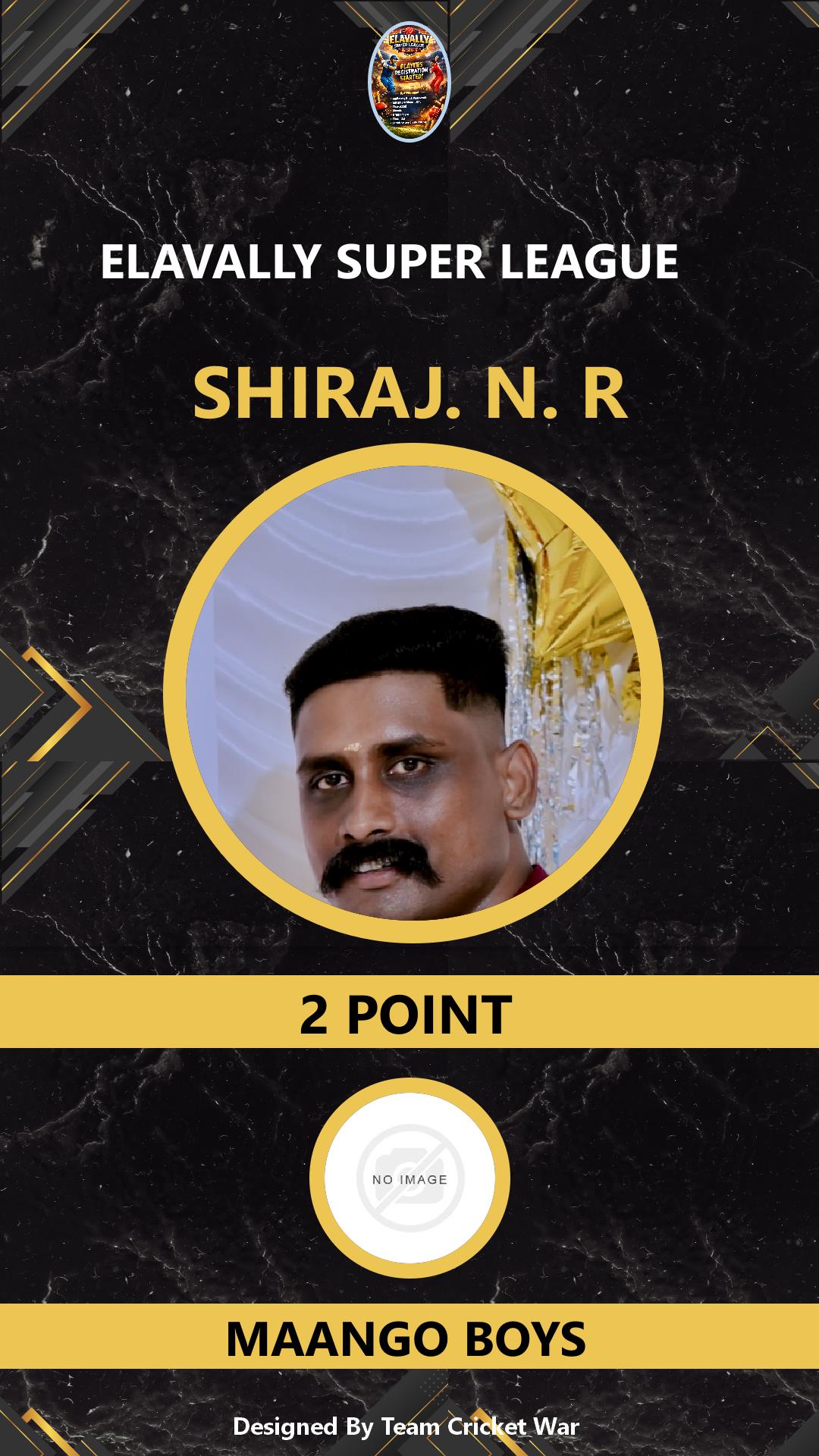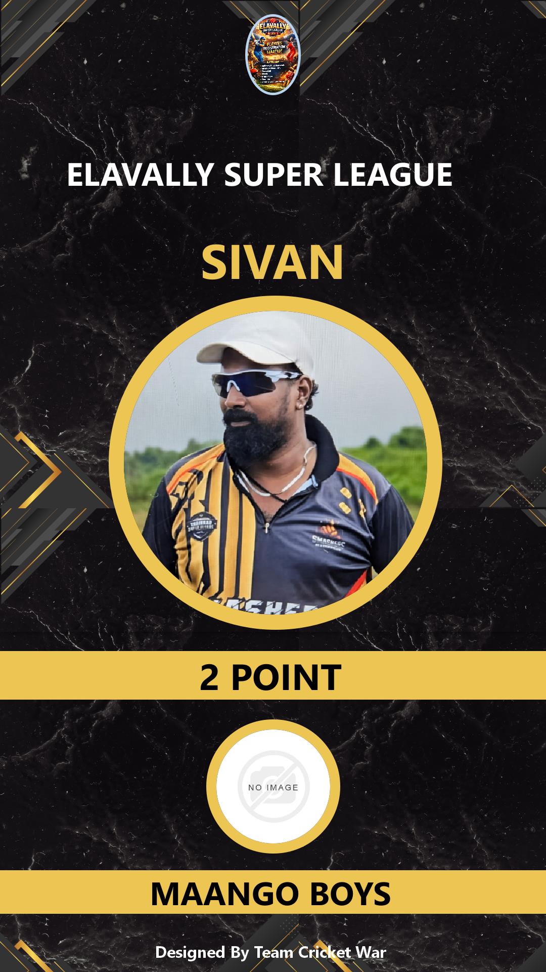 BATSMAN, AGE : 34 ELAVALLY Bid Amount : 2 Team : MAANGO BOYS Download ID Card VIEW PROFILE |