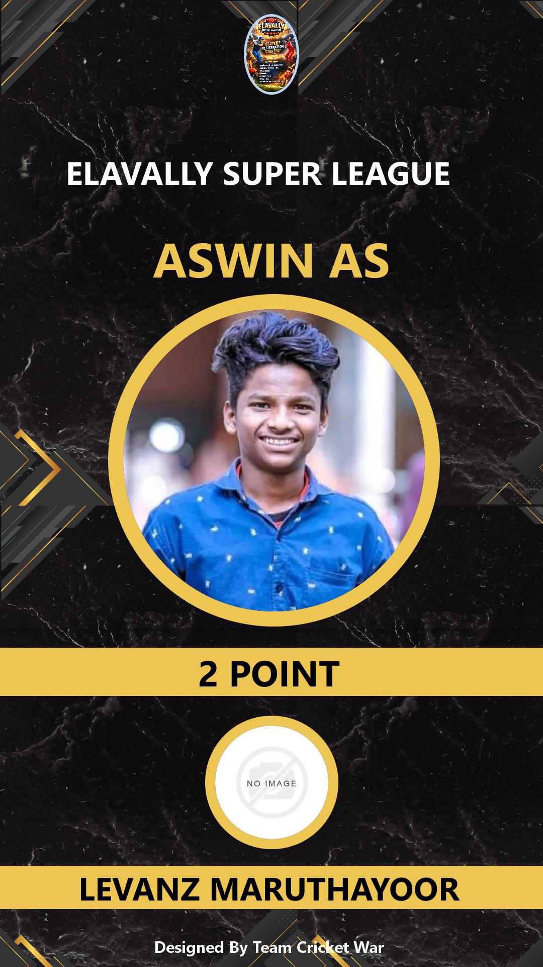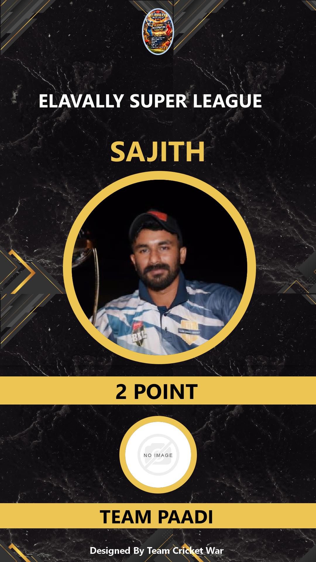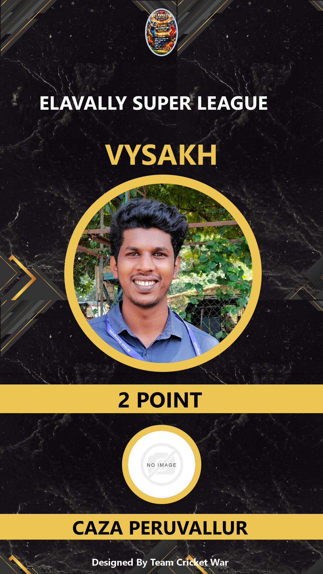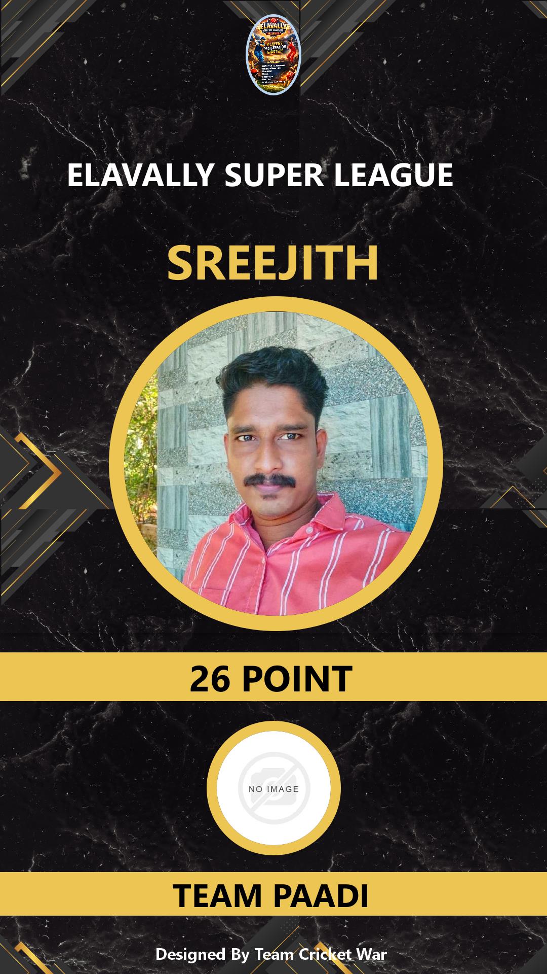 BATTING ALLROUNDER, AGE : 26 PERUVALLUR Bid Amount : 28 Team : CAZA PERUVALLUR Download ID Card VIEW PROFILE |