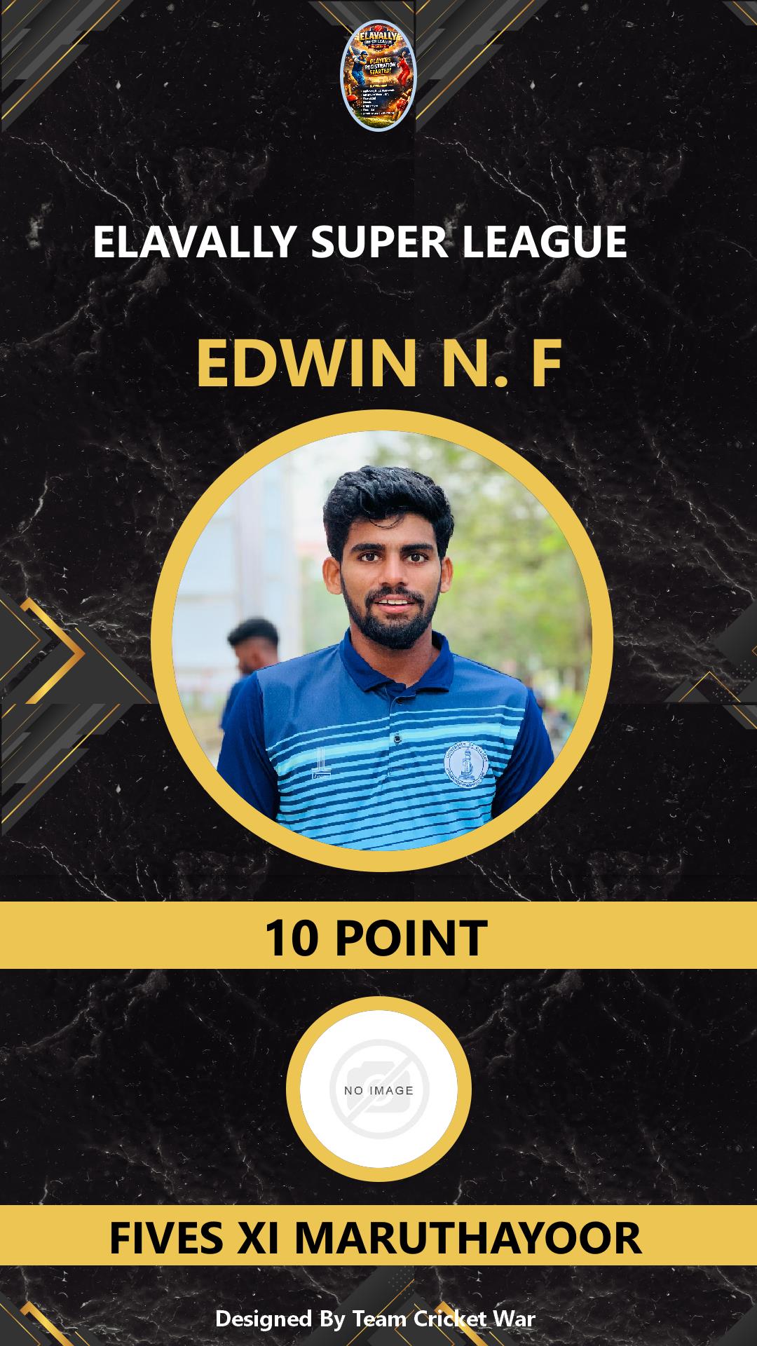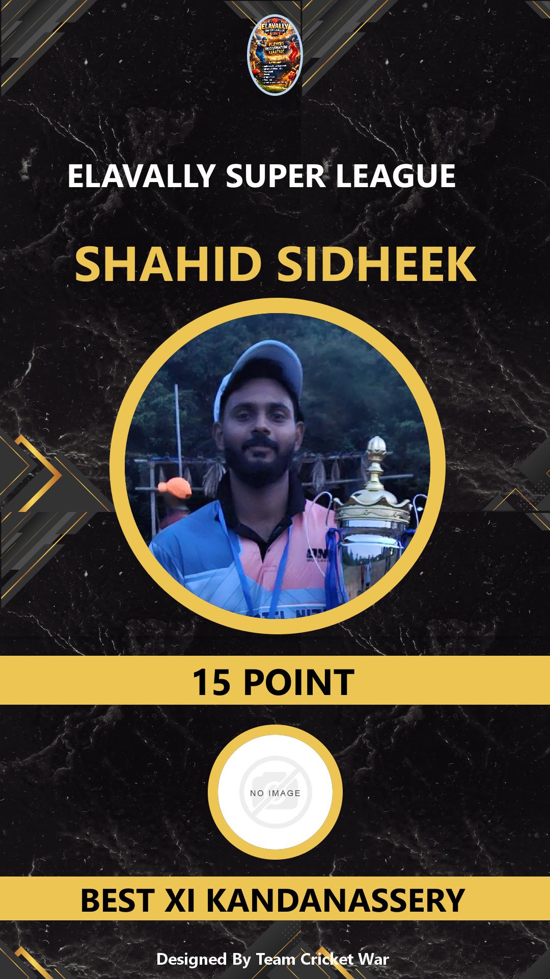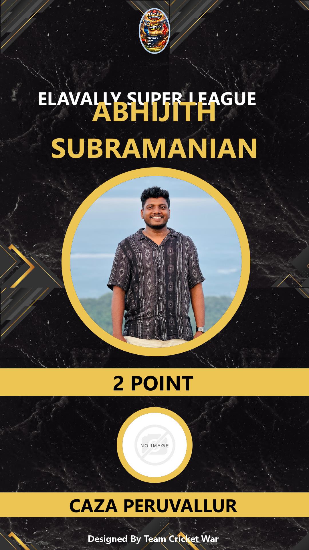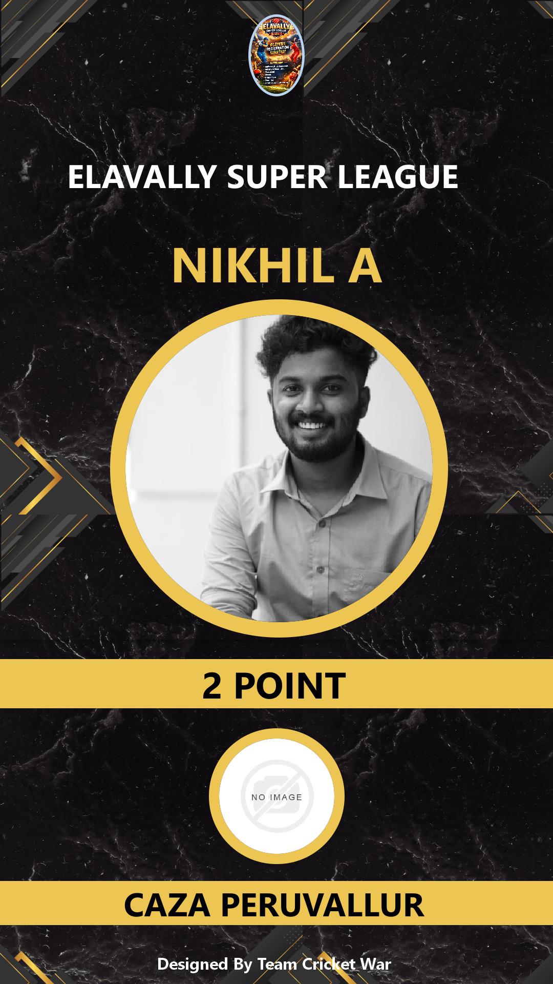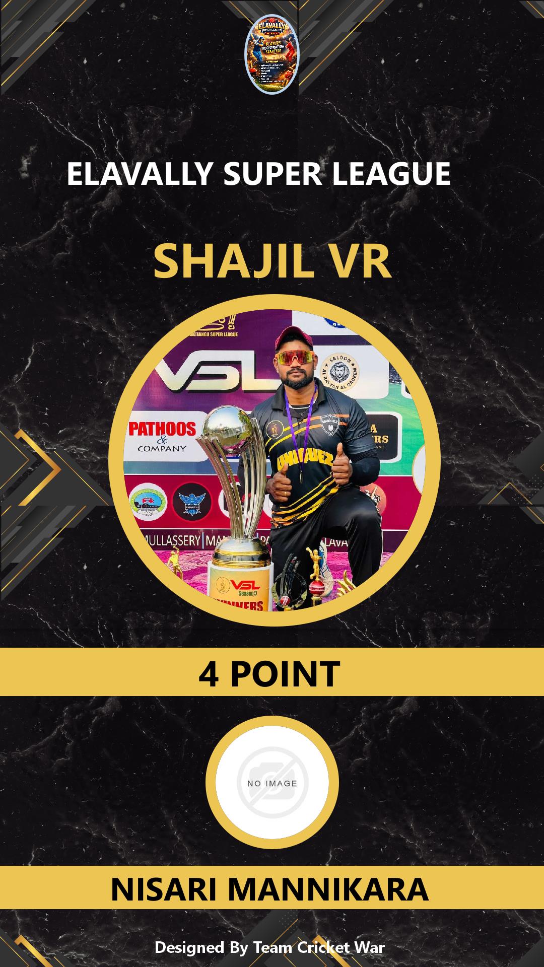 BATTING ALLROUNDER, AGE : 26 PERUVALLUR Bid Amount : 28 Team : CAZA PERUVALLUR Download ID Card VIEW PROFILE |