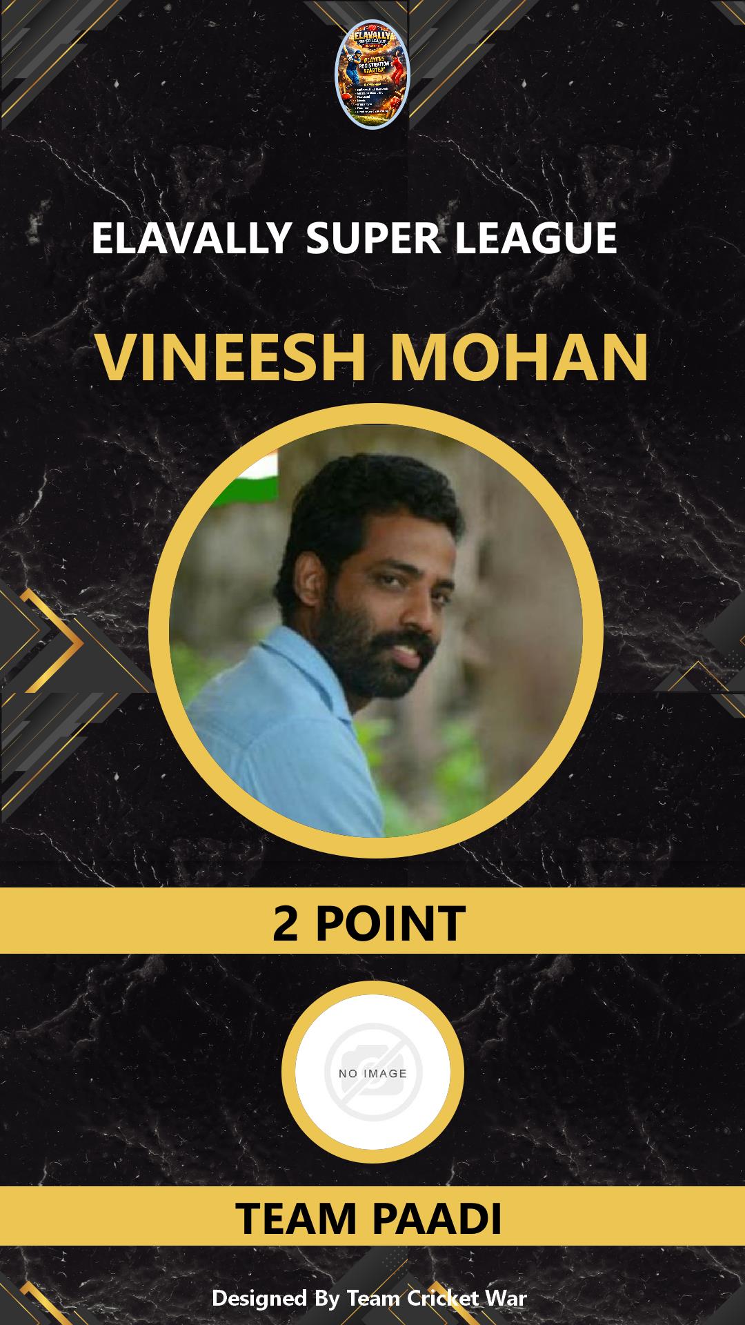 BATSMAN, AGE : 39 ELAVALLY Bid Amount : 2 Team : TEAM PAADI Download ID Card VIEW PROFILE |